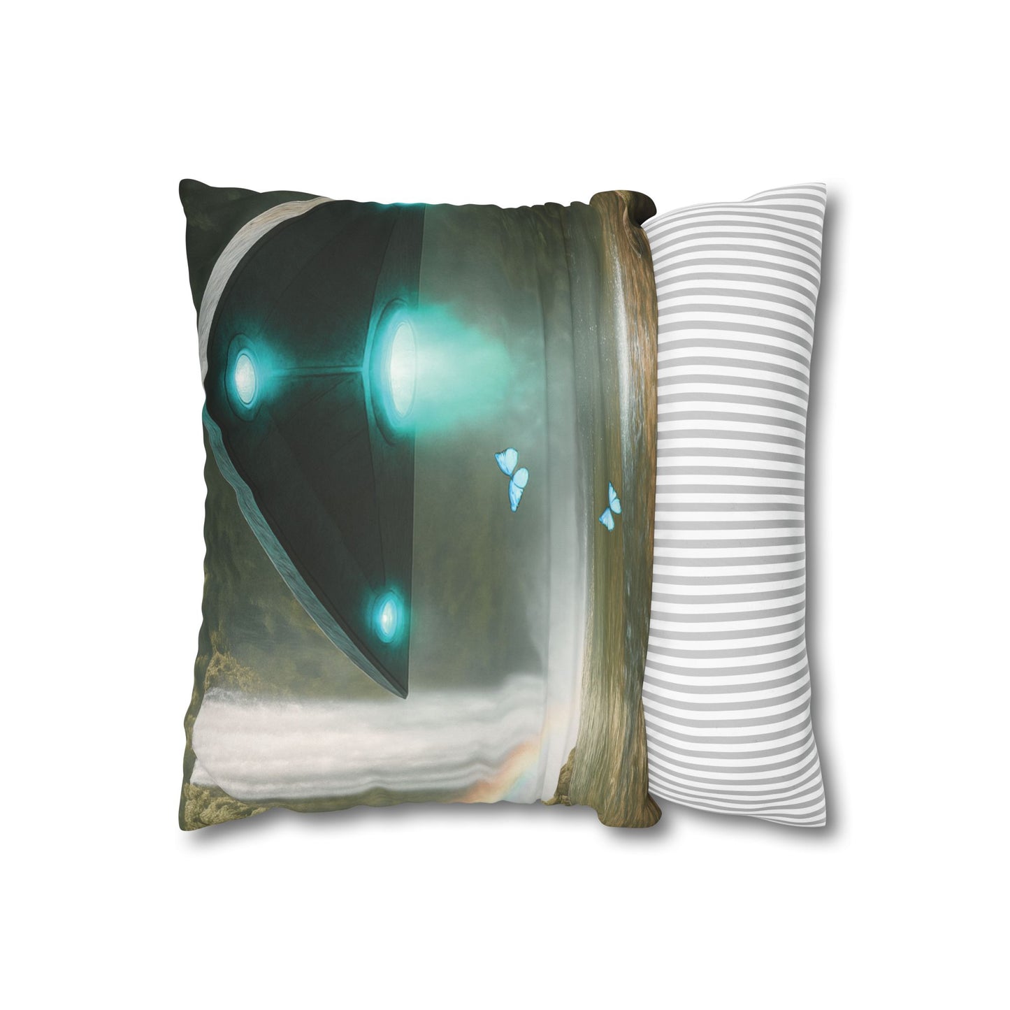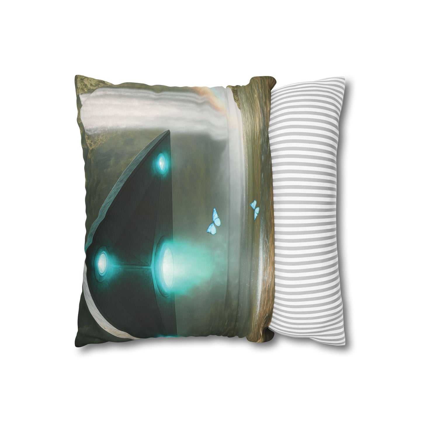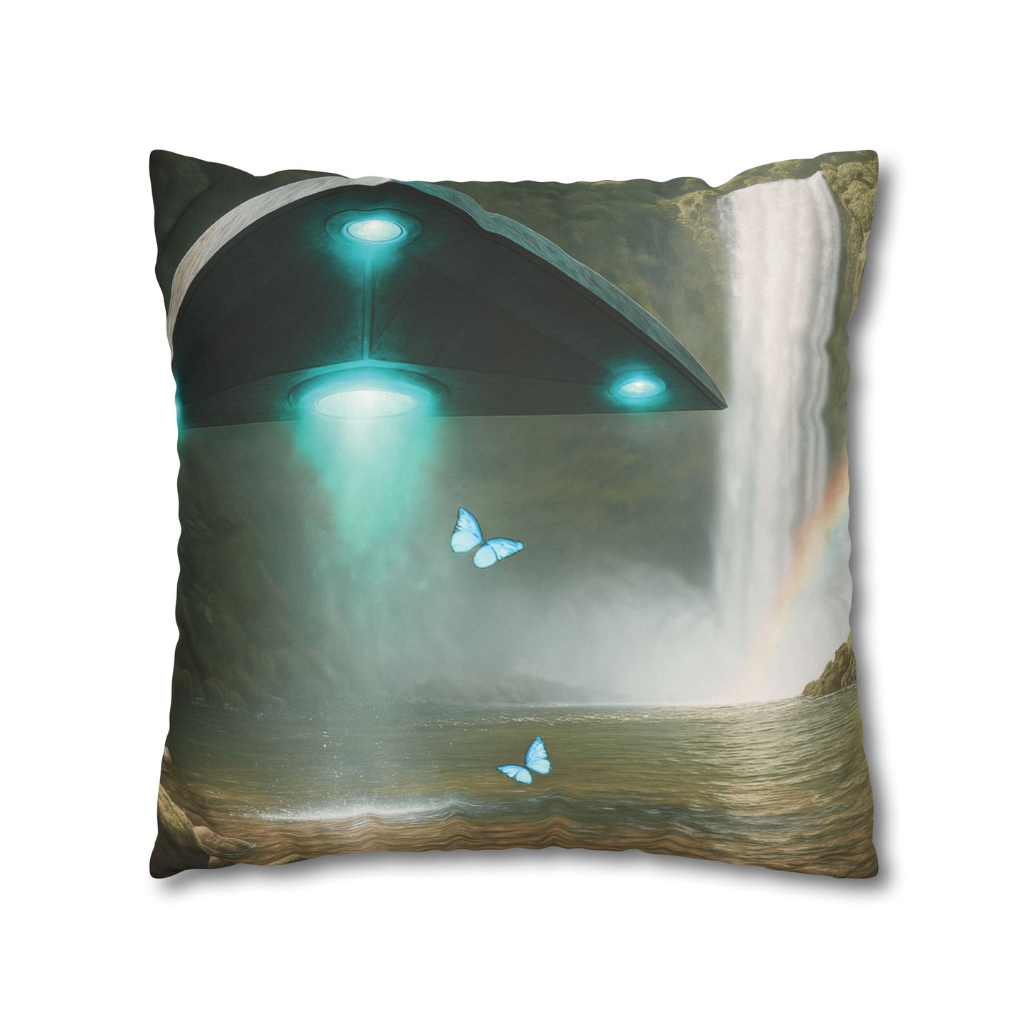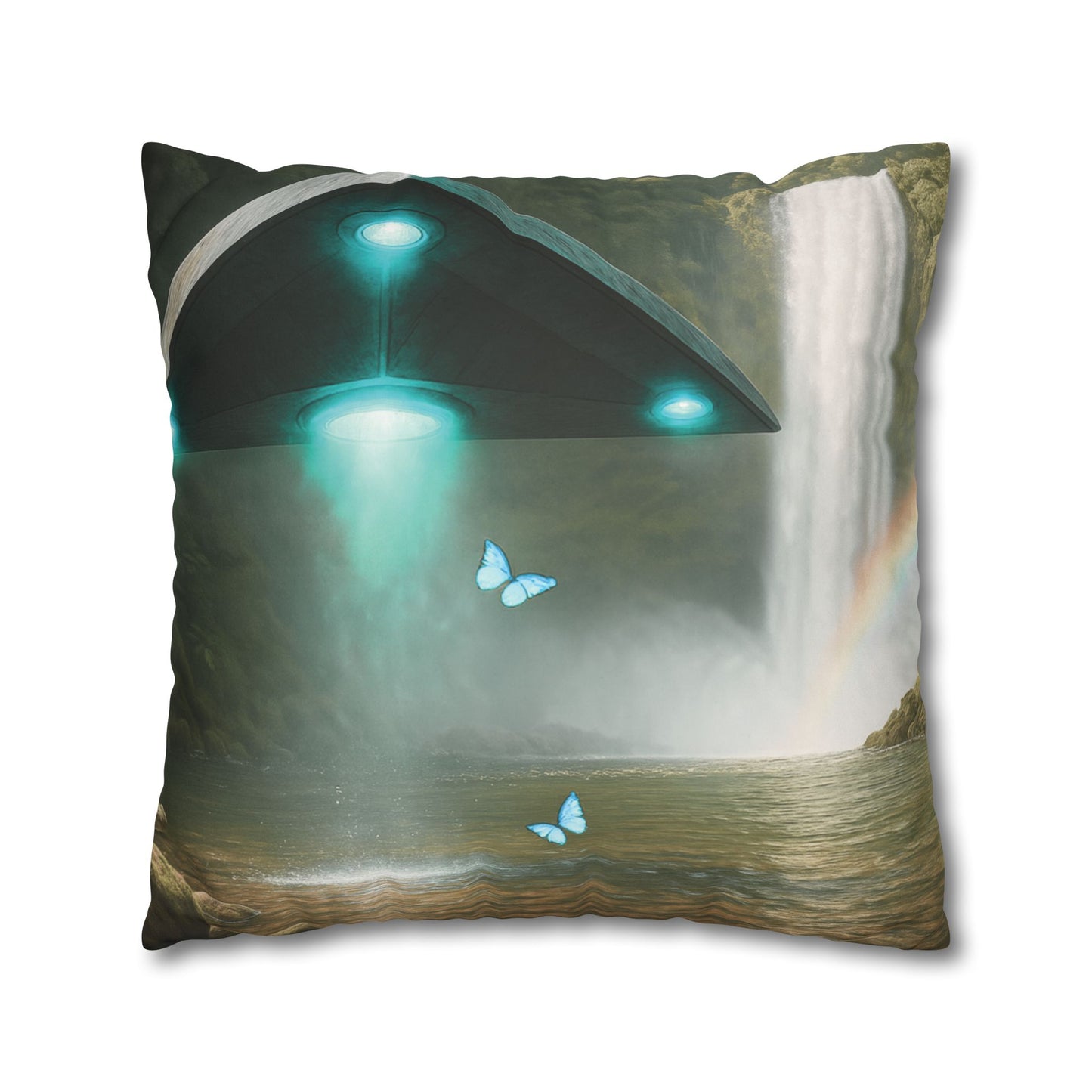 Faux Suede Square Pillowcase - UFO and Waterfall