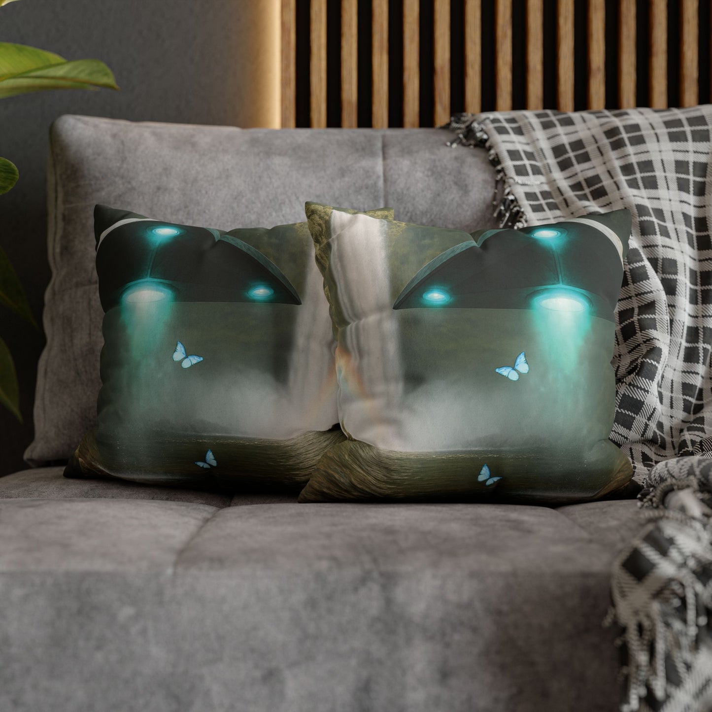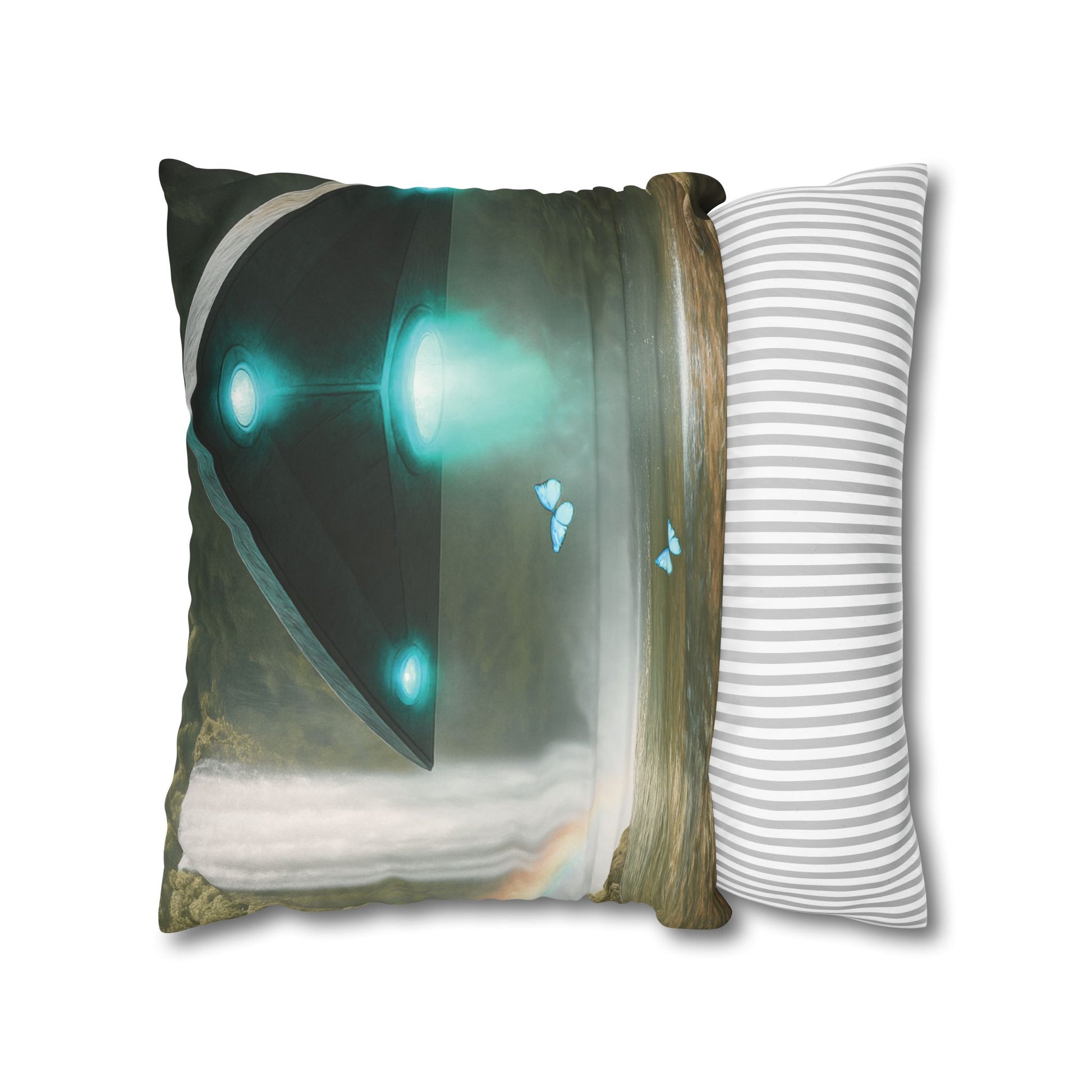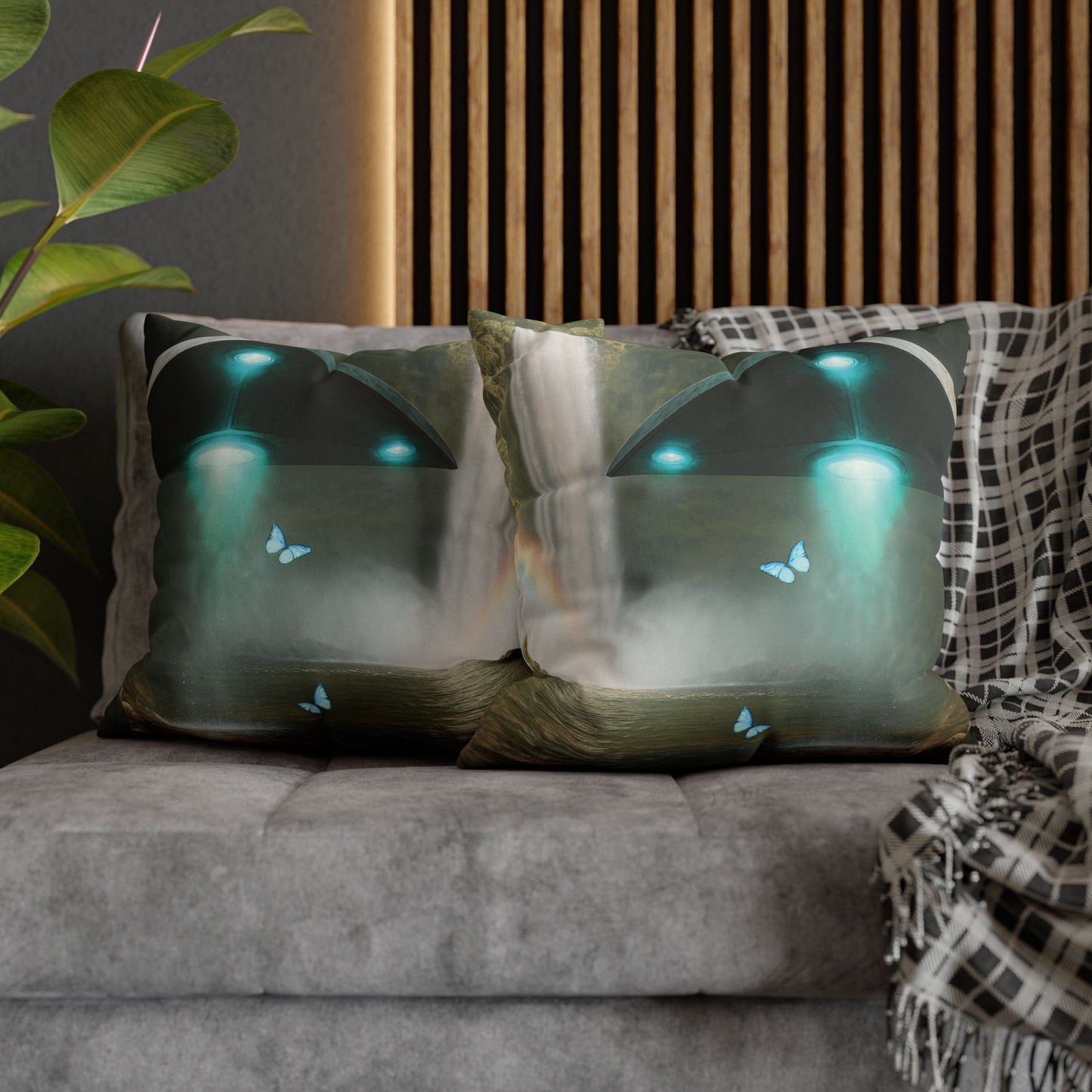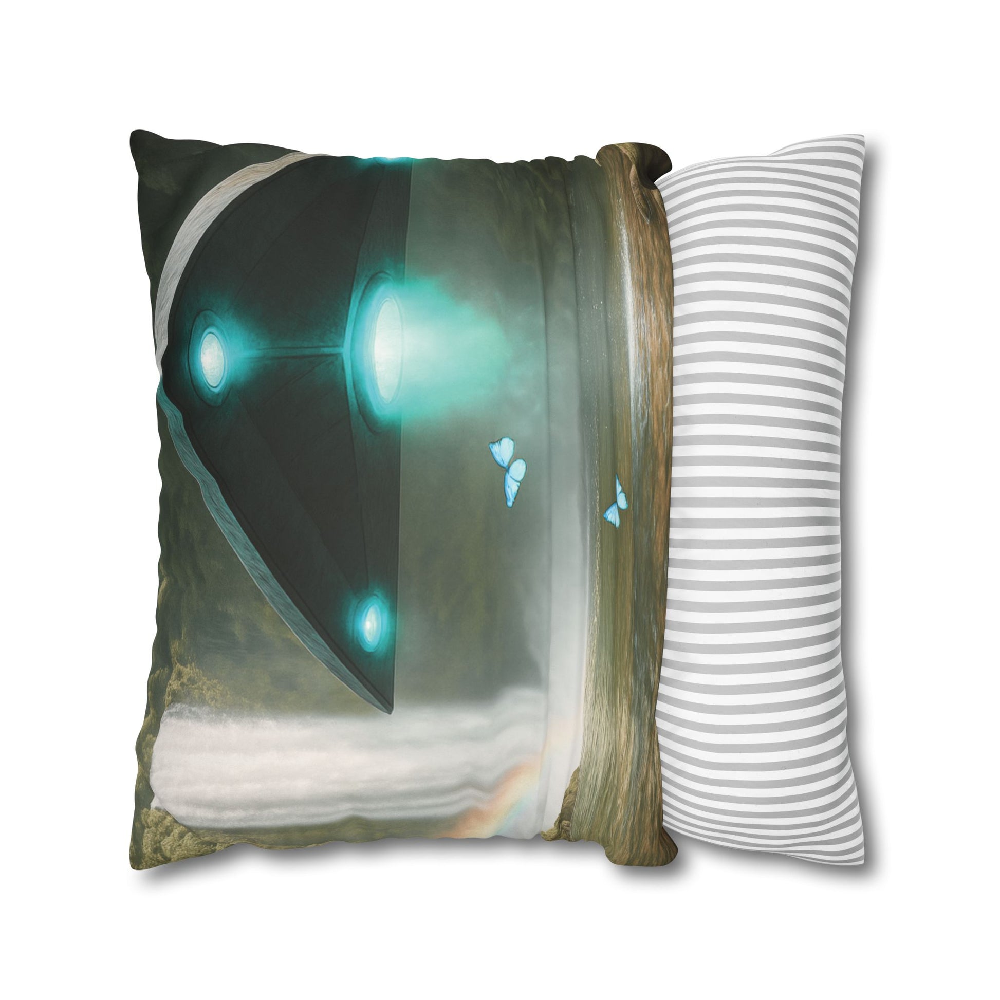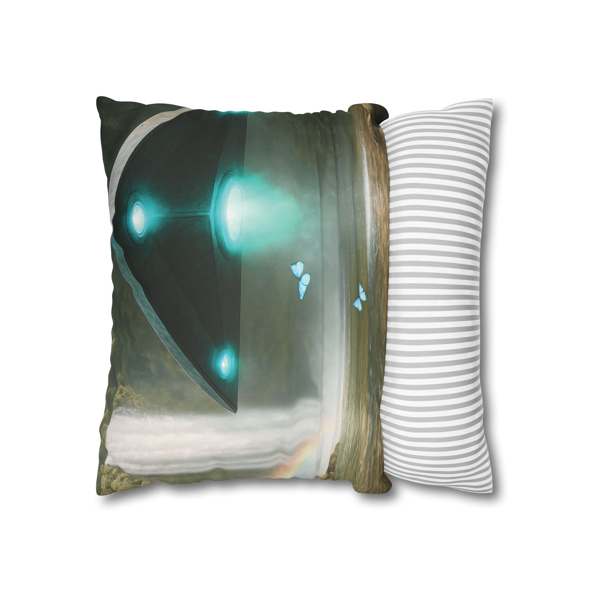Faux Suede Square Pillowcase - UFO and Waterfall