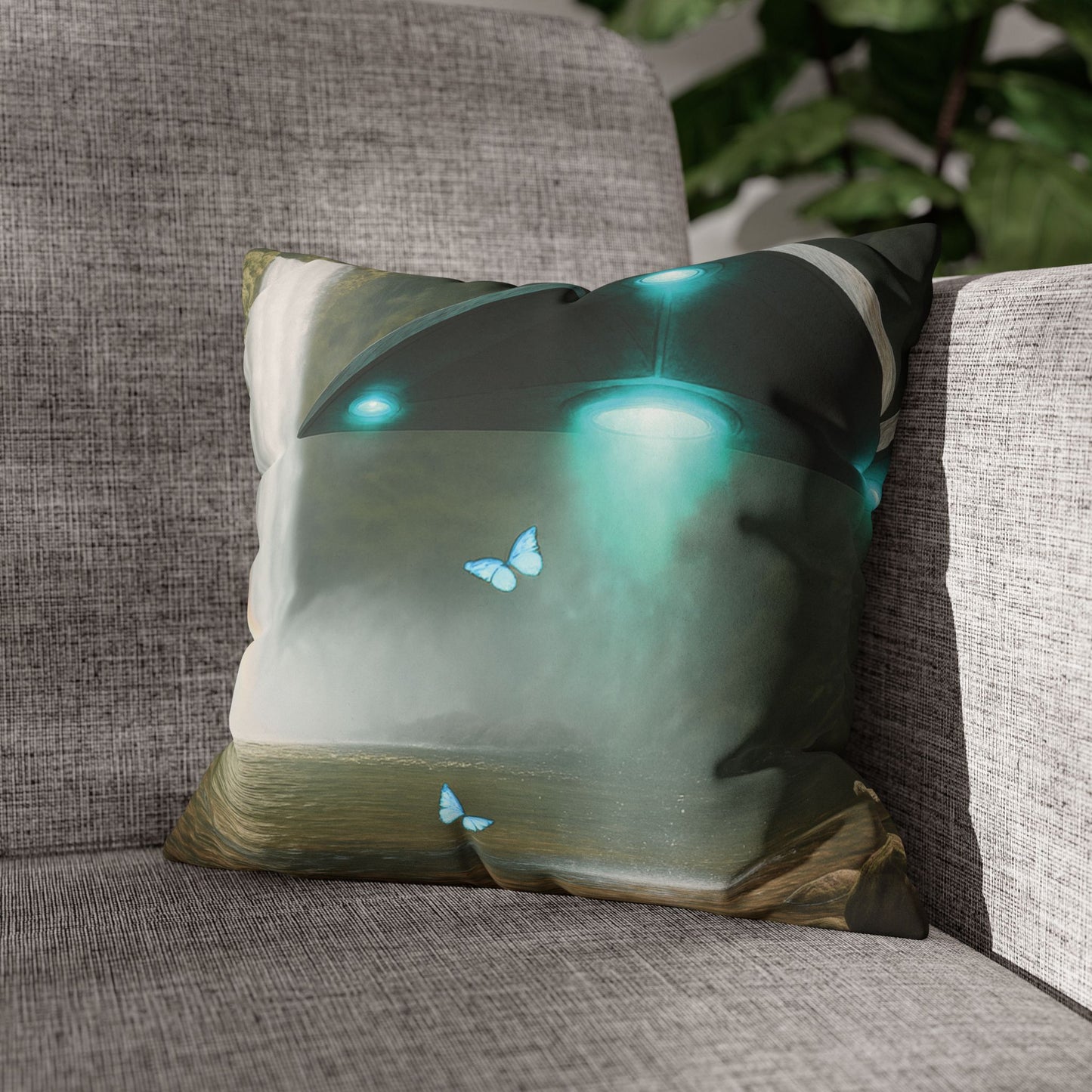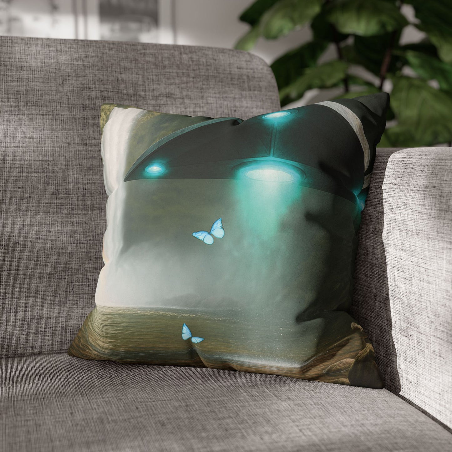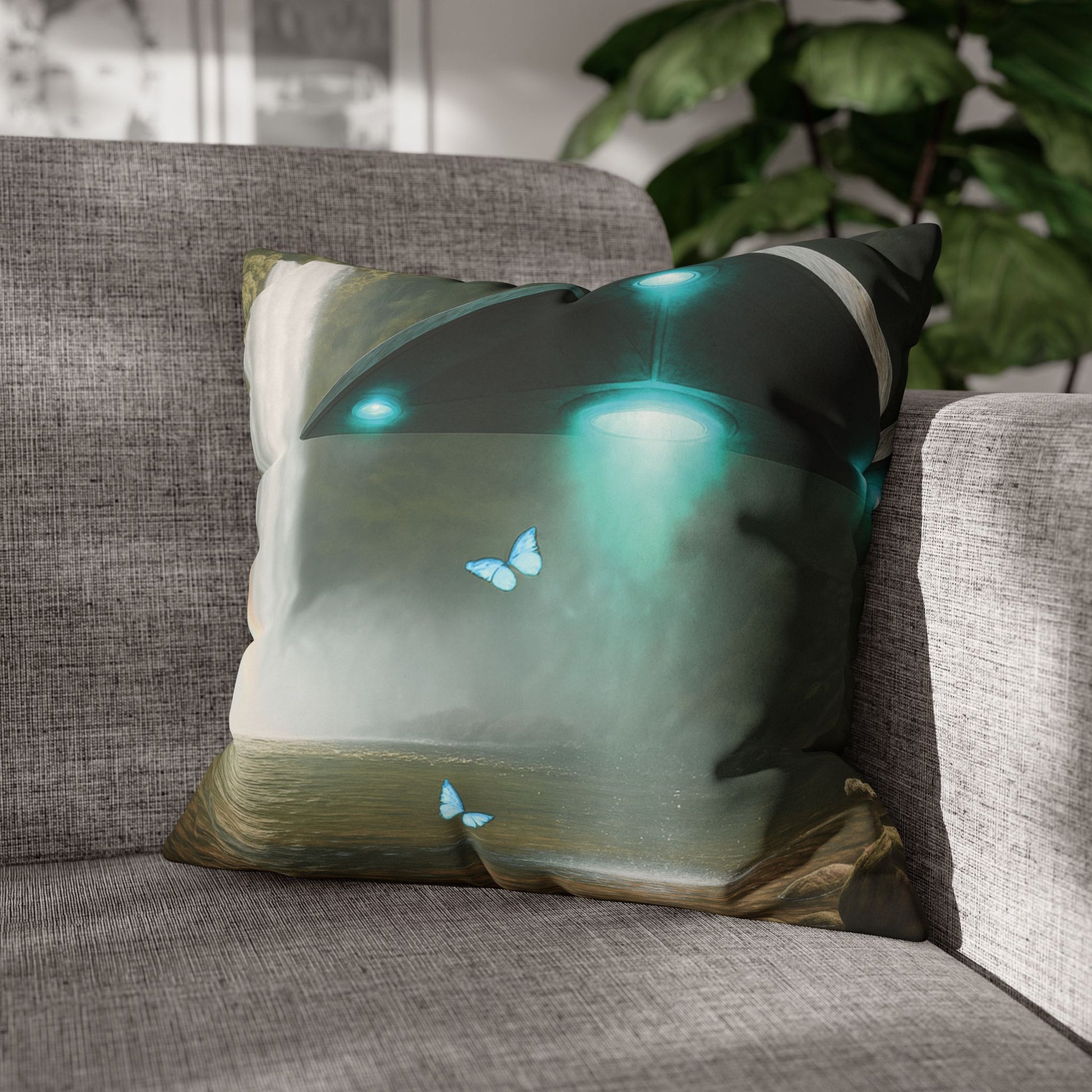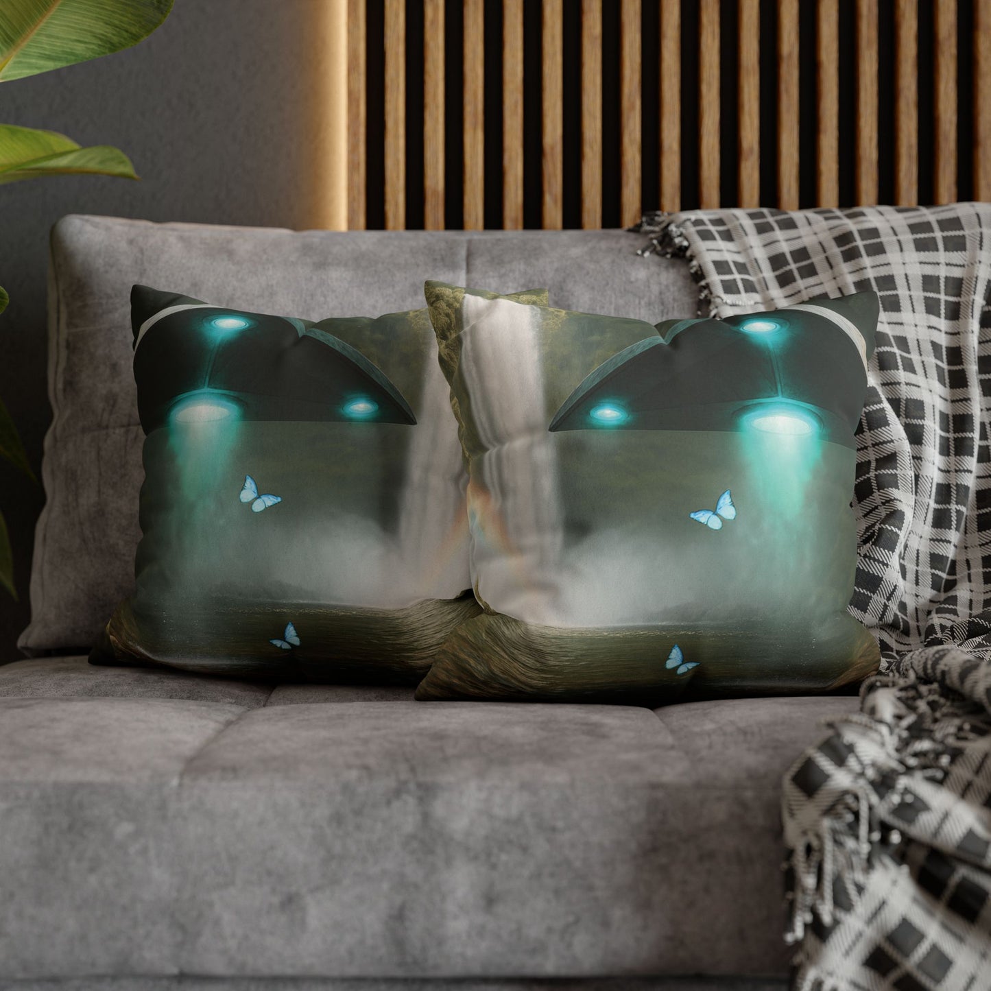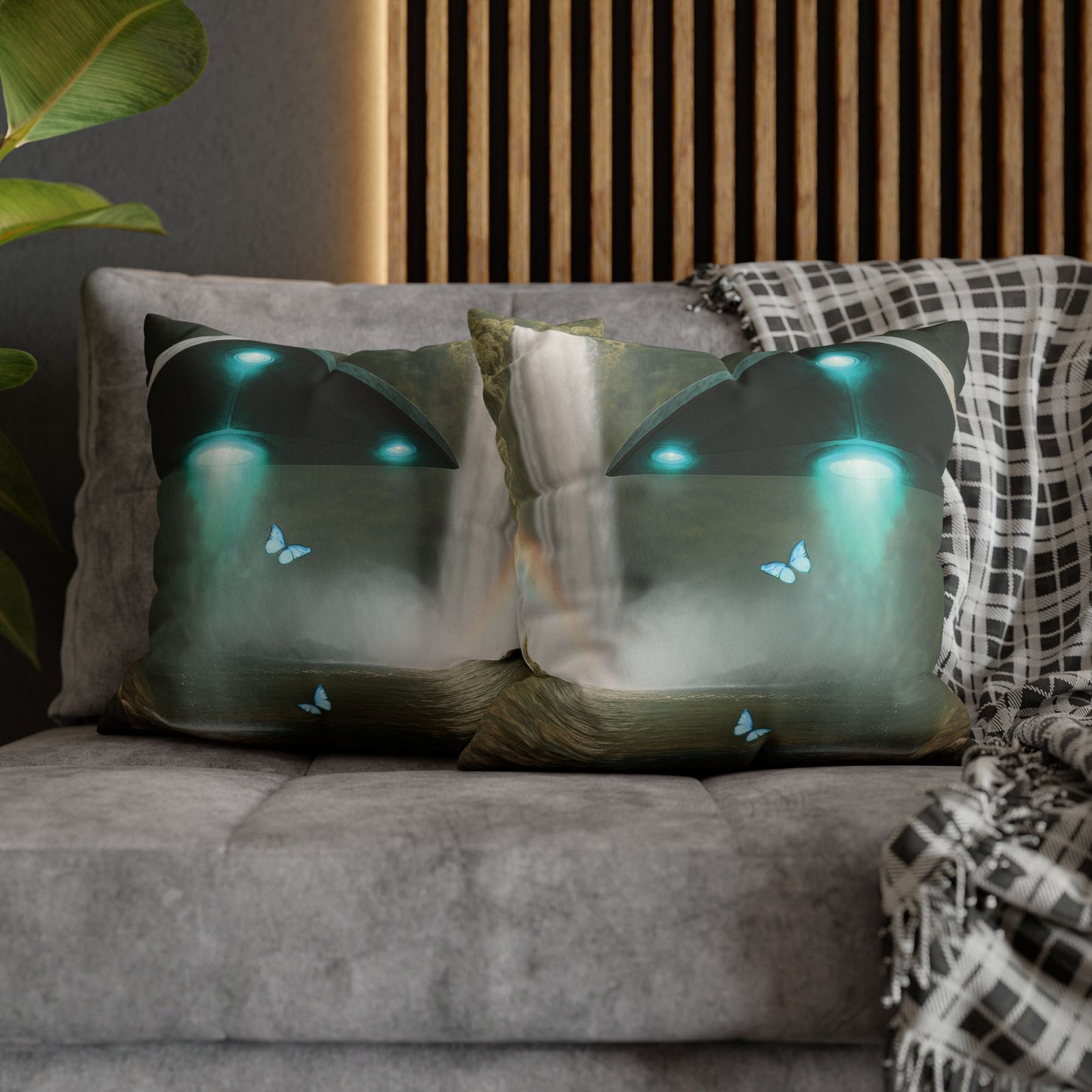 Faux Suede Square Pillowcase - UFO and Waterfall