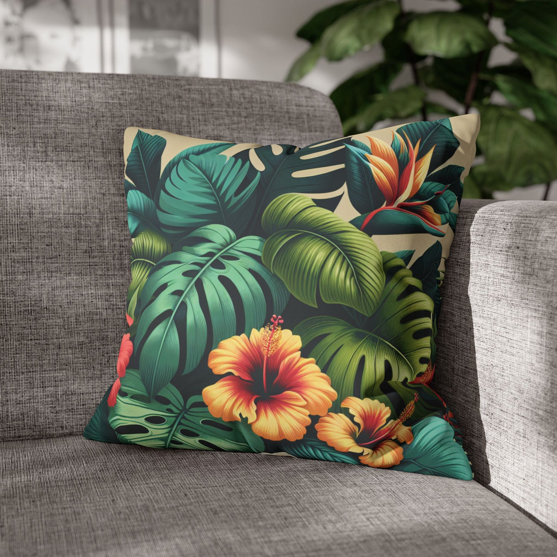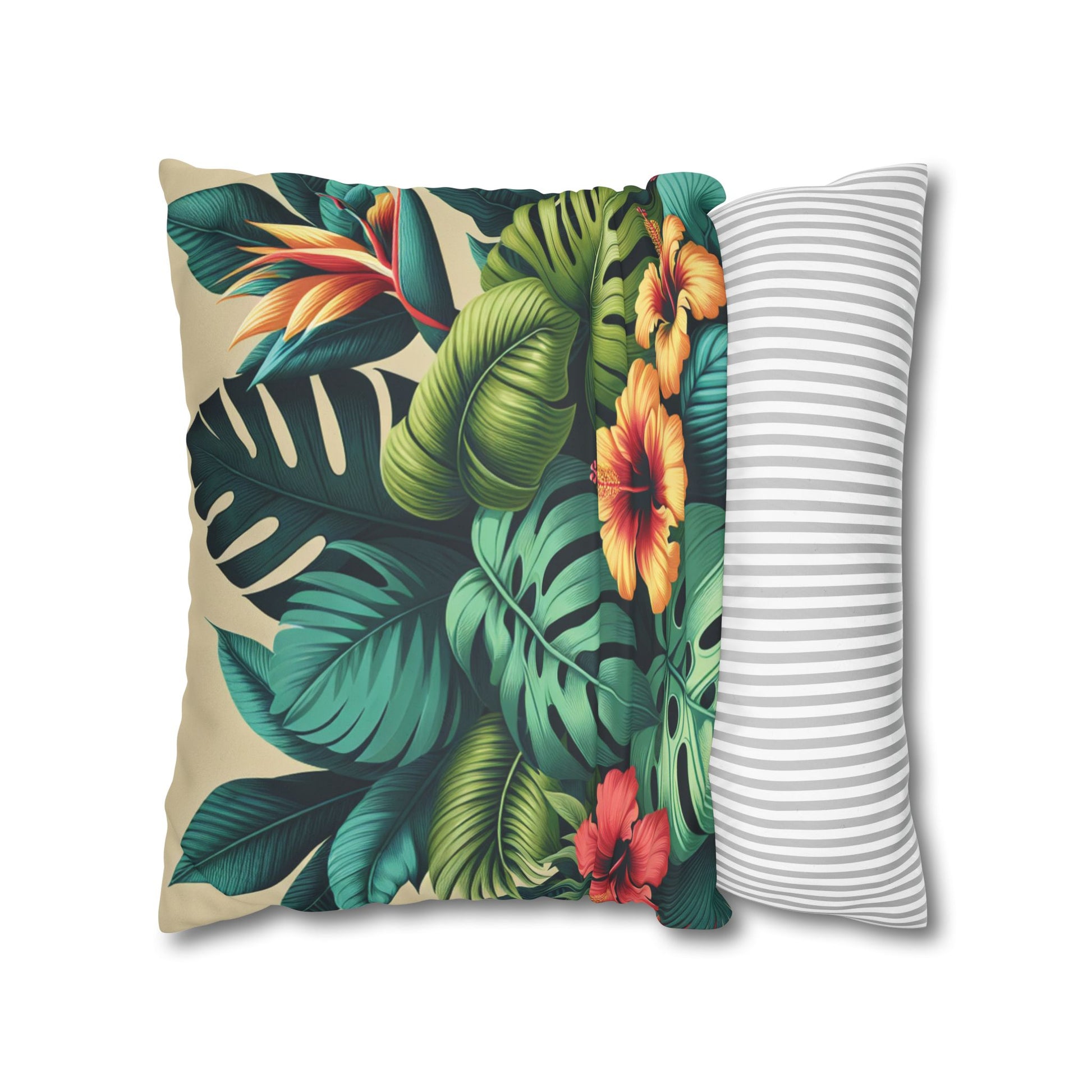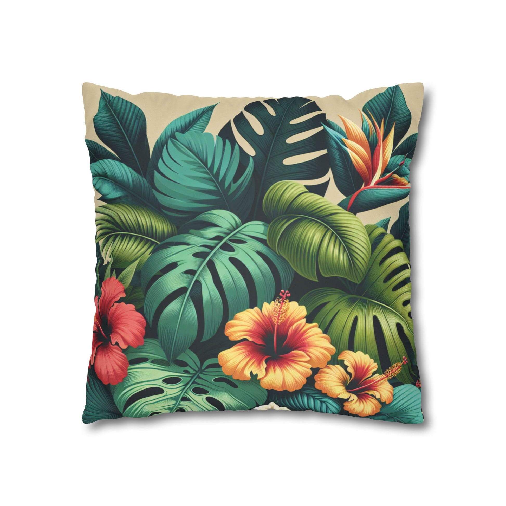 Faux Suede Square Pillowcase - Exotic Flora