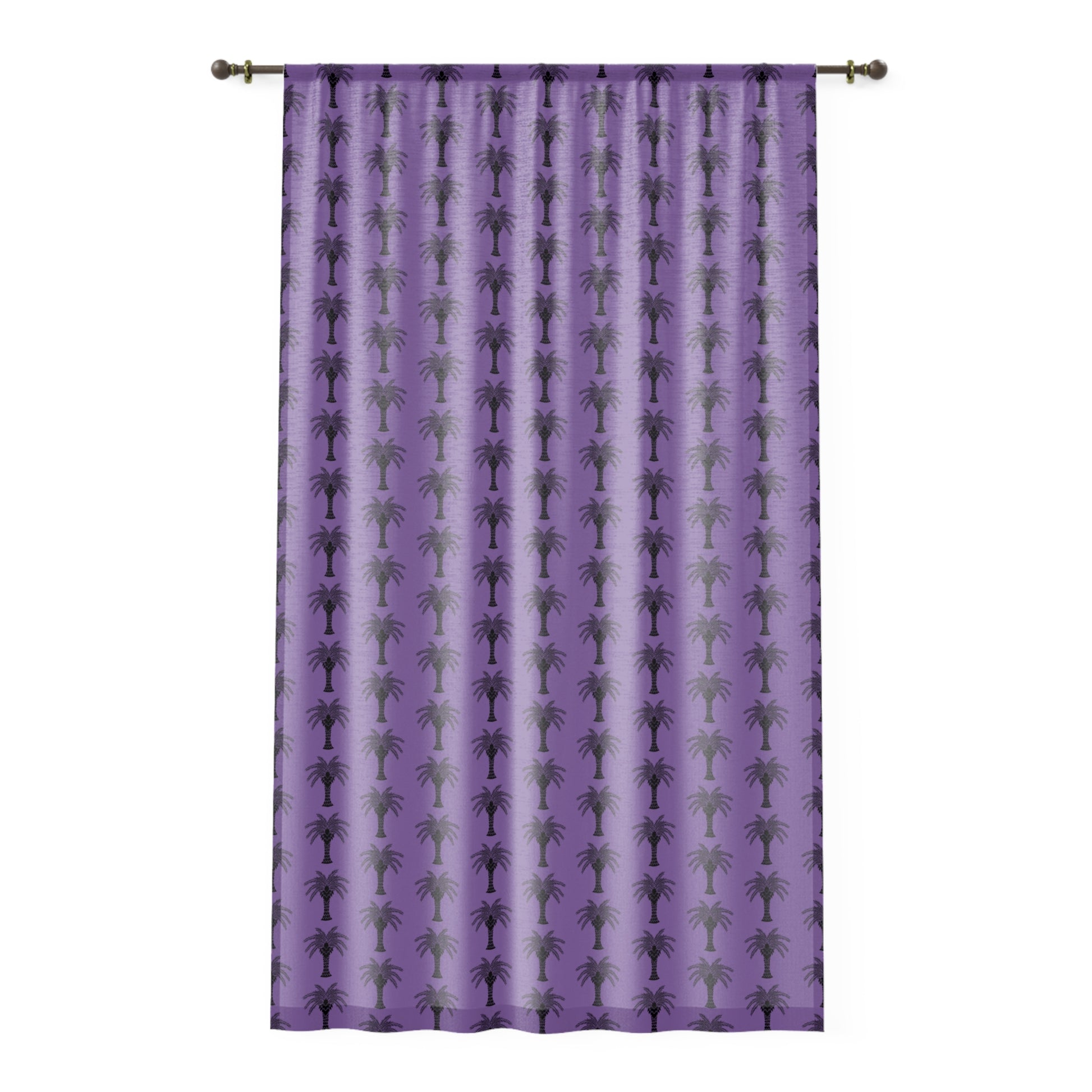 Deco Palm/Light Purple Semi-Transparent Window Curtain, 50" x 84" - Colorful Tropical Home Décor