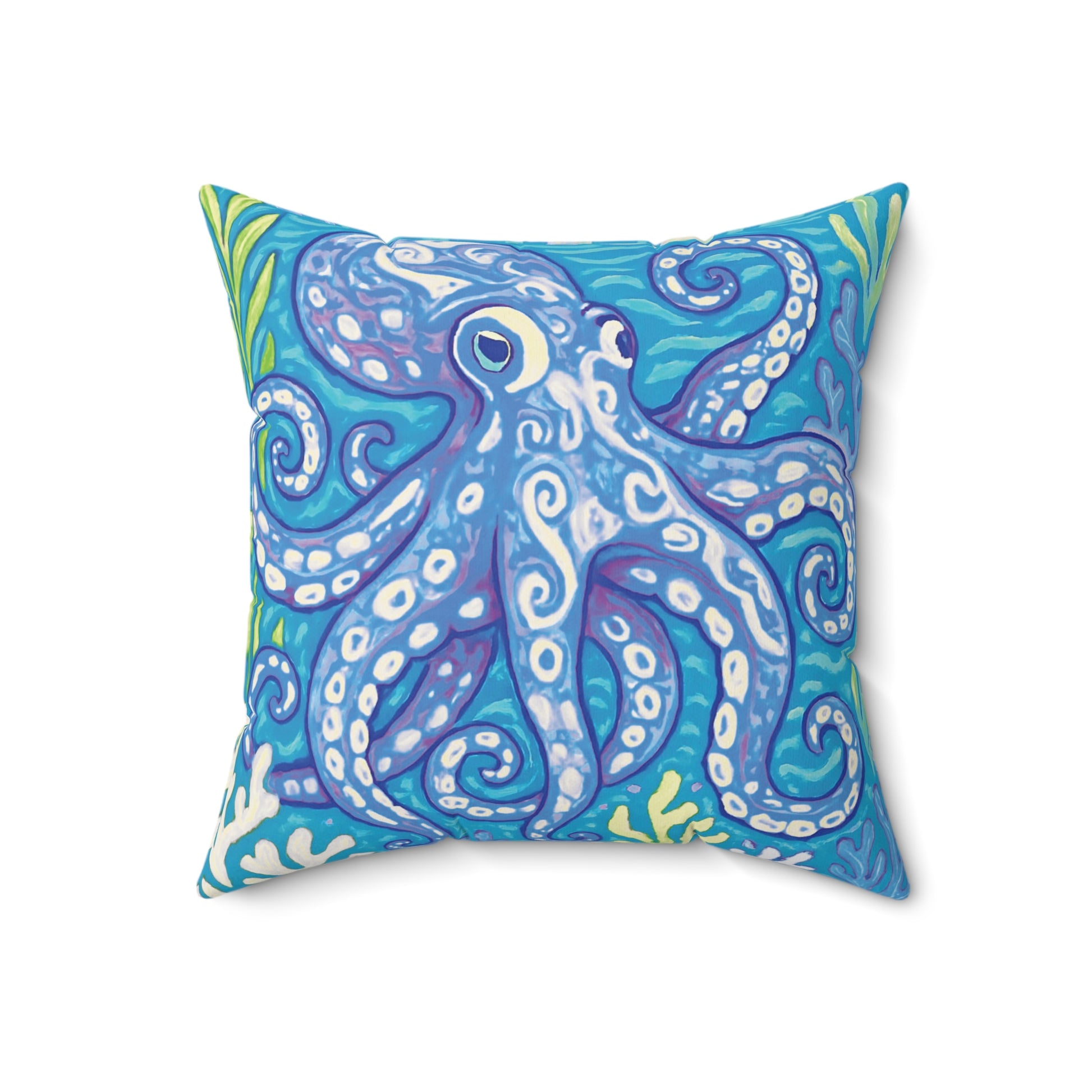 Introducing our stylish and vibrant square pillow, perfect for adding a pop of color and elegance to any space! Featuring our original octopus design, Kraken Joe, this pillow creates a serene and luxurious atmosphere. Ideal for both modern and bohemian decor, it seamlessly fits into your living room, bedroom, or even a cozy reading nook. Great for lounging, entertaining guests, or simply sprucing up your home for the holidays, this pillow is a thoughtful gift for housewarmings, birthdays, or special occasions. Perfect for anyone who appreciates artful decor and wants to infuse their space with personality!