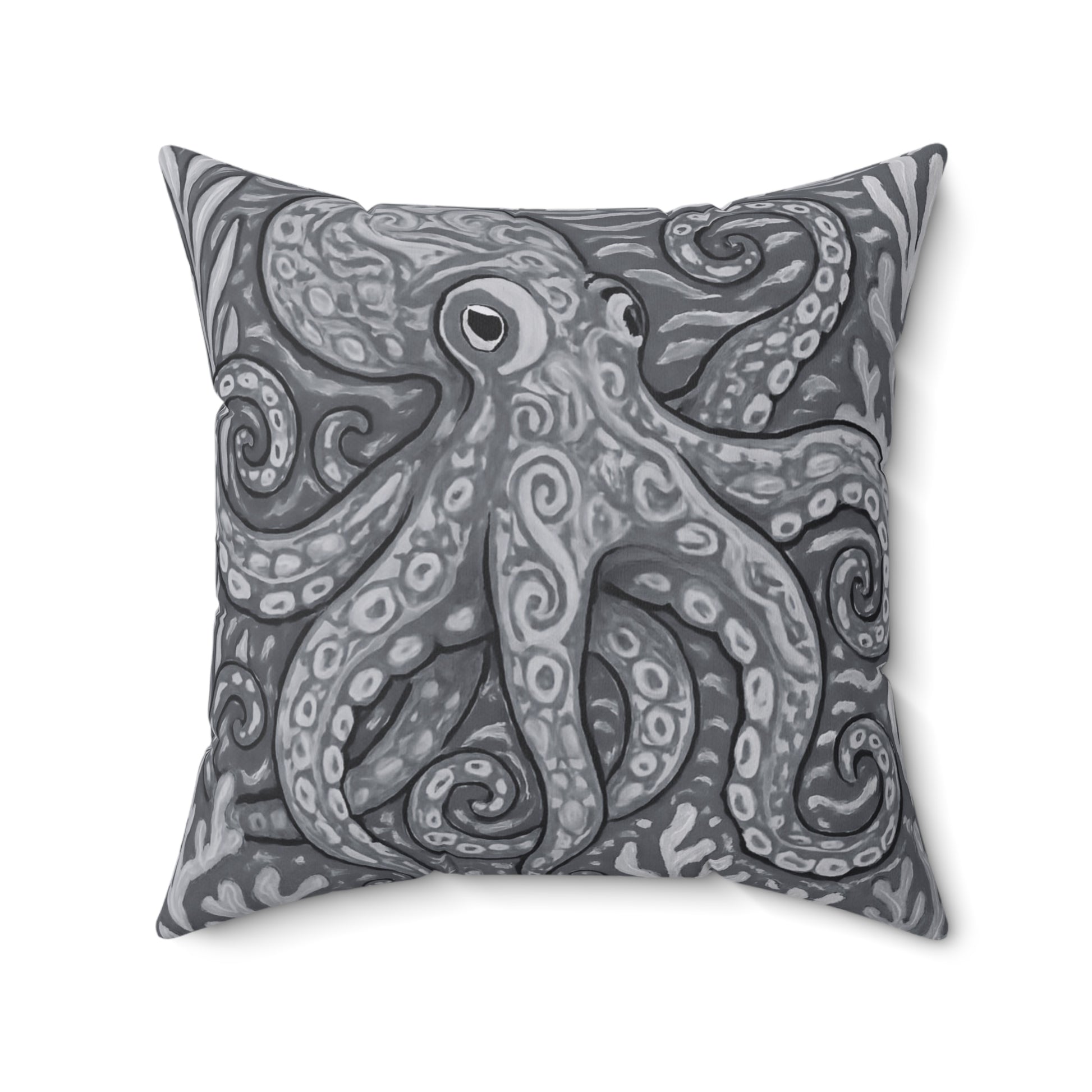 Introducing our stylish and vibrant square pillow, perfect for adding a pop of color and elegance to any space! Featuring our original octopus design, Kraken Joe, this pillow creates a serene and luxurious atmosphere. Ideal for both modern and bohemian decor, it seamlessly fits into your living room, bedroom, or even a cozy reading nook. Great for lounging, entertaining guests, or simply sprucing up your home for the holidays, this pillow is a thoughtful gift for housewarmings, birthdays, or special occasions. Perfect for anyone who appreciates artful decor and wants to infuse their space with personality!