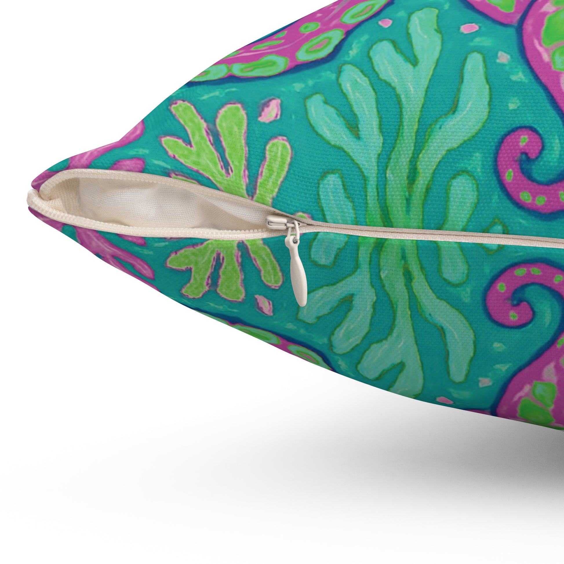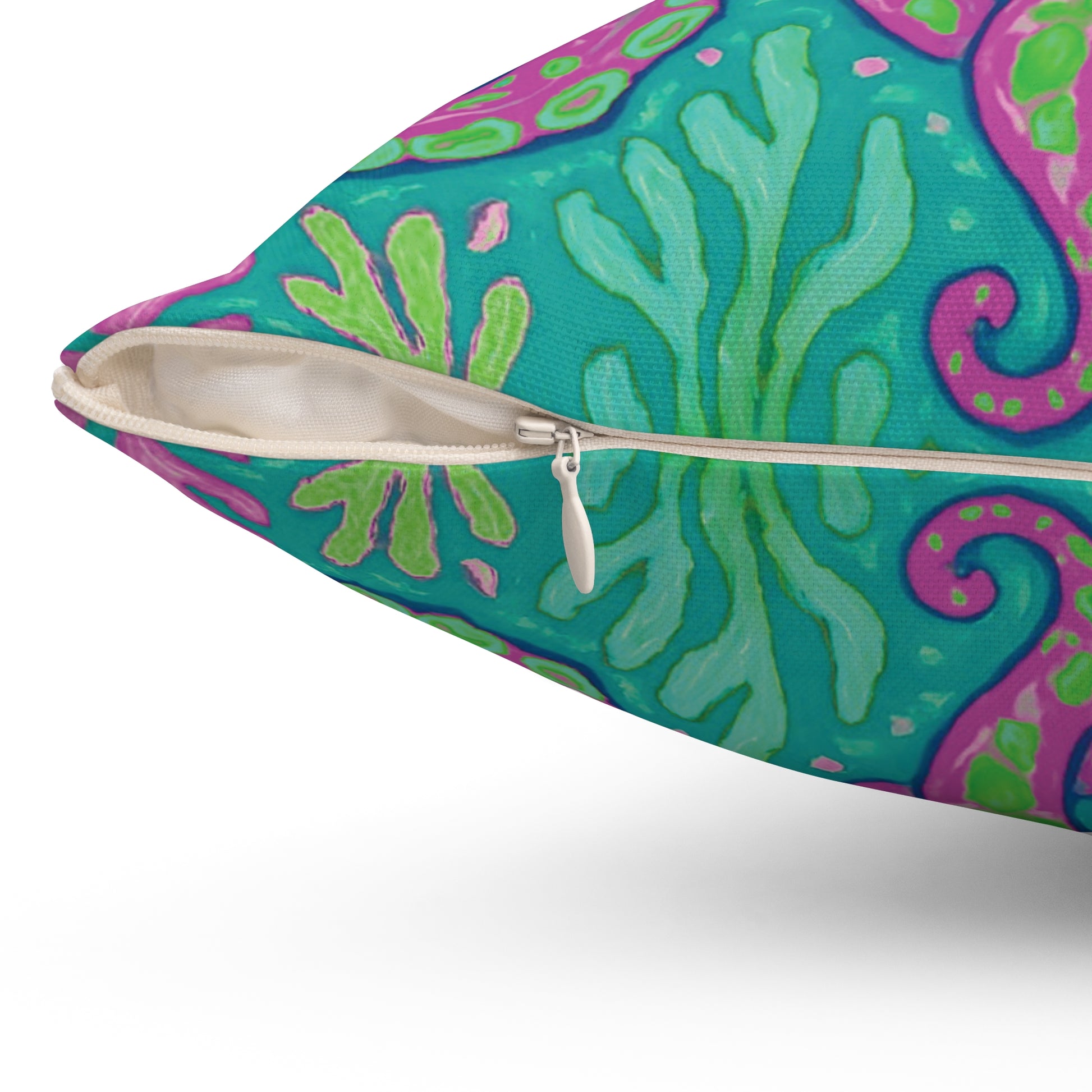 Introducing our stylish and vibrant square pillow, perfect for adding a pop of color and elegance to any space! Featuring our original octopus design, Kraken Joe, this pillow creates a serene and luxurious atmosphere. Ideal for both modern and bohemian decor, it seamlessly fits into your living room, bedroom, or even a cozy reading nook. Great for lounging, entertaining guests, or simply sprucing up your home for the holidays, this pillow is a thoughtful gift for housewarmings, birthdays, or special occasions. Perfect for anyone who appreciates artful decor and wants to infuse their space with personality!