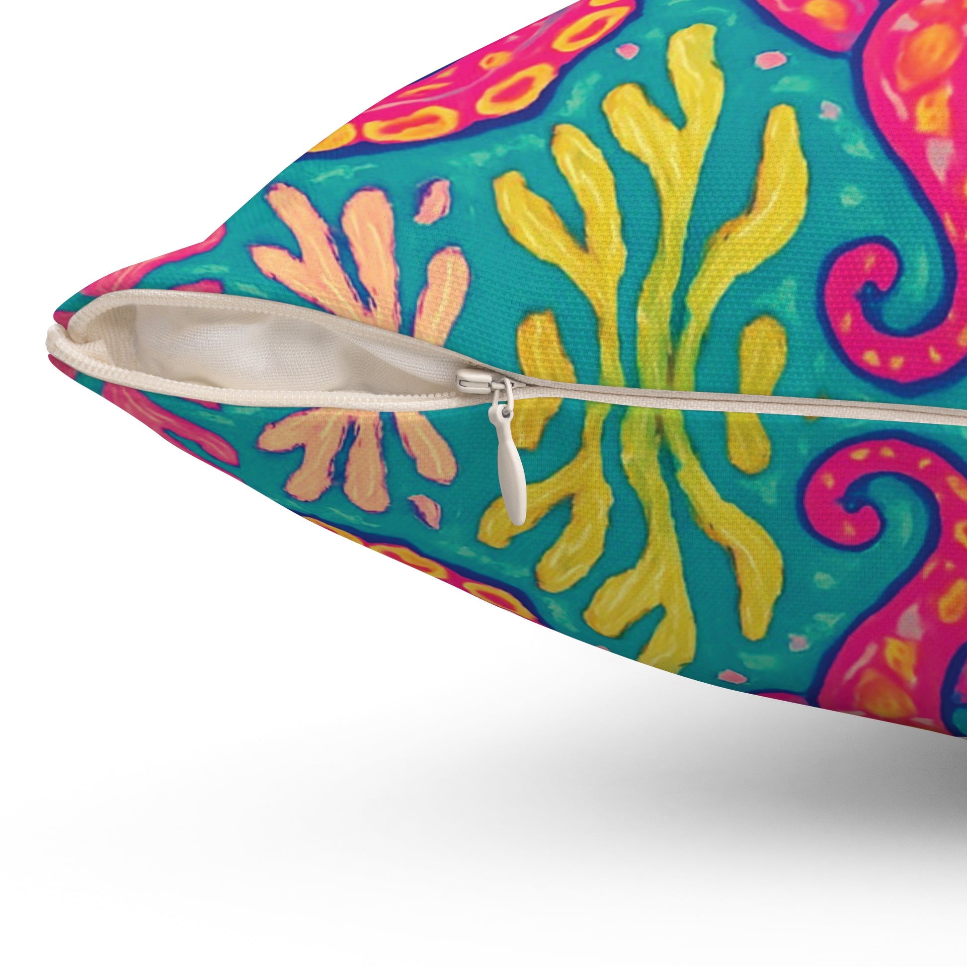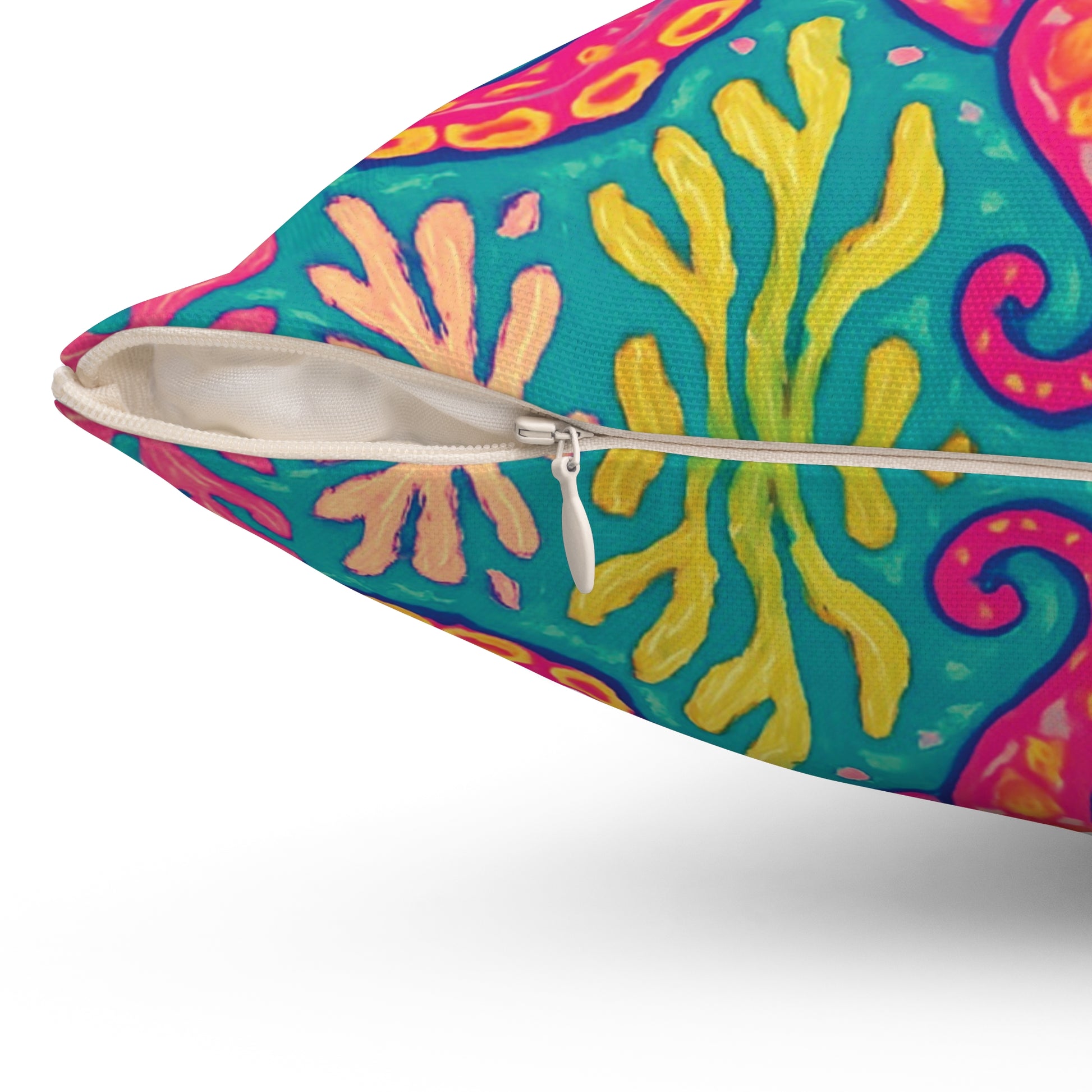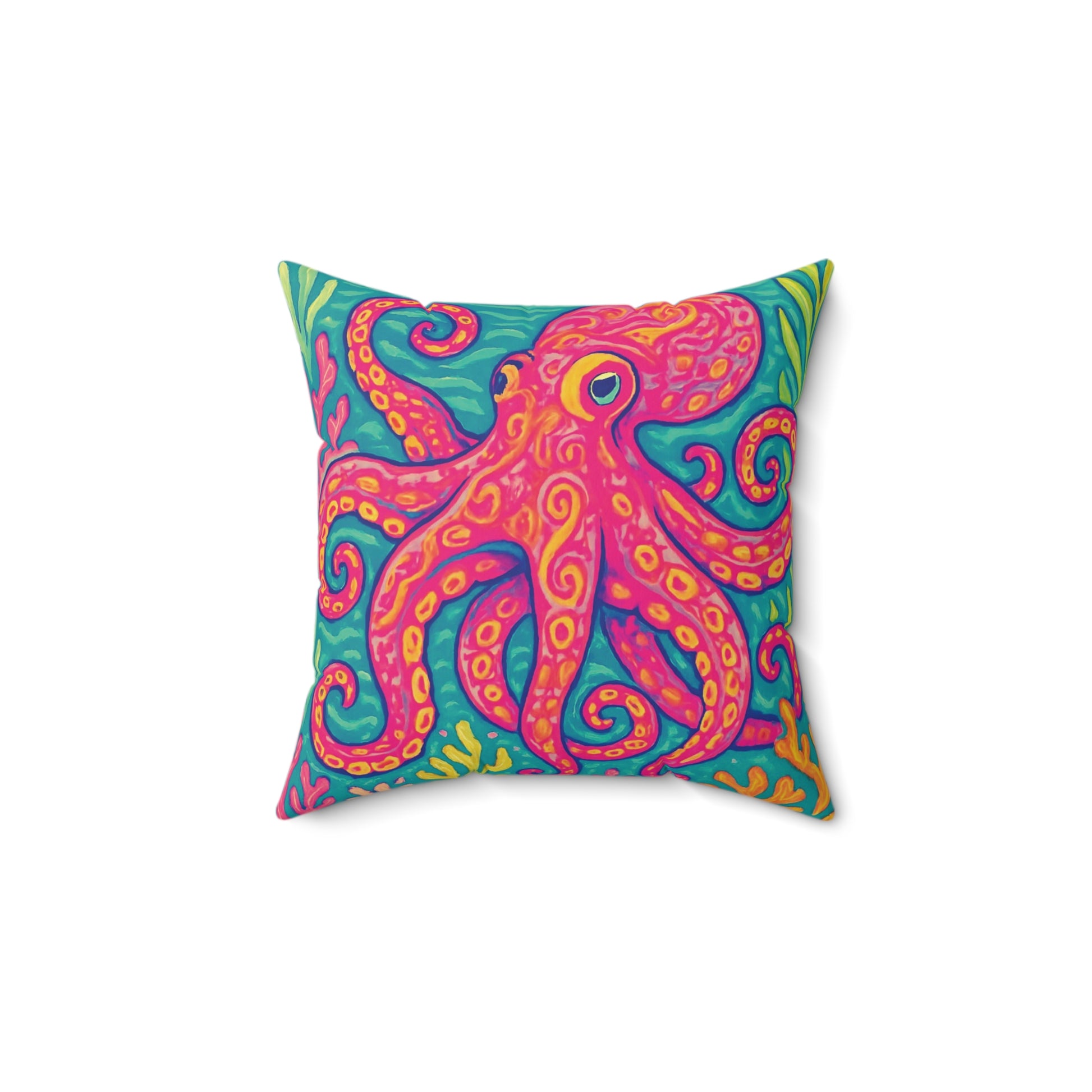 Introducing our stylish and vibrant square pillow, perfect for adding a pop of color and elegance to any space! Featuring our original octopus design, Kraken Joe, this pillow creates a serene and luxurious atmosphere. Ideal for both modern and bohemian decor, it seamlessly fits into your living room, bedroom, or even a cozy reading nook. Great for lounging, entertaining guests, or simply sprucing up your home for the holidays, this pillow is a thoughtful gift for housewarmings, birthdays, or special occasions. Perfect for anyone who appreciates artful decor and wants to infuse their space with personality!