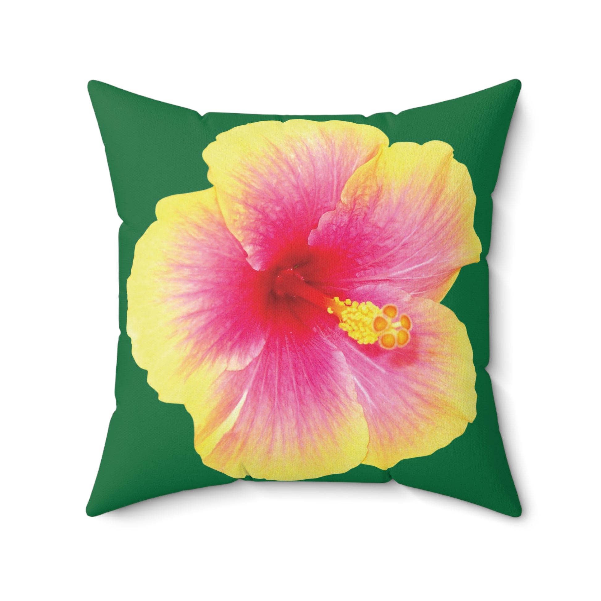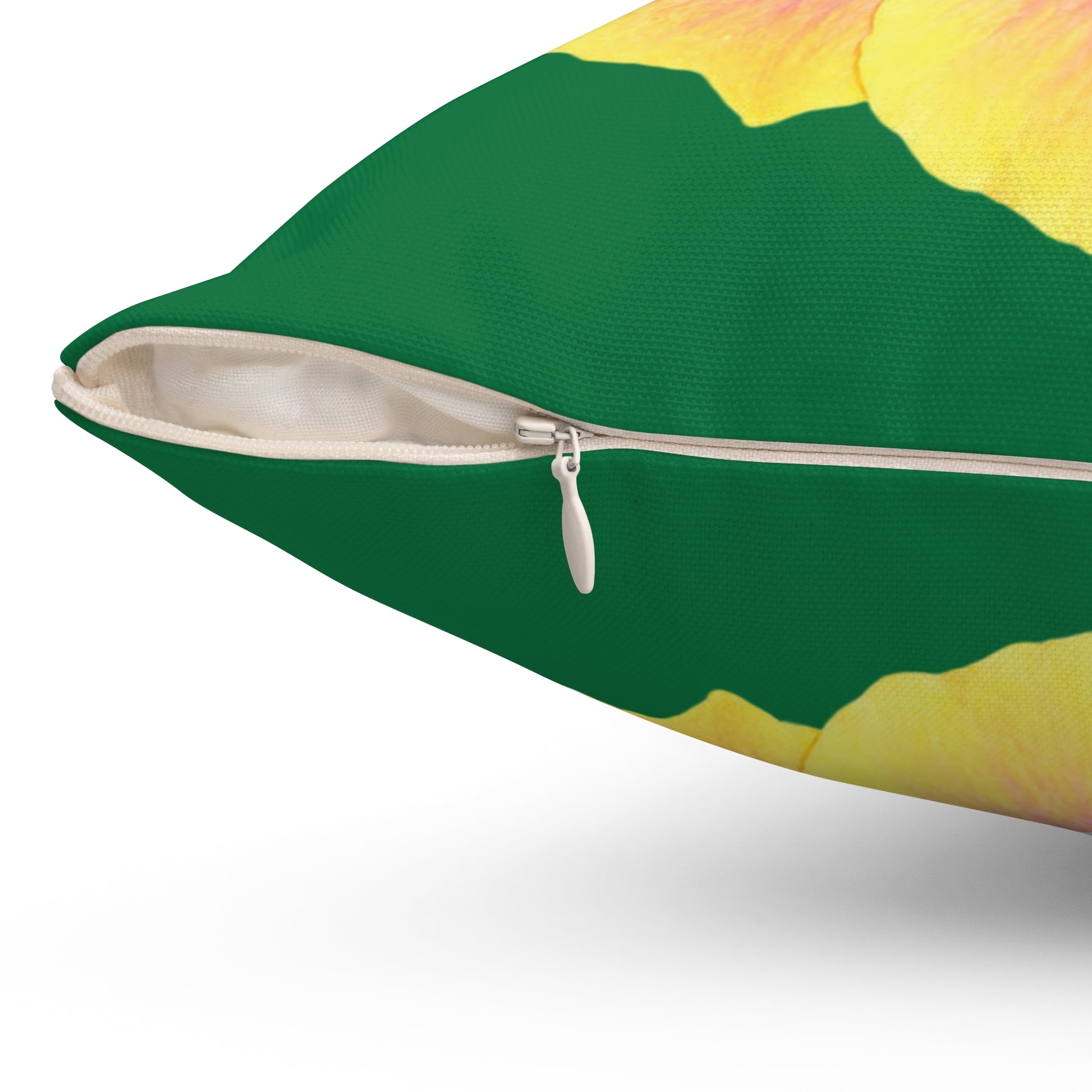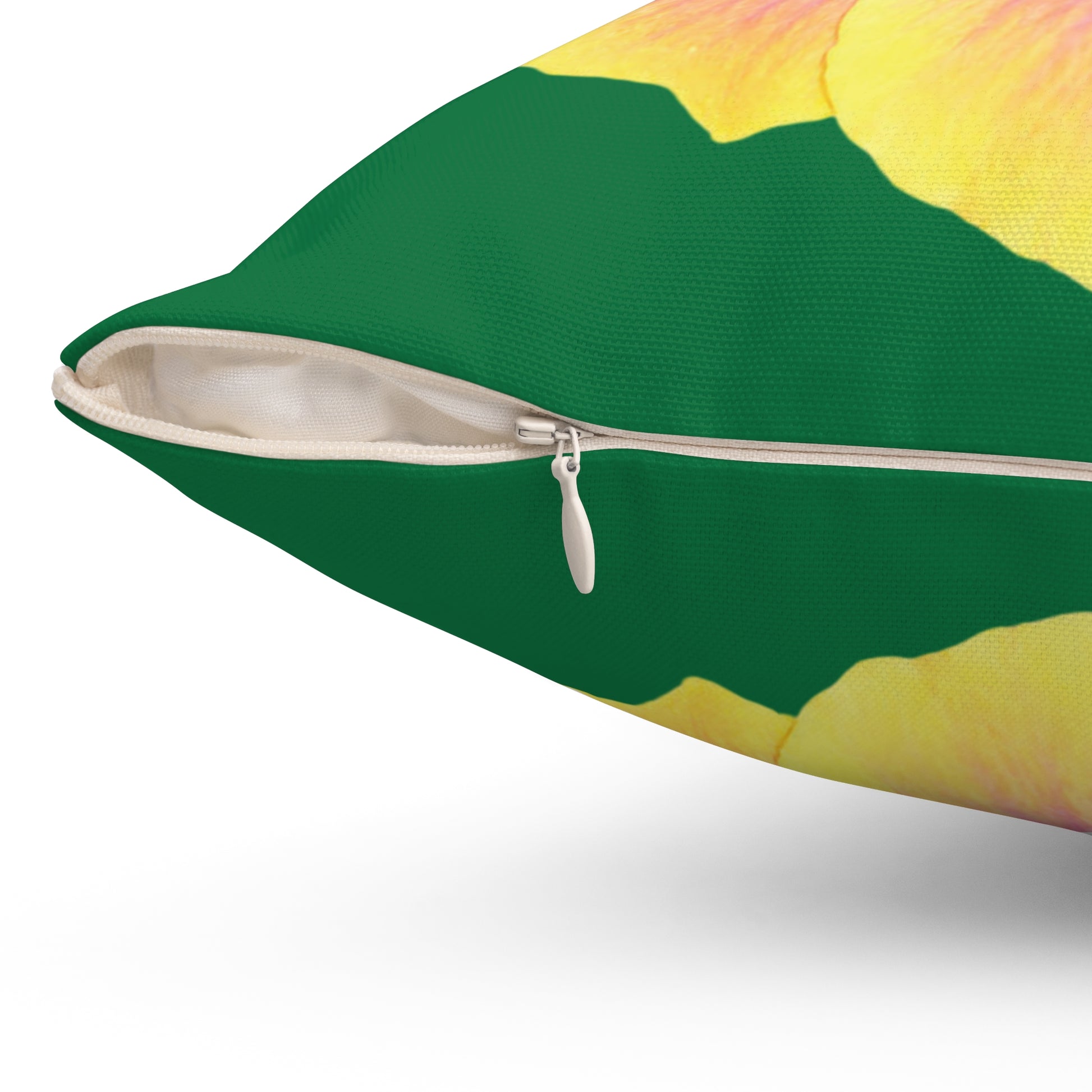 Decorative Pillow - Accent Cushion, 4 Sizes / Photo Yellow Hibiscus, Dark Green
