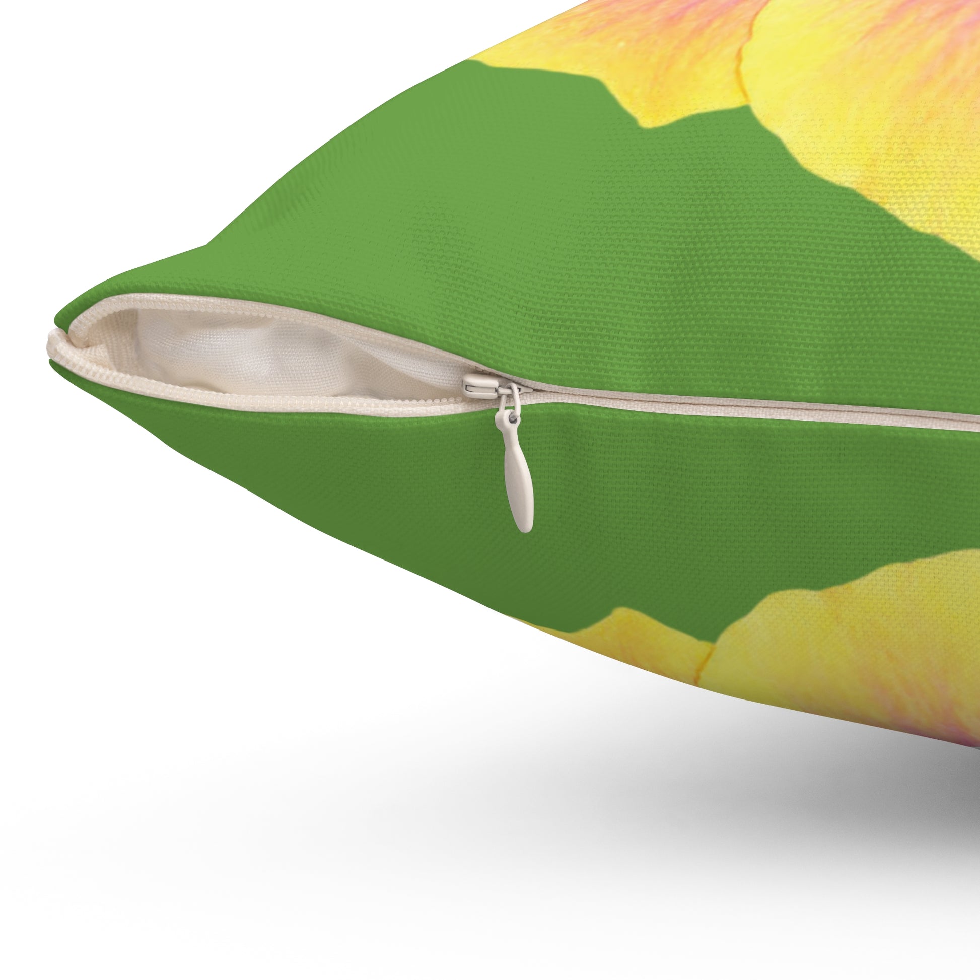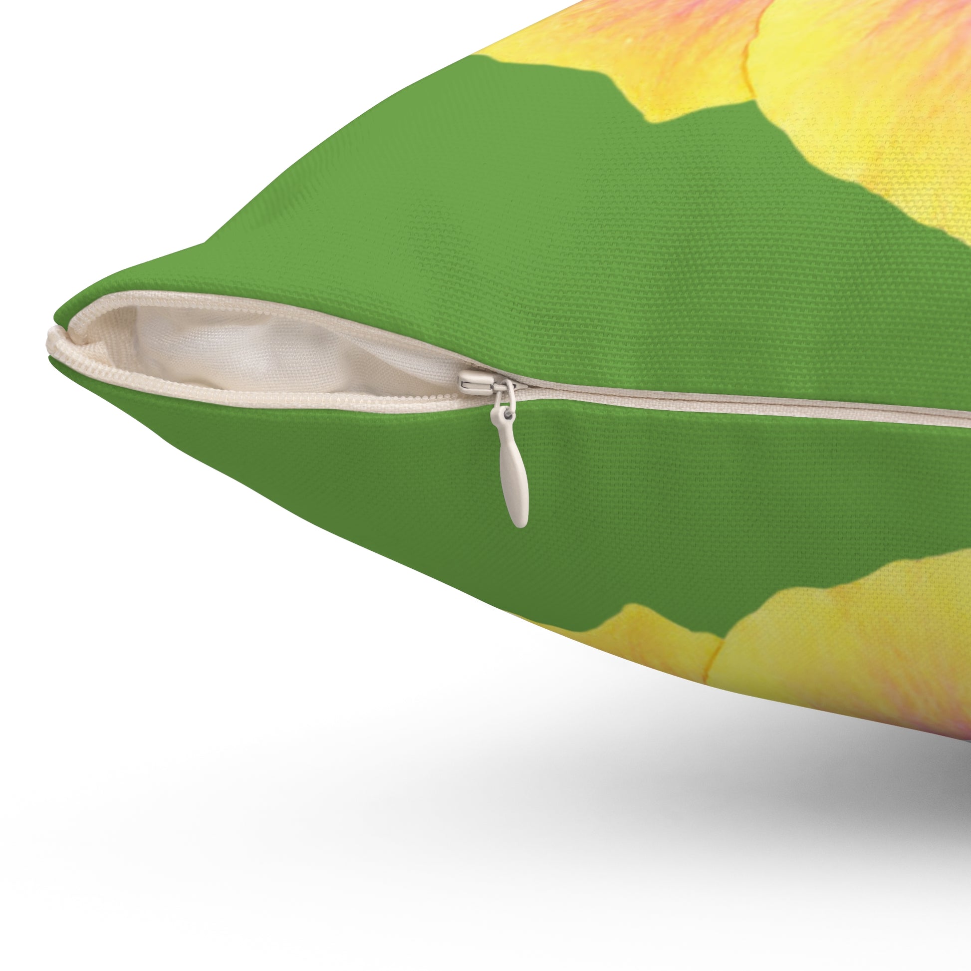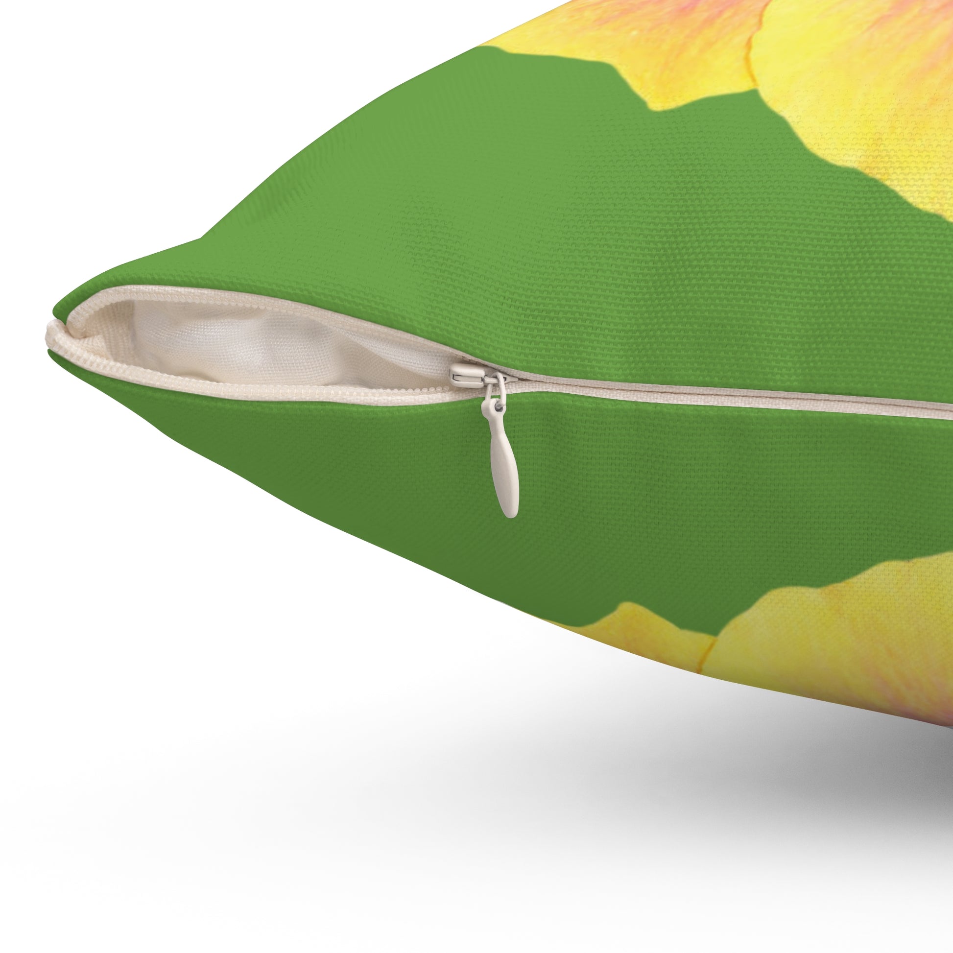 Decorative Pillow - Accent Cushion, 4 Sizes / Photo Yellow Hibiscus, Green