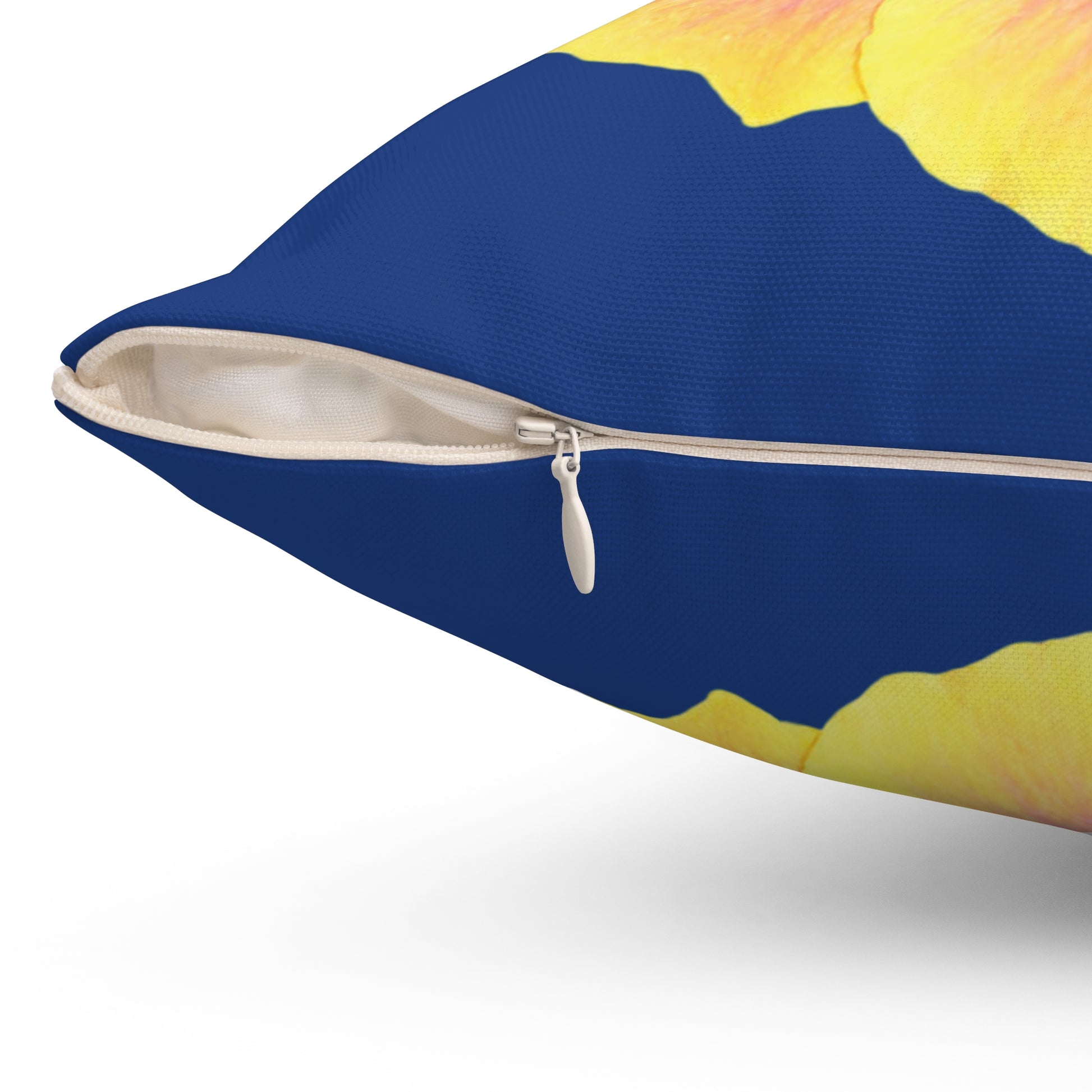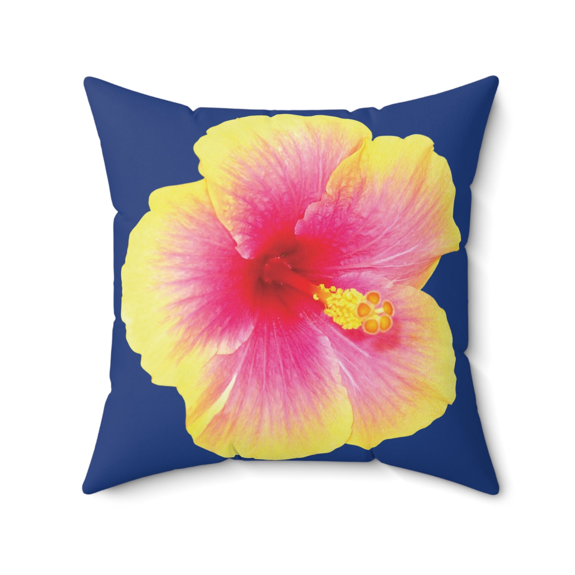 Decorative Pillow - Accent Cushion, 4 Sizes / Photo Yellow Hibiscus, Navy Blue