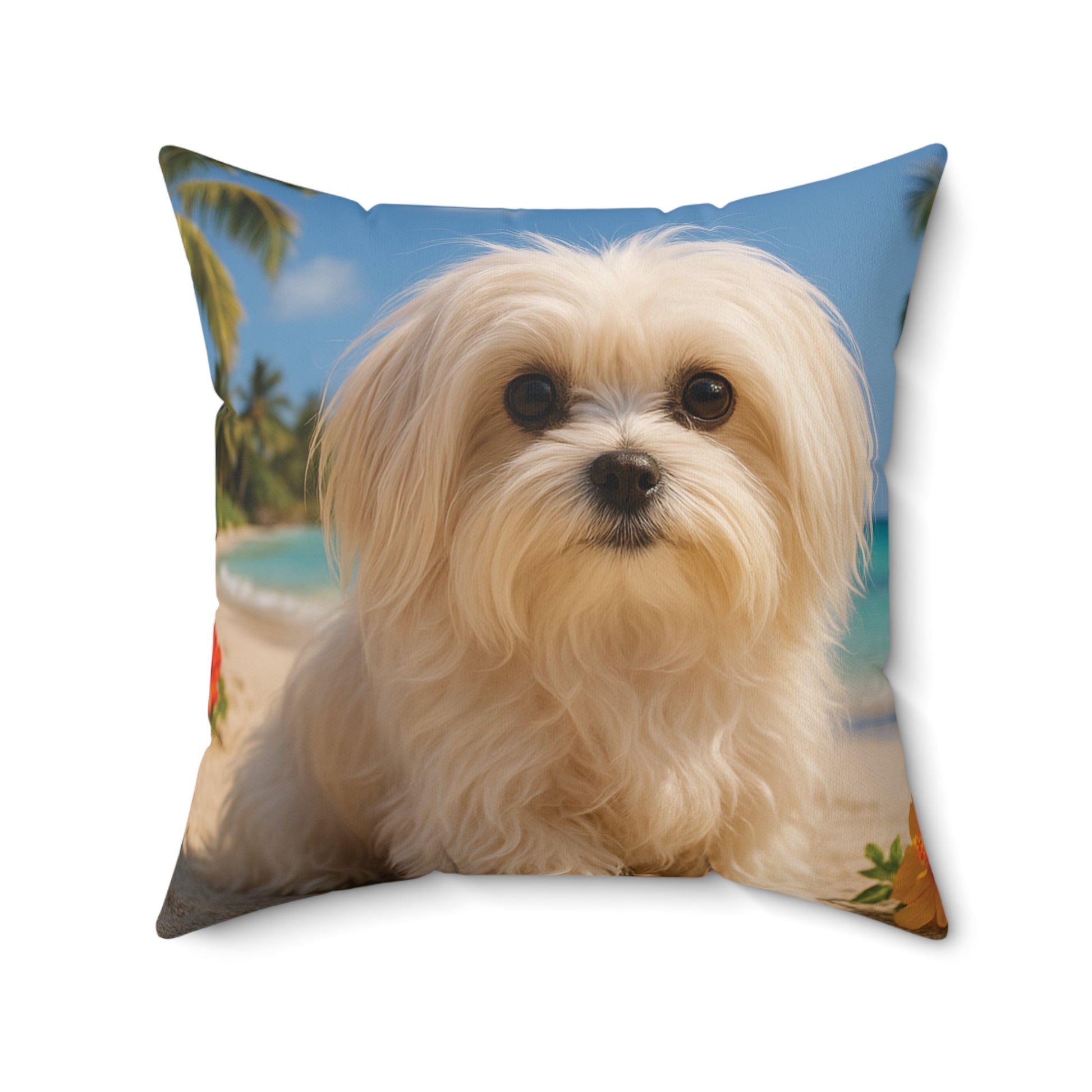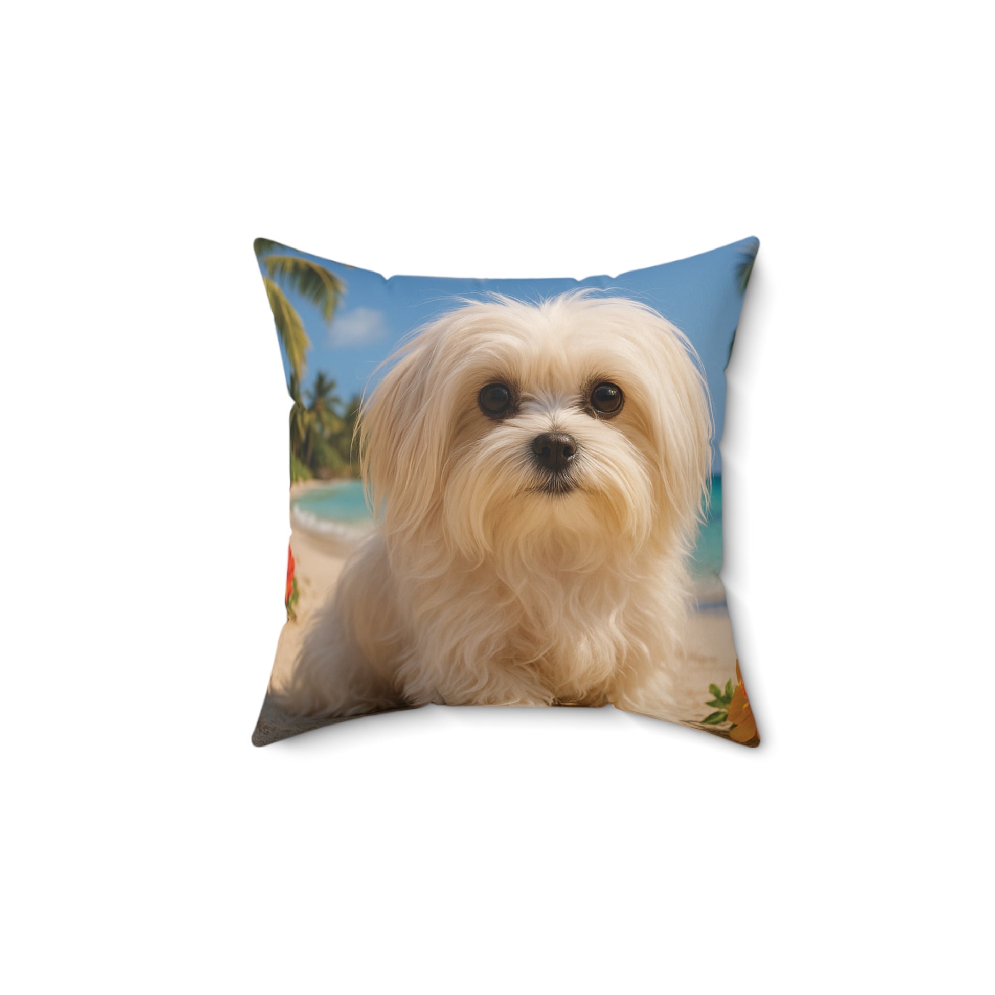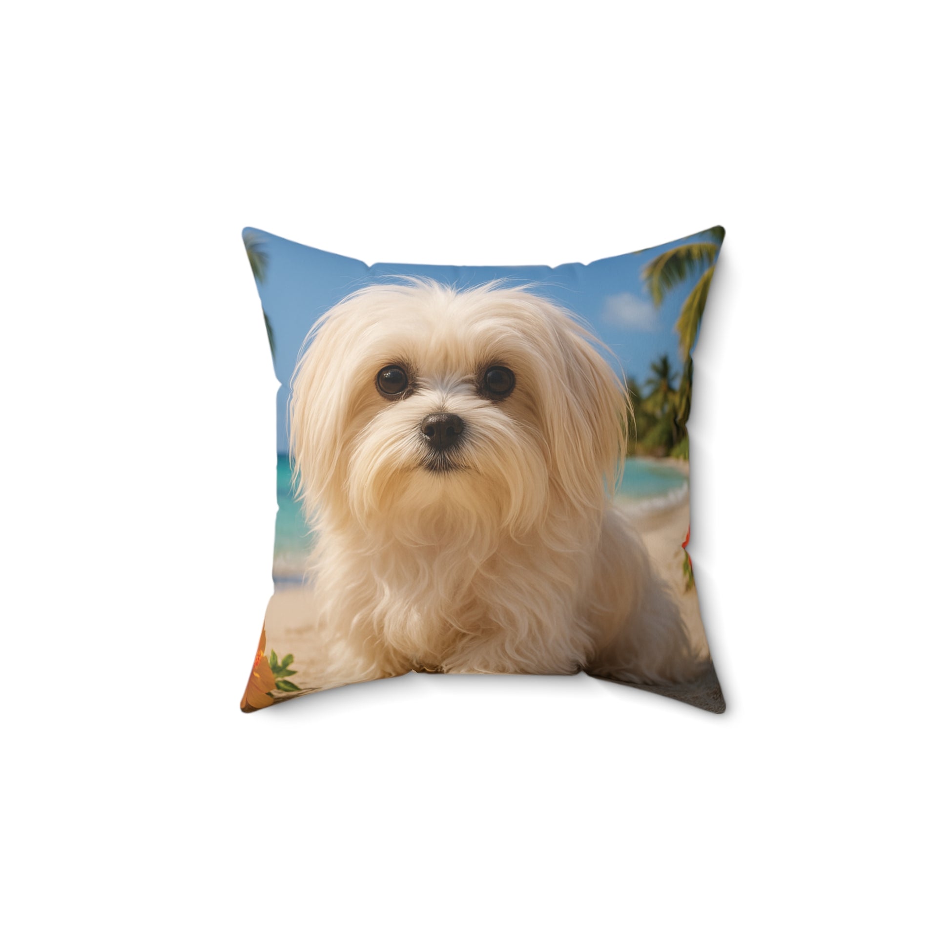 Introducing our stylish and vibrant square pillow, perfect for adding a pop of color and elegance to any space! Featuring a stunning image of little puppy Ariel, the Maltese/Shih Tzu, this pillow creates a serene and luxurious atmosphere. Ideal for both modern and bohemian decor, it seamlessly fits into your living room, bedroom, or even a cozy reading nook. Great for lounging, entertaining guests, or simply sprucing up your home for the holidays, this pillow is a thoughtful gift for housewarmings, birthdays, or special occasions. Perfect for anyone who appreciates artful decor and wants to infuse their space with personality!