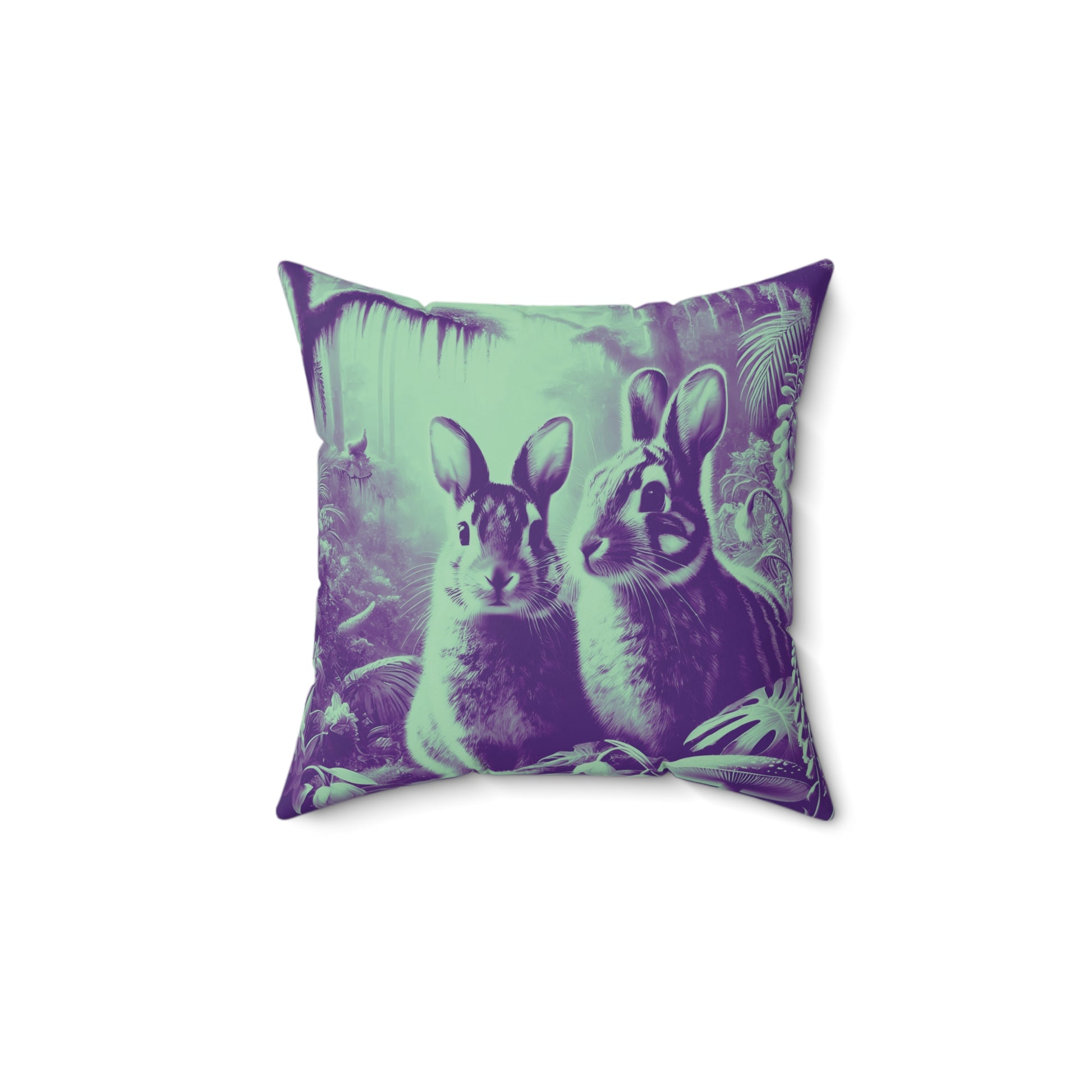 Introducing our stylish and vibrant square pillow, perfect for adding a pop of color and elegance to any space! Featuring two rainforest Sumatran rabbits, this pillow creates a serene and luxurious atmosphere. Ideal for both modern and bohemian decor, it seamlessly fits into your living room, bedroom, or even a cozy reading nook. Great for lounging, entertaining guests, or simply sprucing up your home for the holidays, this pillow is a thoughtful gift for housewarmings, birthdays, or special occasions. Perfect for anyone who appreciates artful decor and wants to infuse their space with personality!