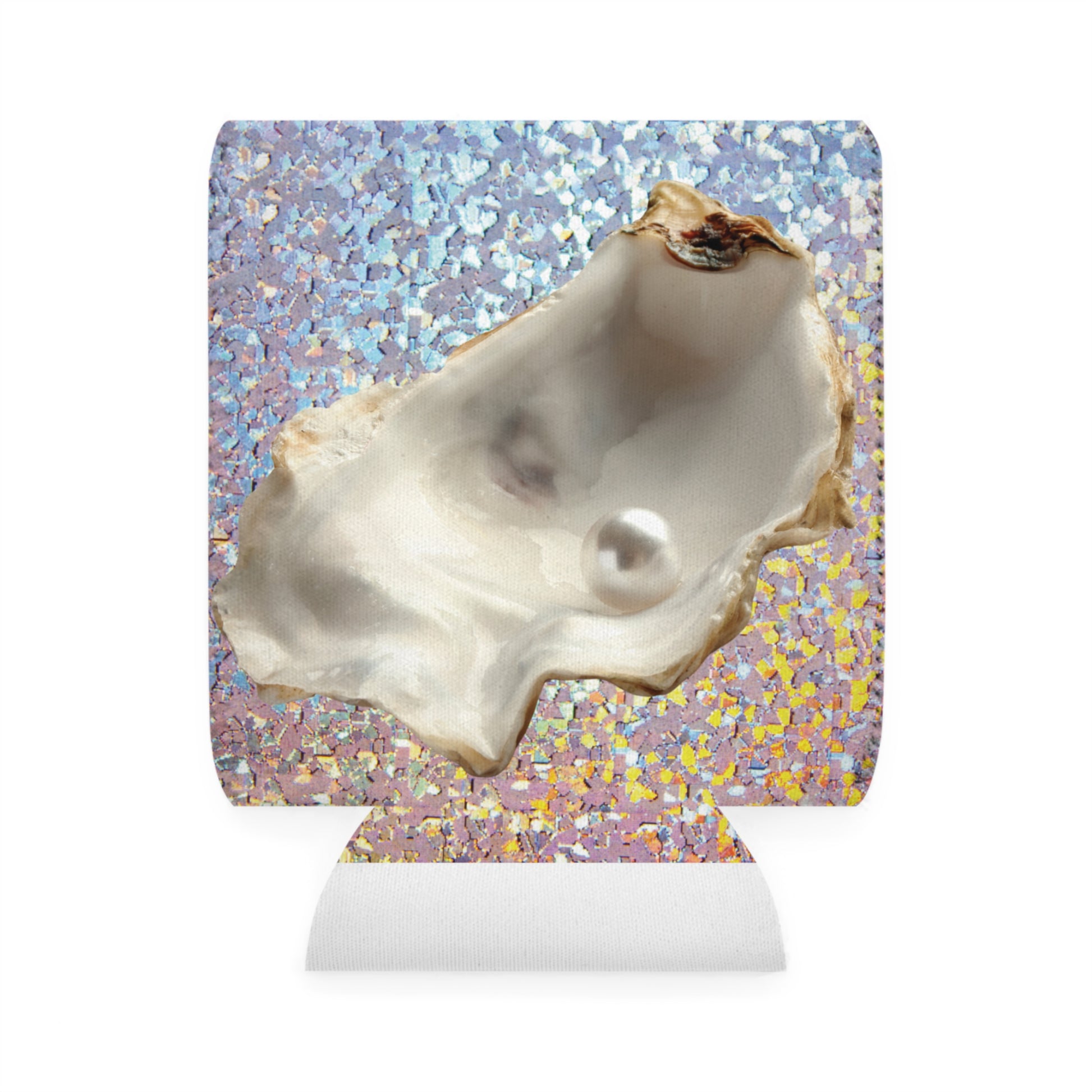 Disco FW White Pearl Oyster Can Cooler Sleeve - Perfect for Outdoor Picnics