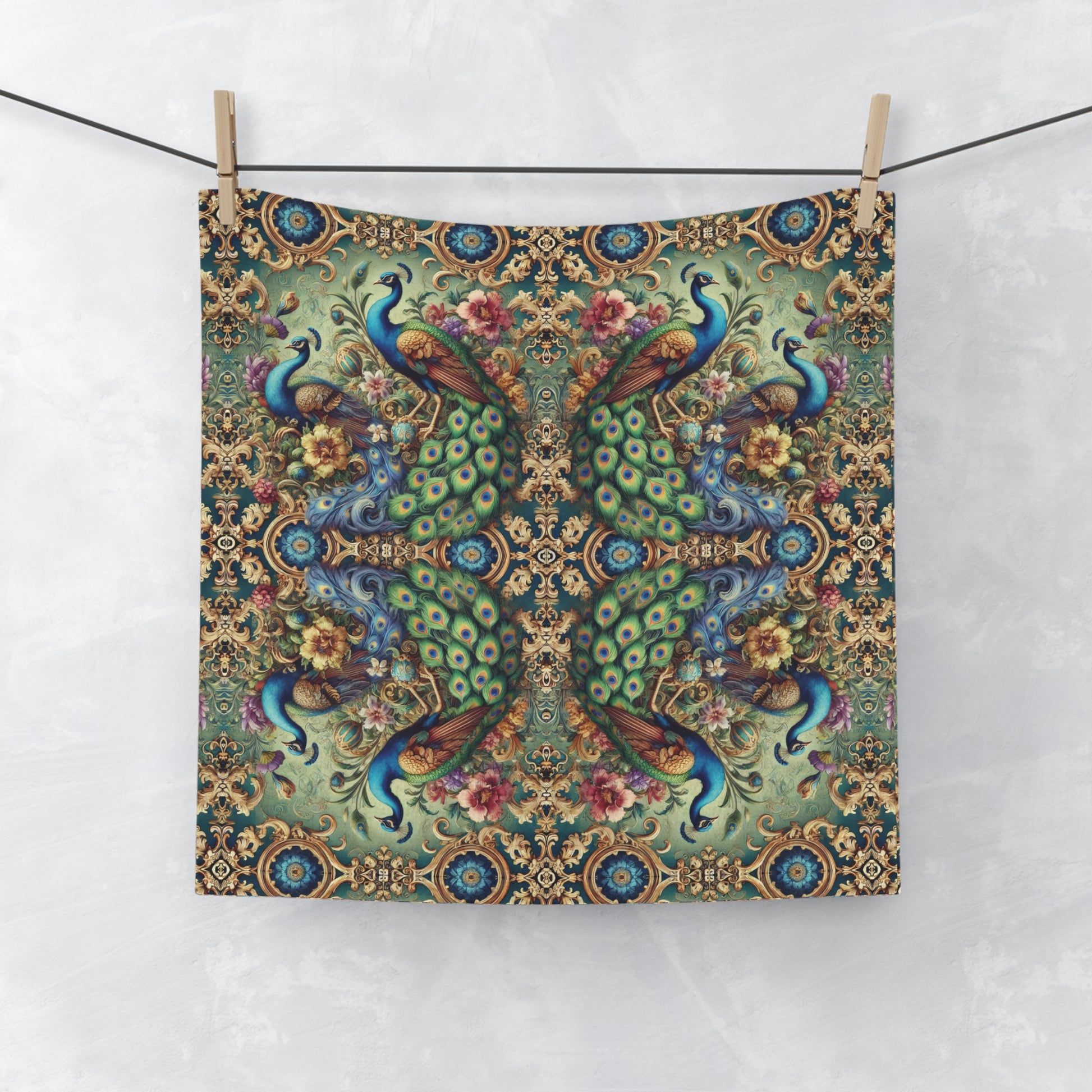 Give your bathroom a tropical vibe with our original and colorful kaleidoscope peacock design. Check out other items in pattern.