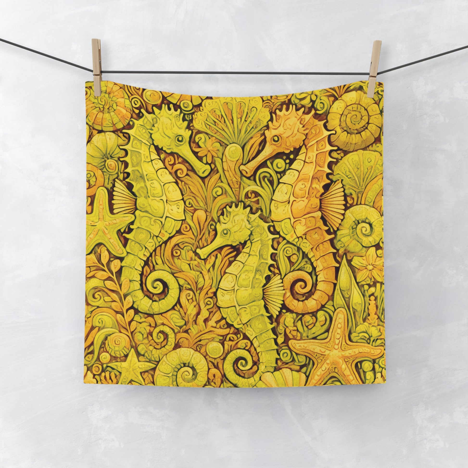 Beautiful artwork of three seahorses in their underwater kingdom. Check out other items in pattern.