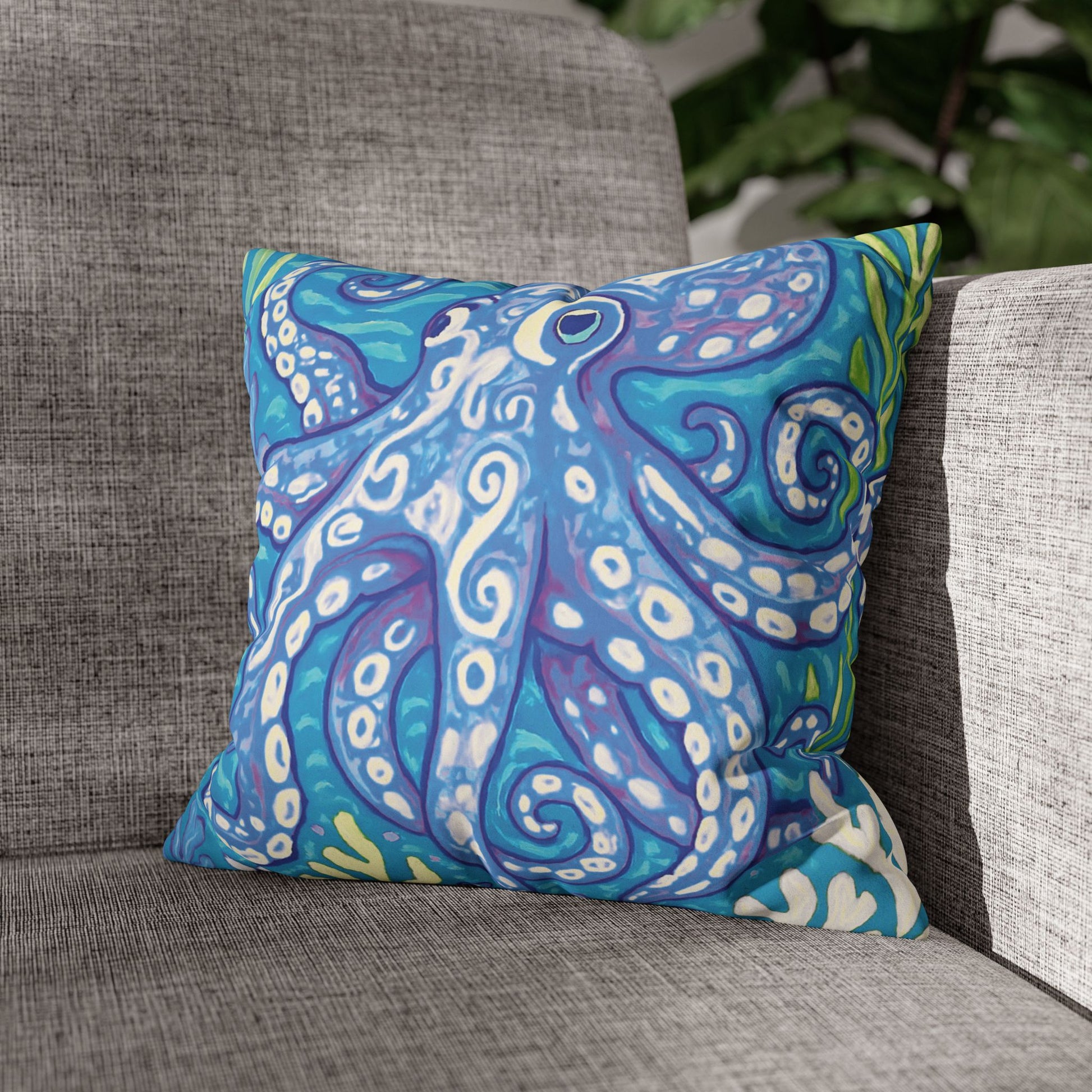 Faux Suede Square Pillowcase - Blue Kraken Joe