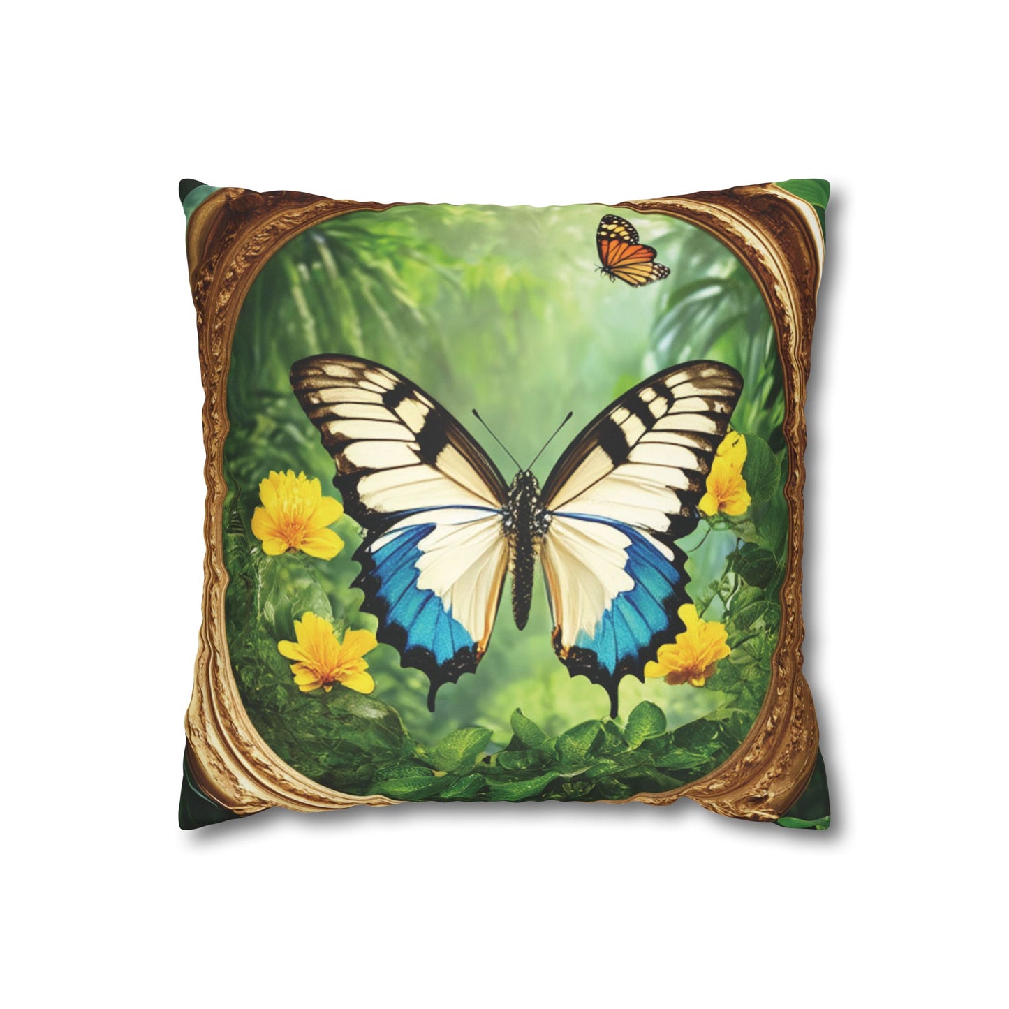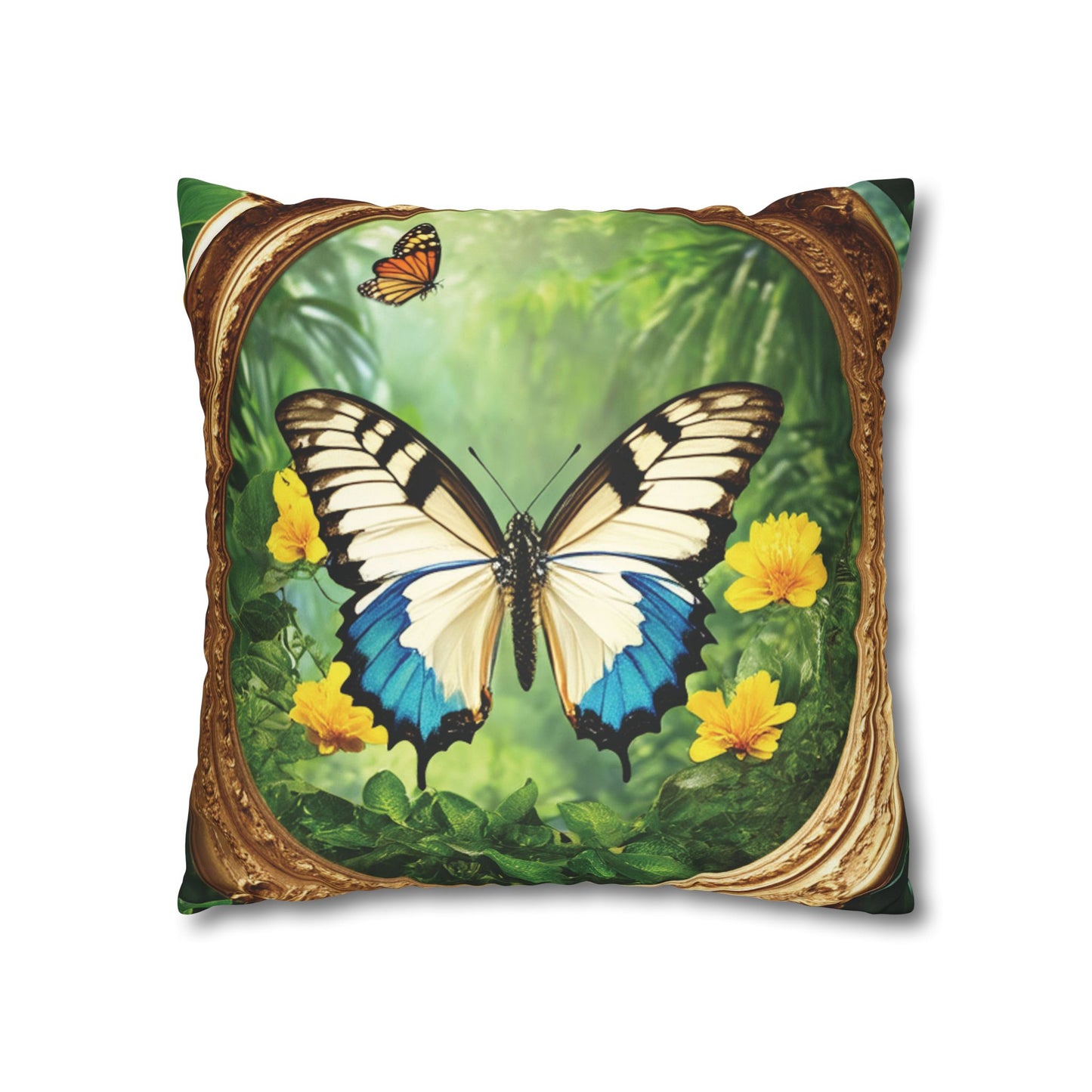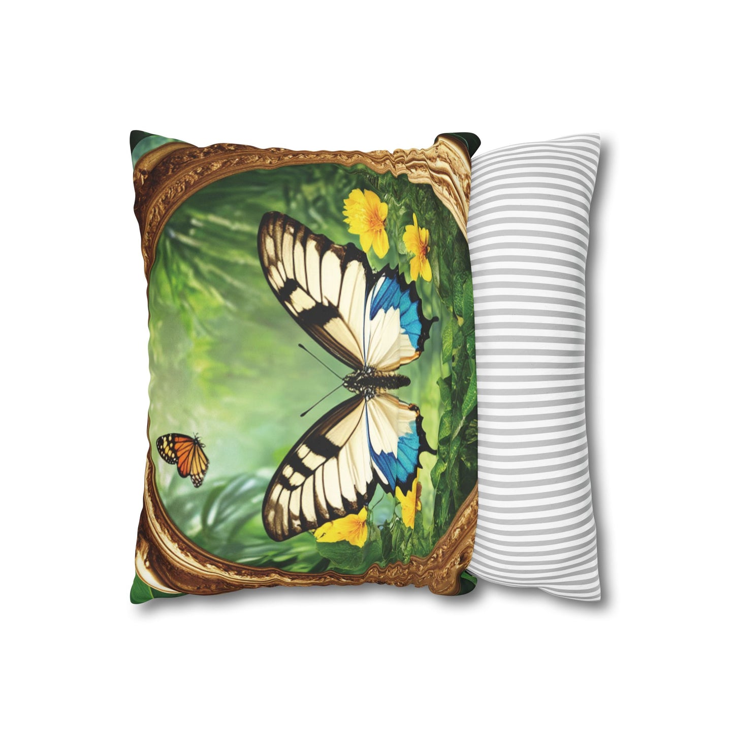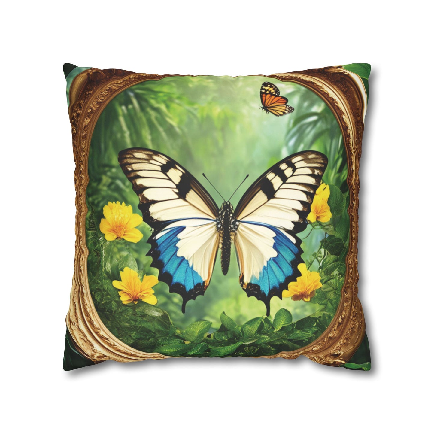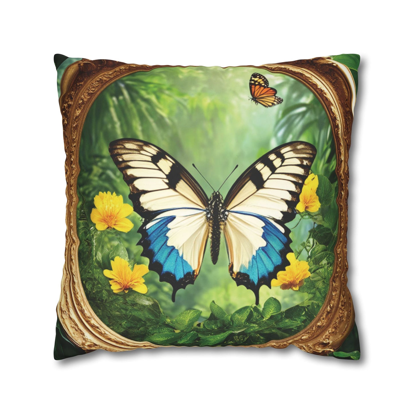 Faux Suede Square Pillowcase - Framed Swallowtail Butterfly
