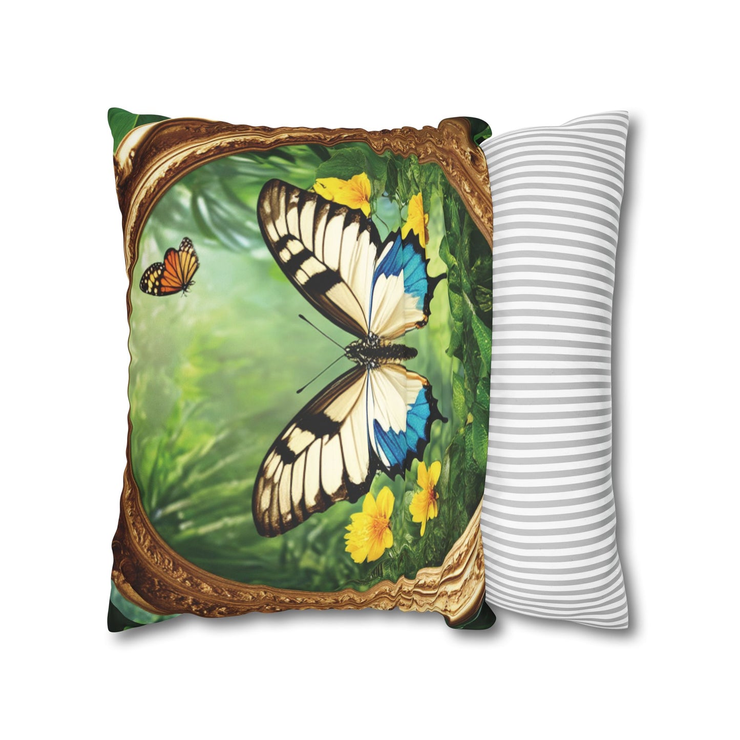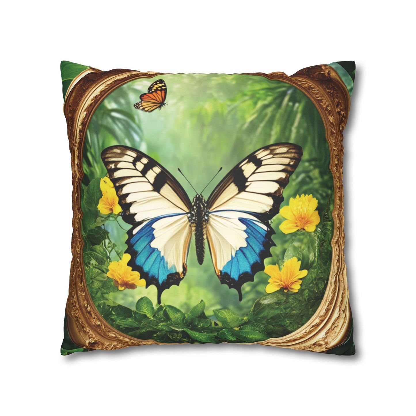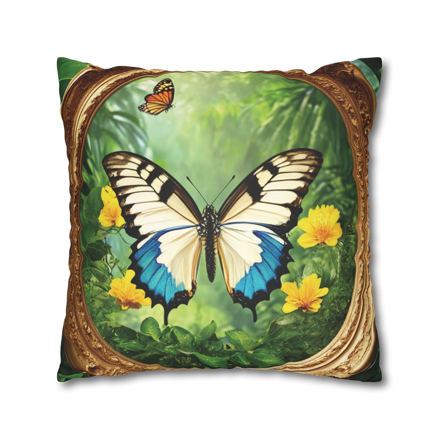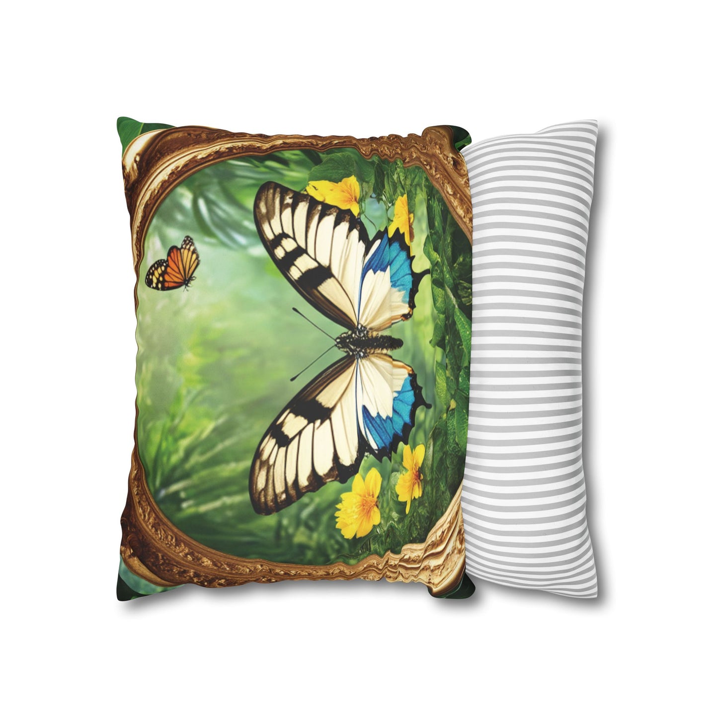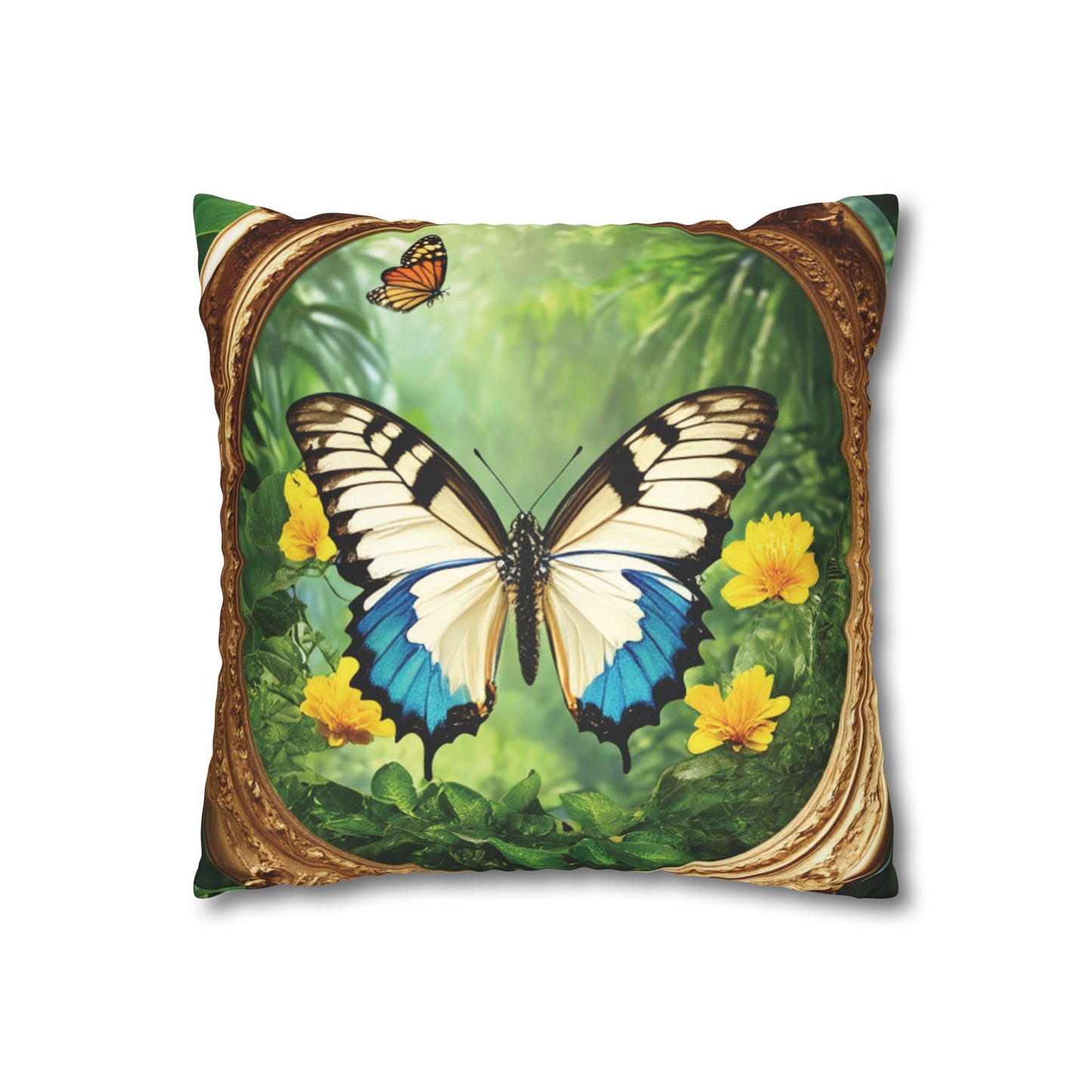 Faux Suede Square Pillowcase - Framed Swallowtail Butterfly