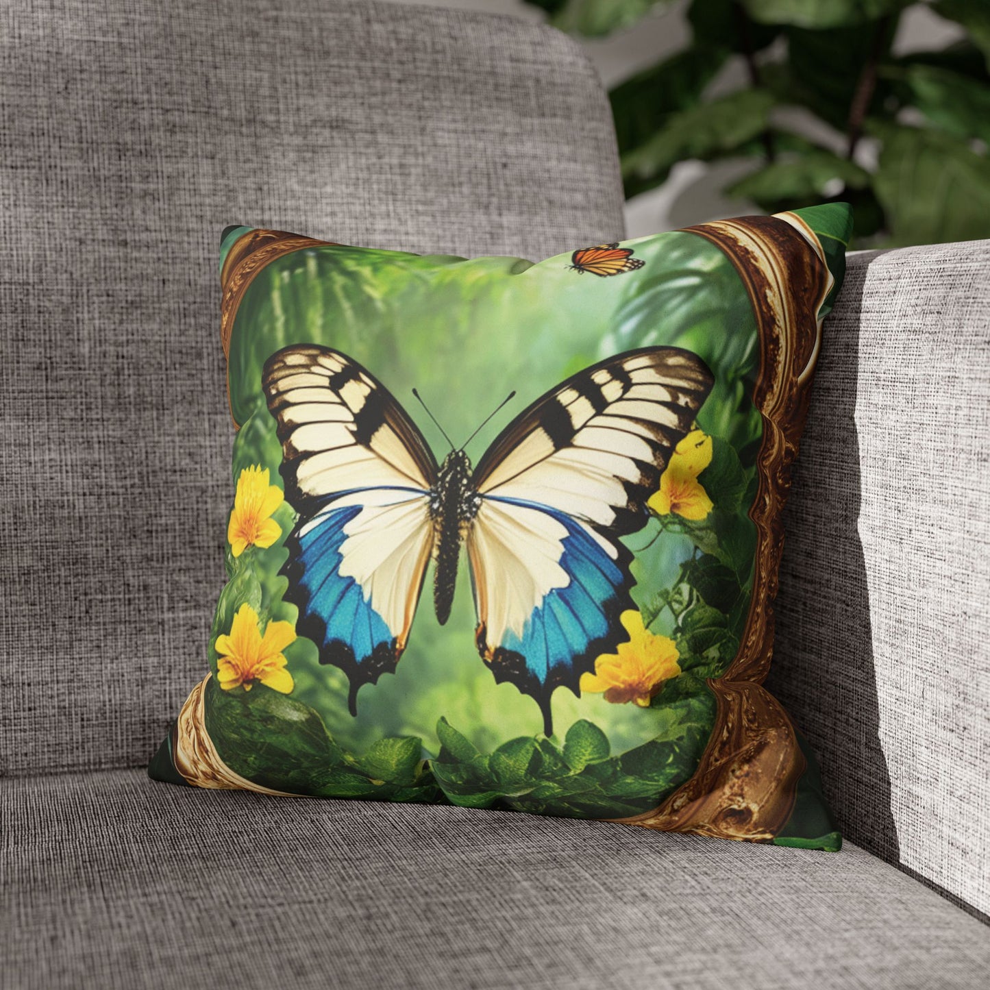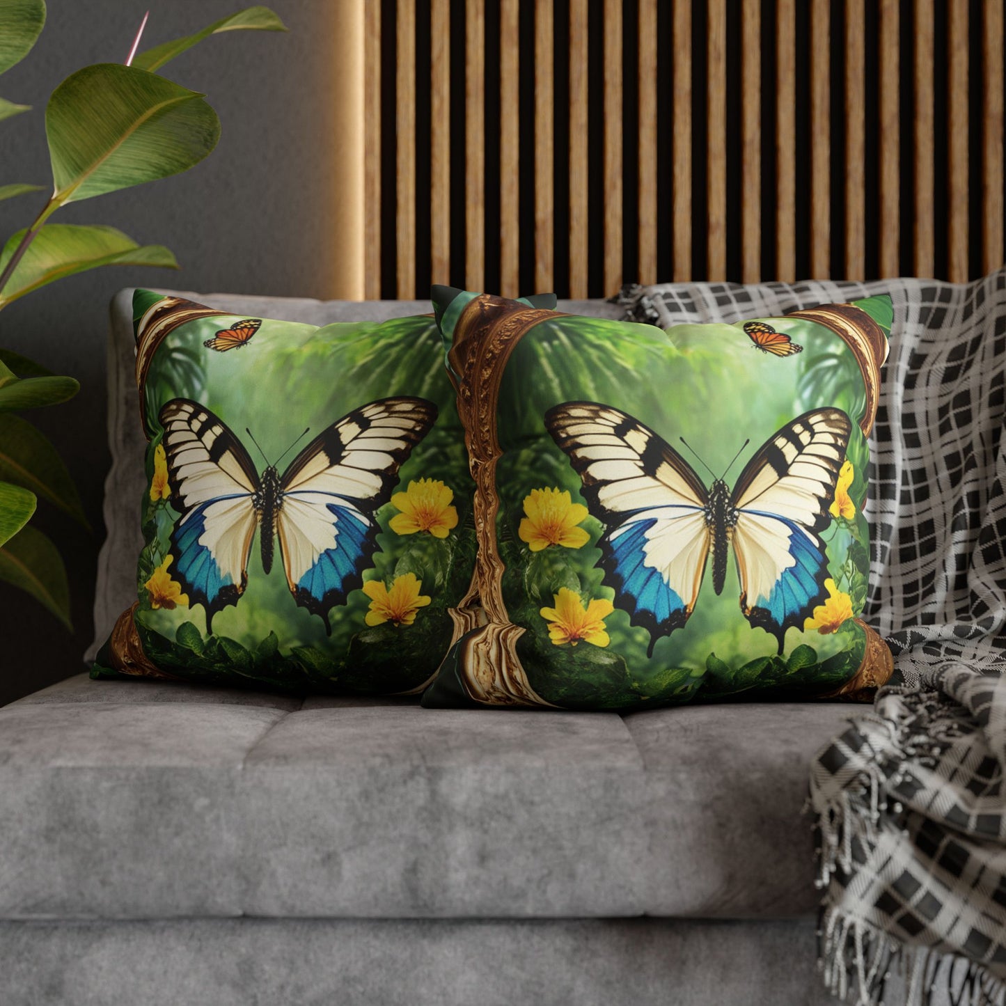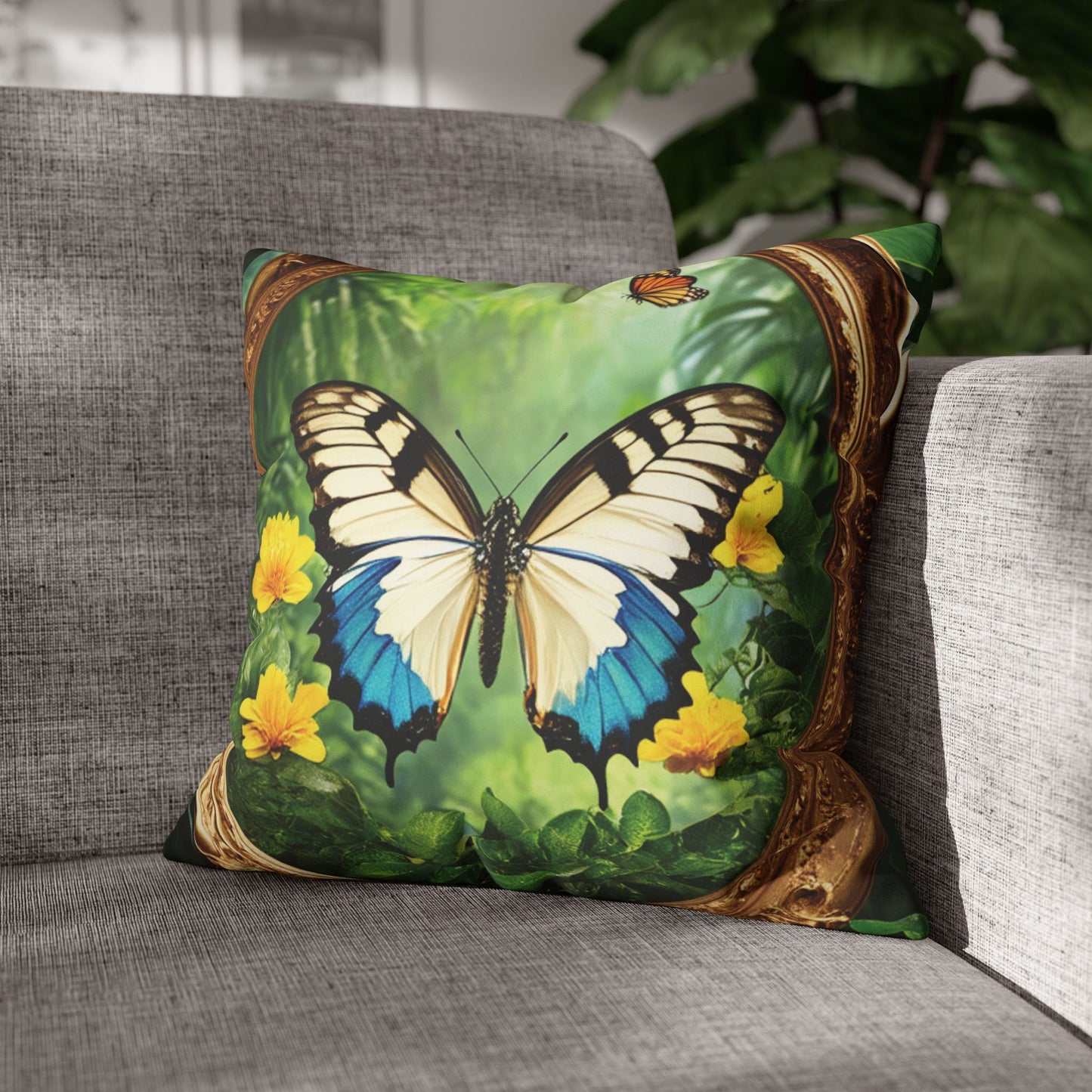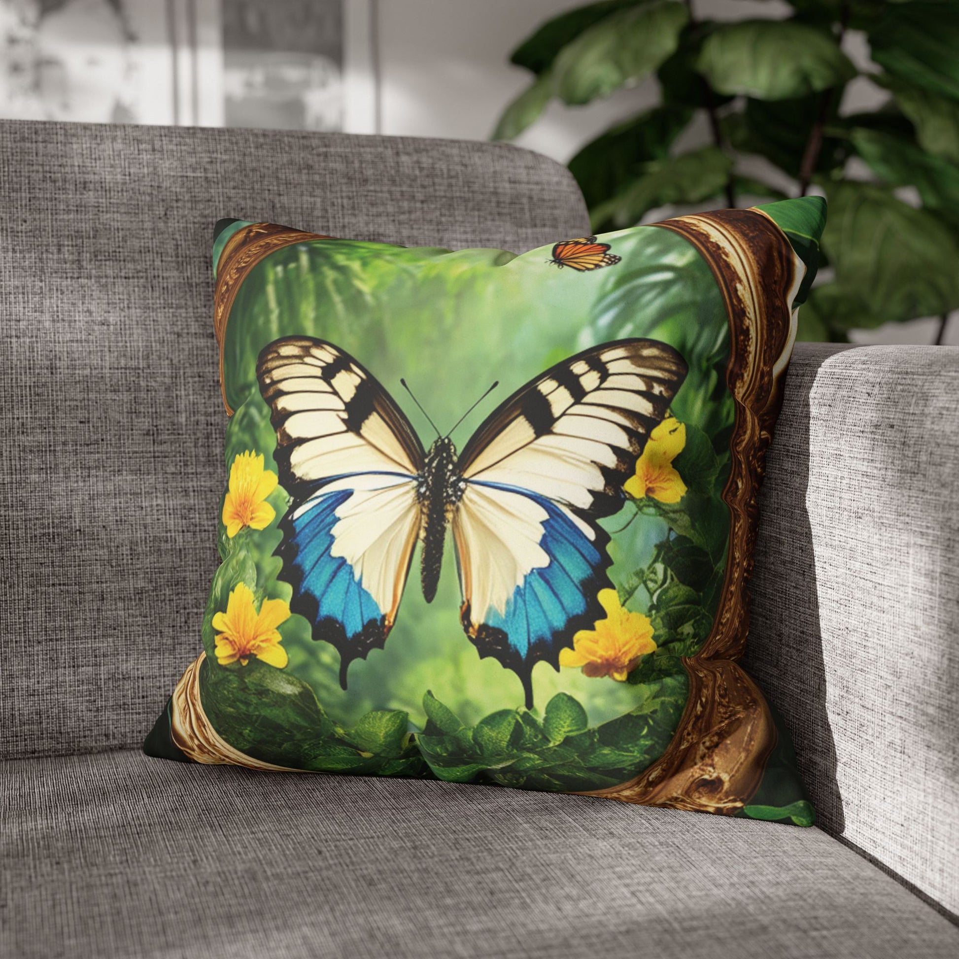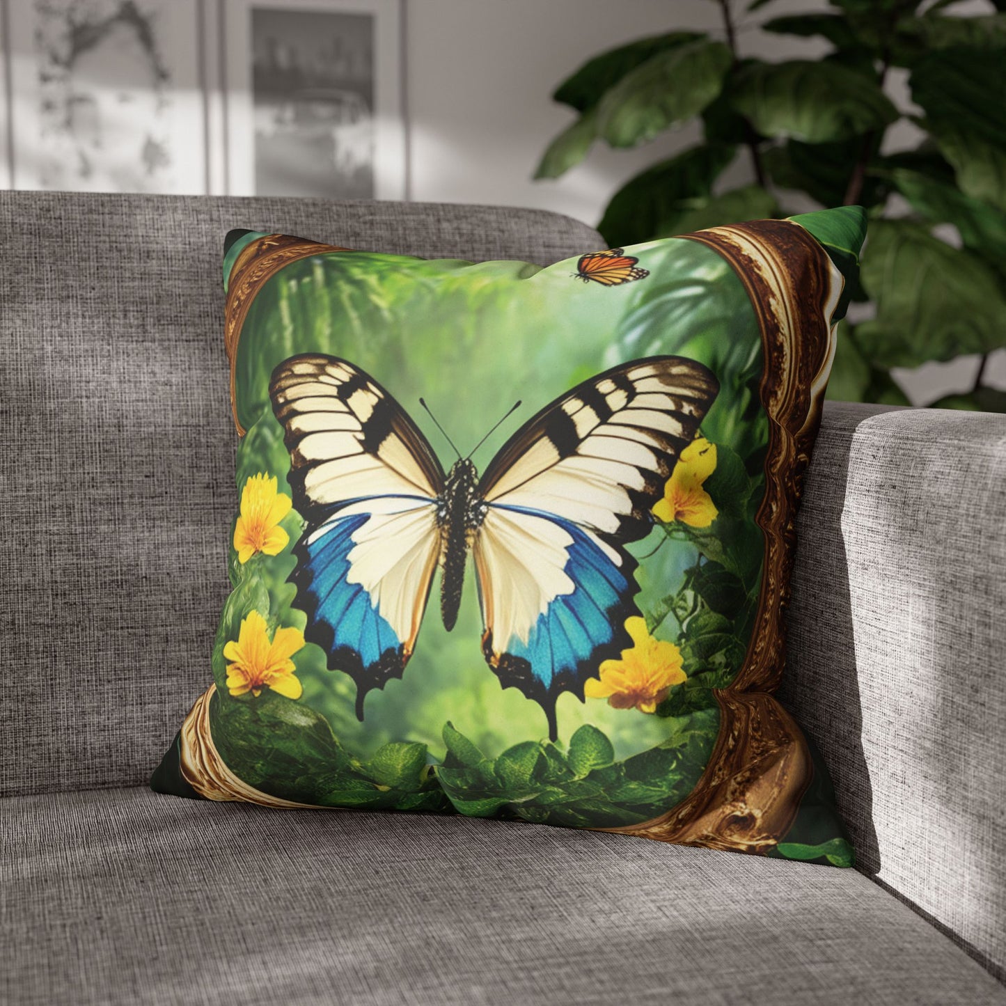Faux Suede Square Pillowcase - Framed Swallowtail Butterfly