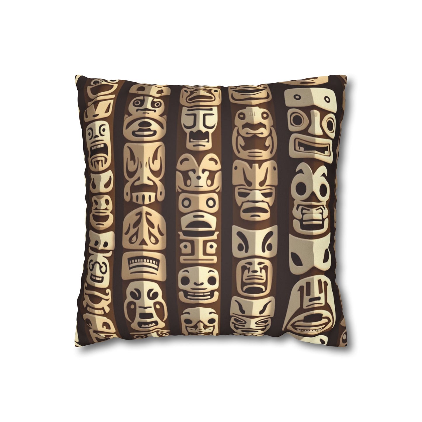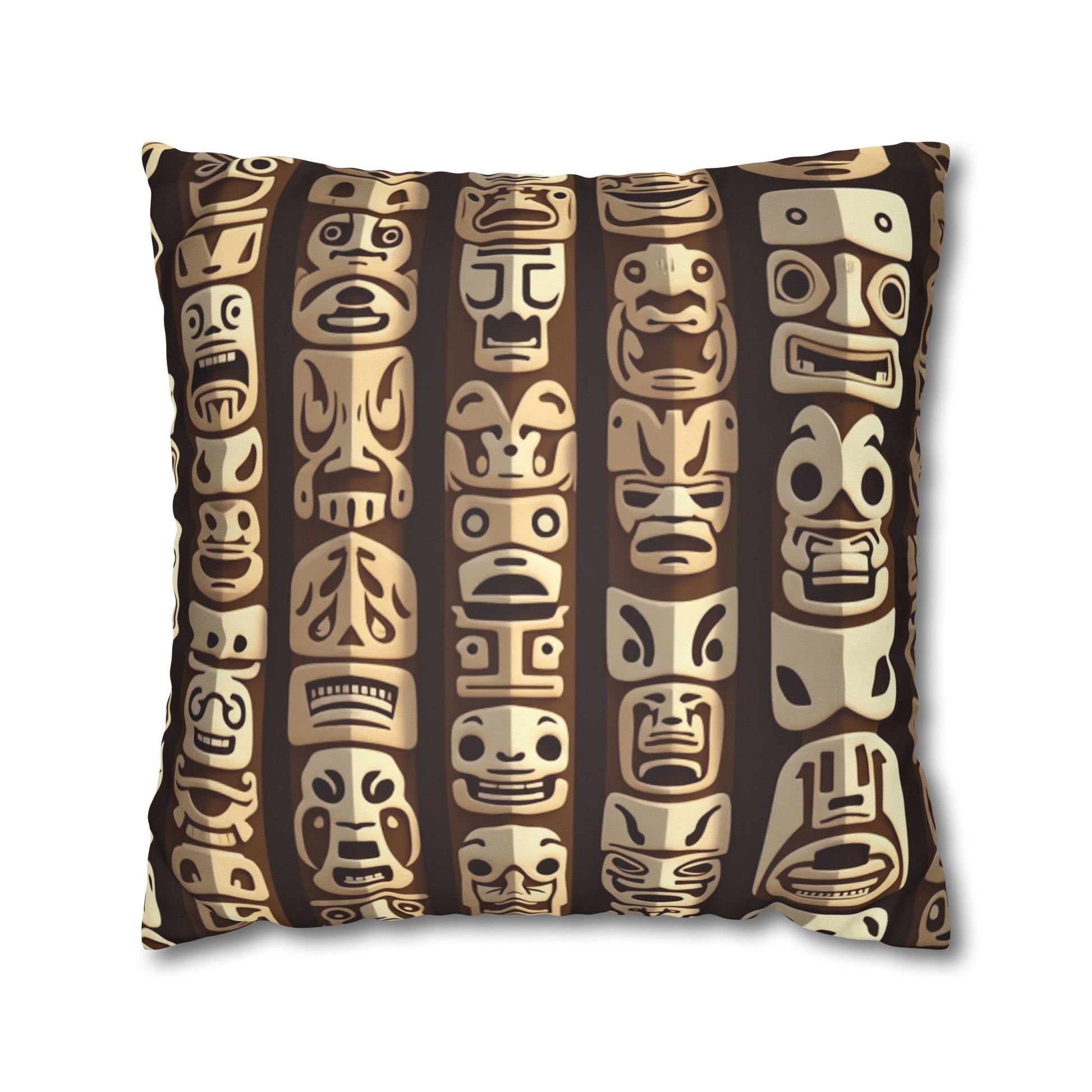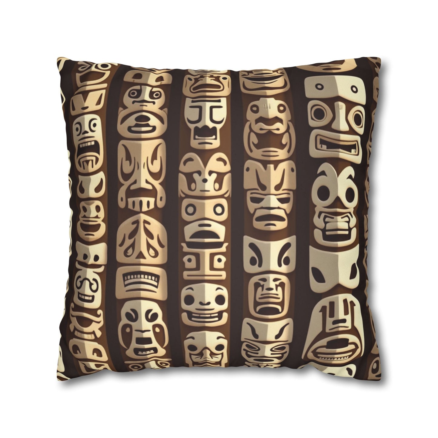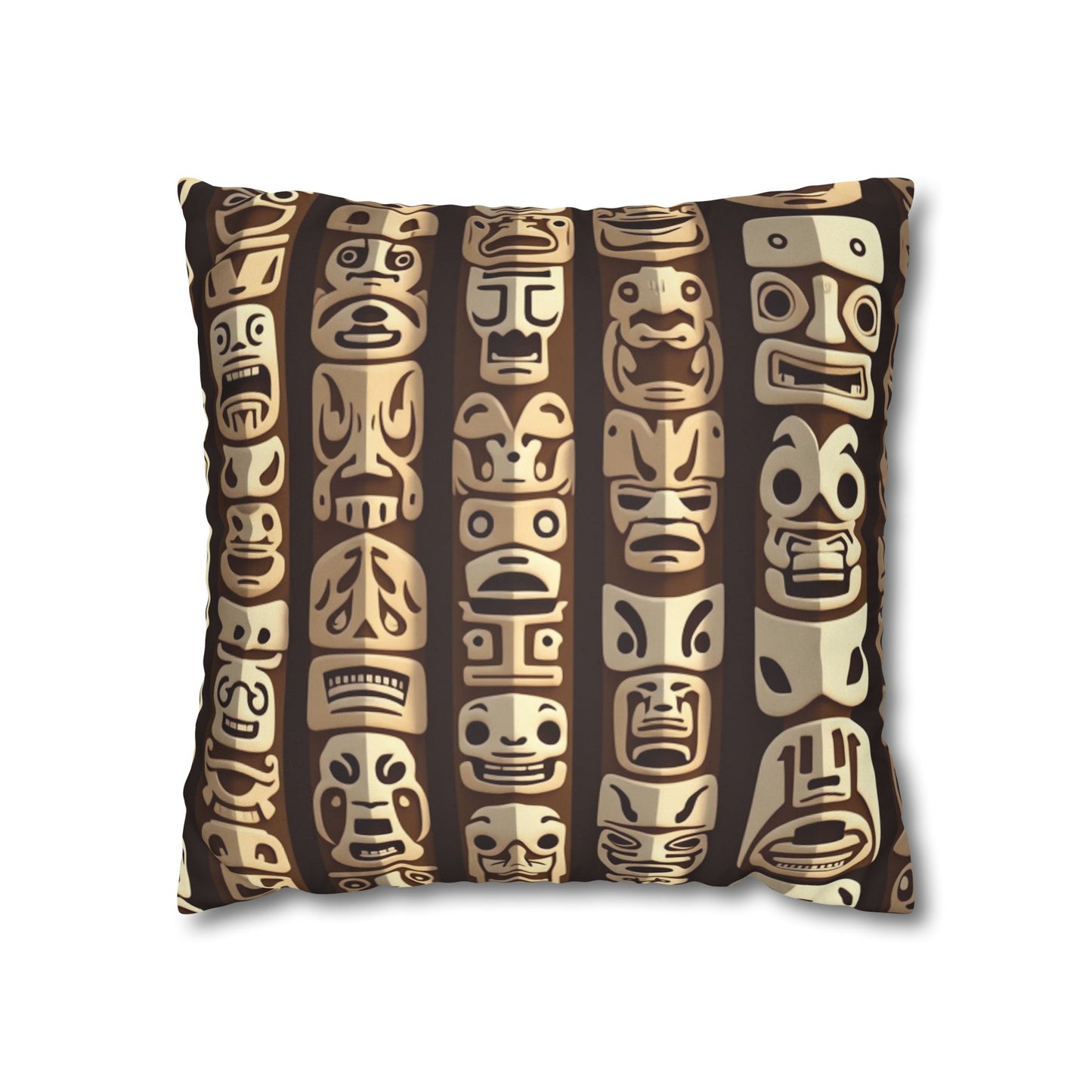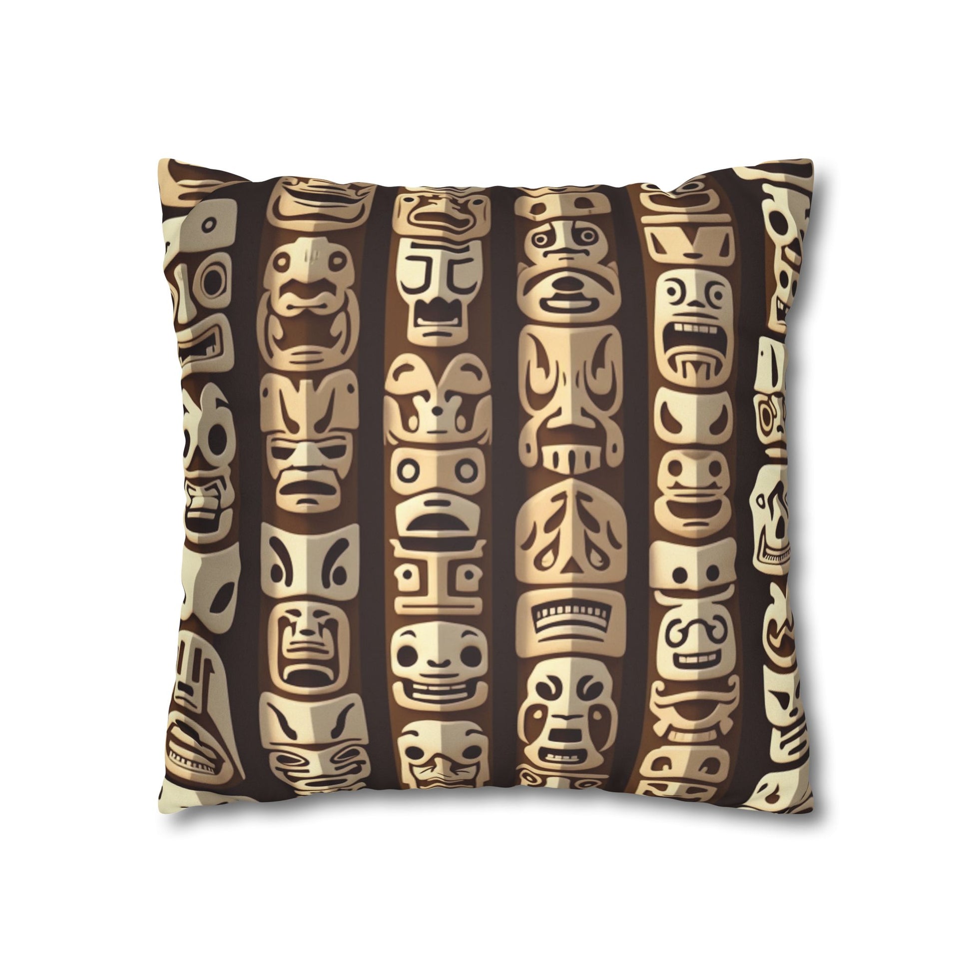 Faux Suede Square Pillowcase - Funny Tiki Totems