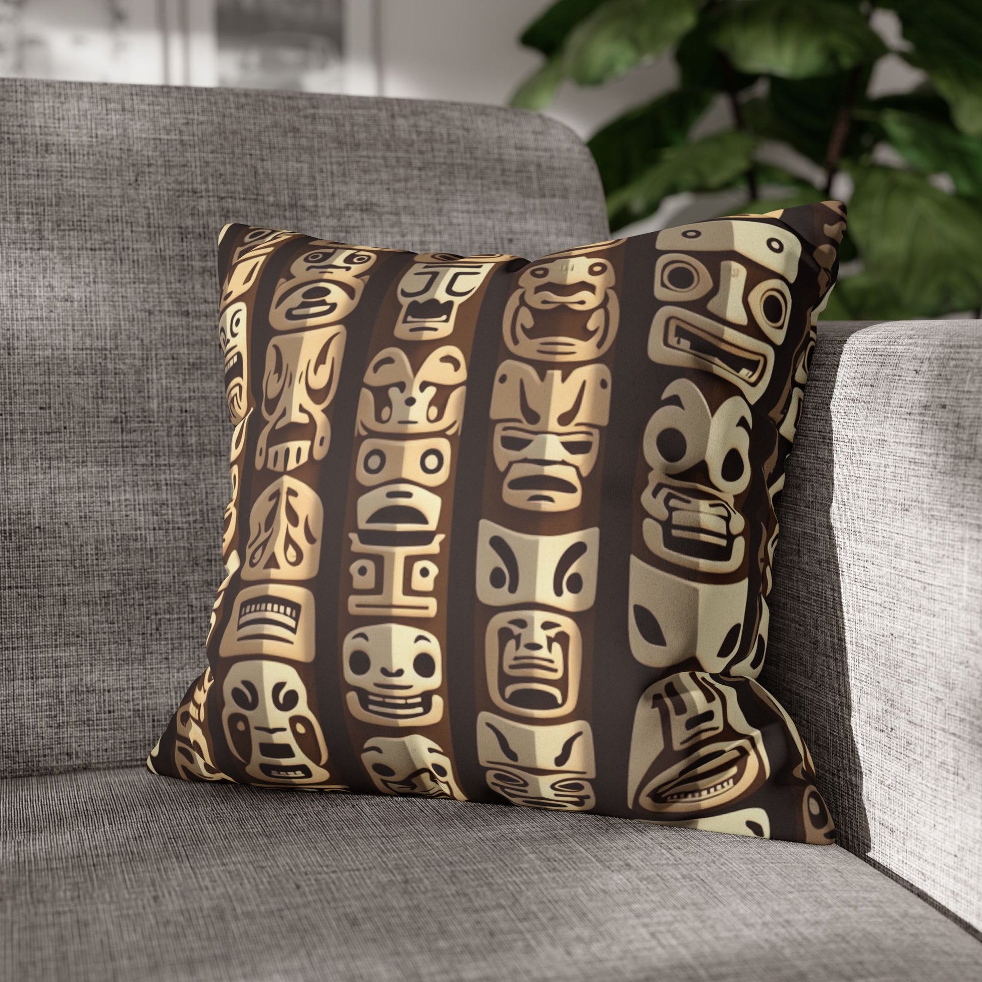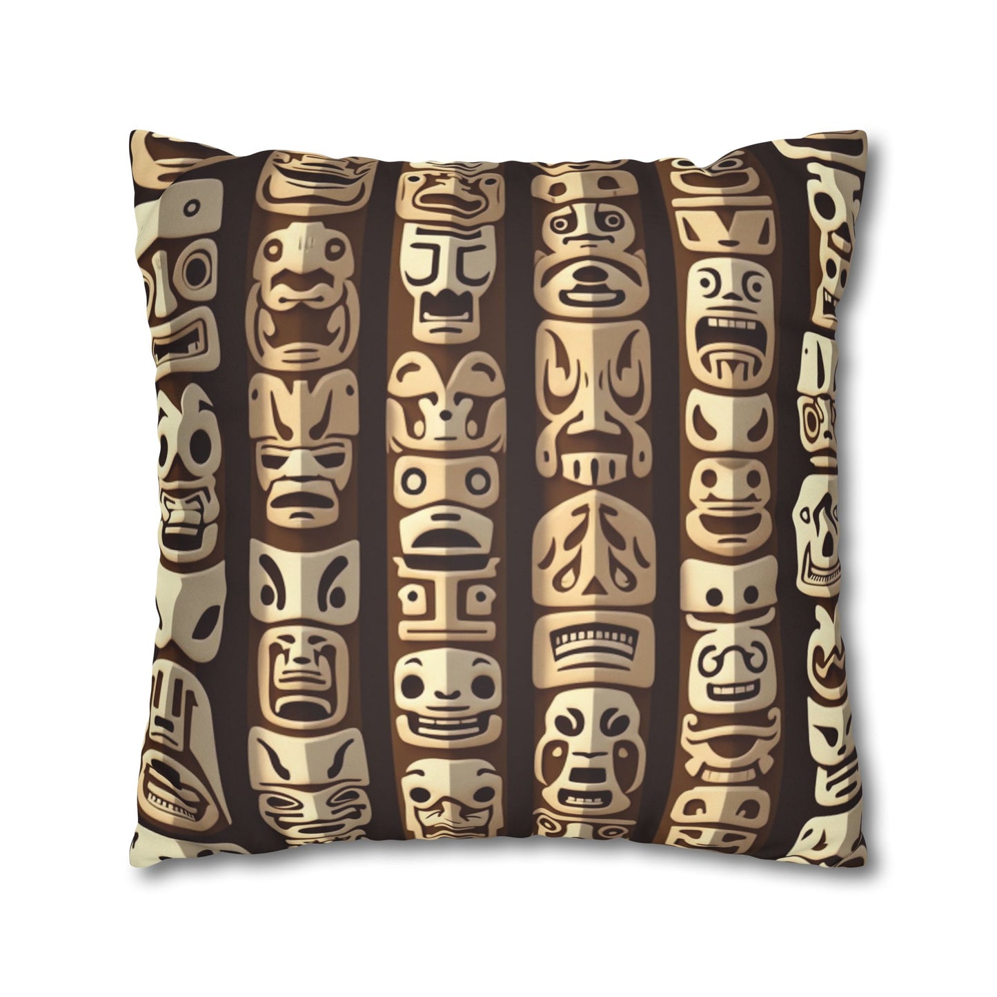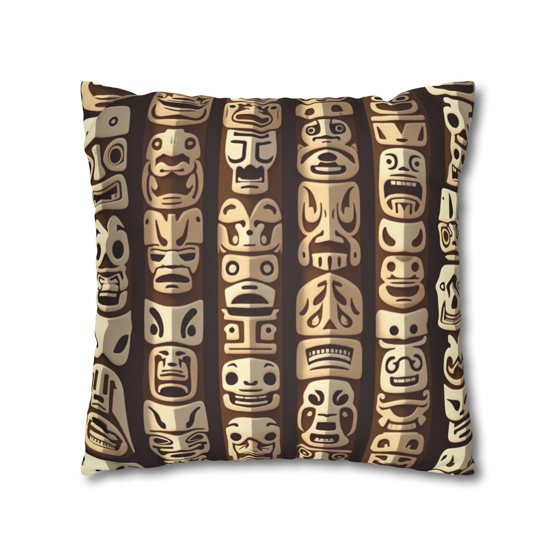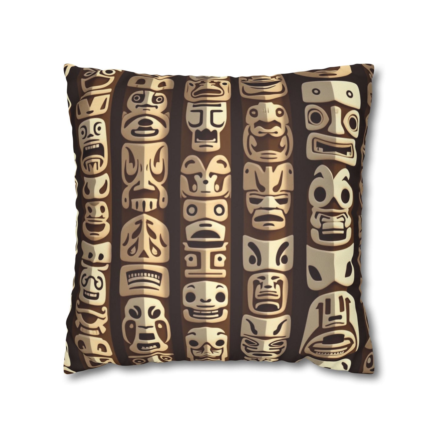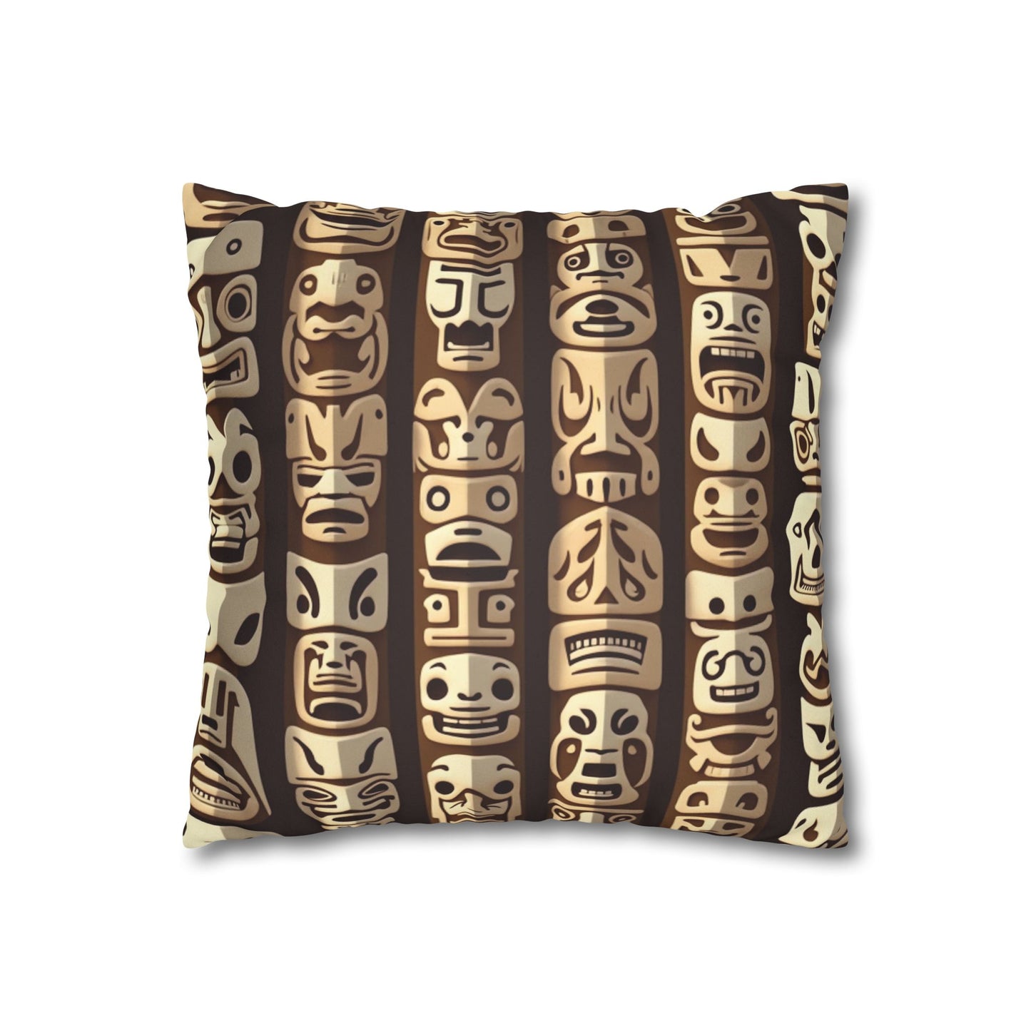 Faux Suede Square Pillowcase - Funny Tiki Totems