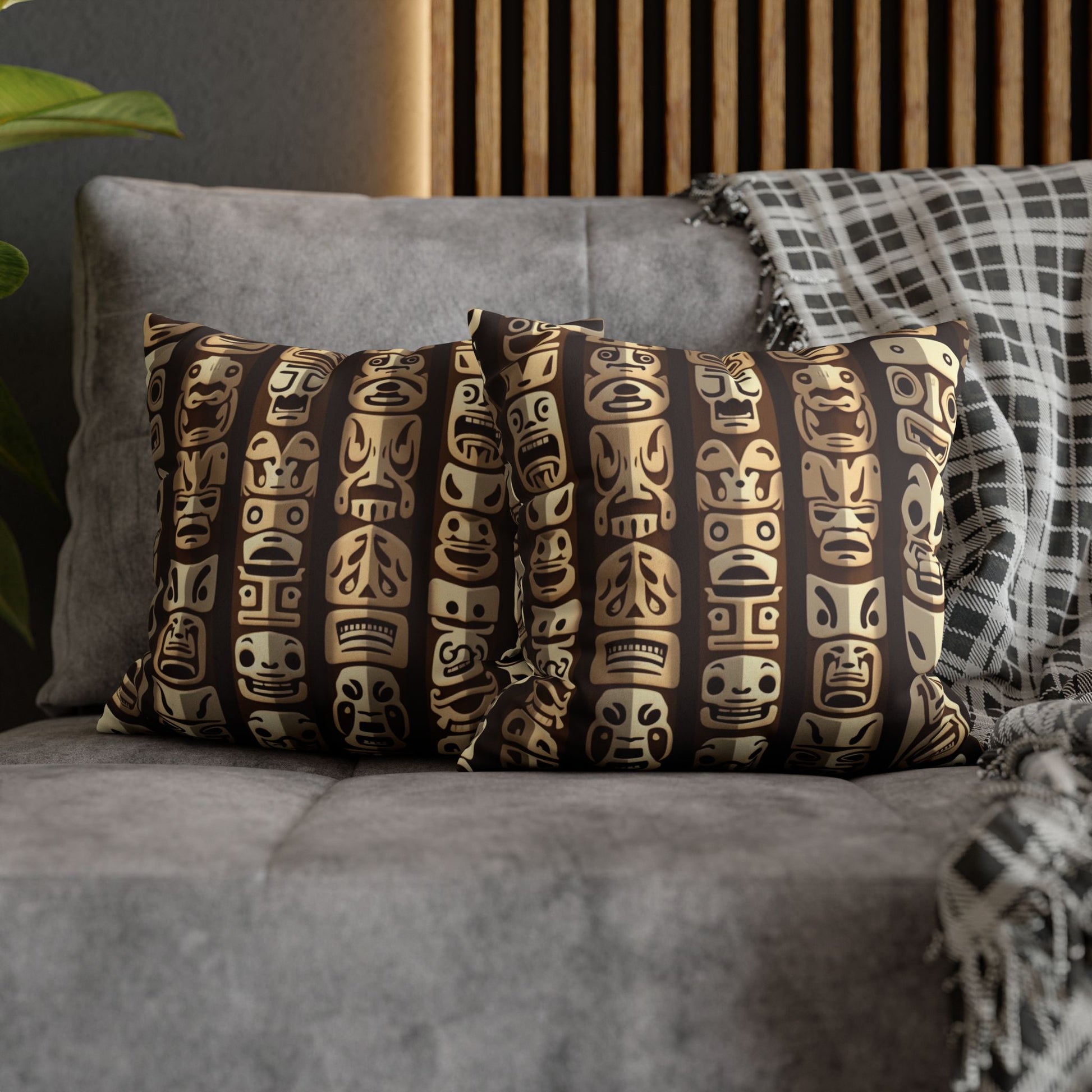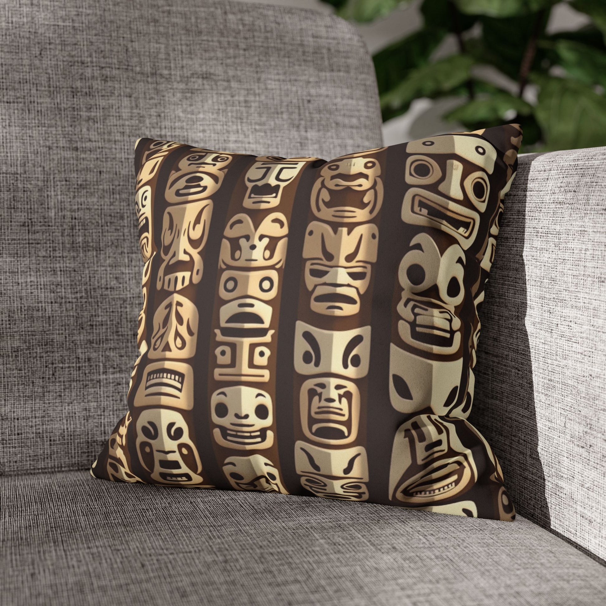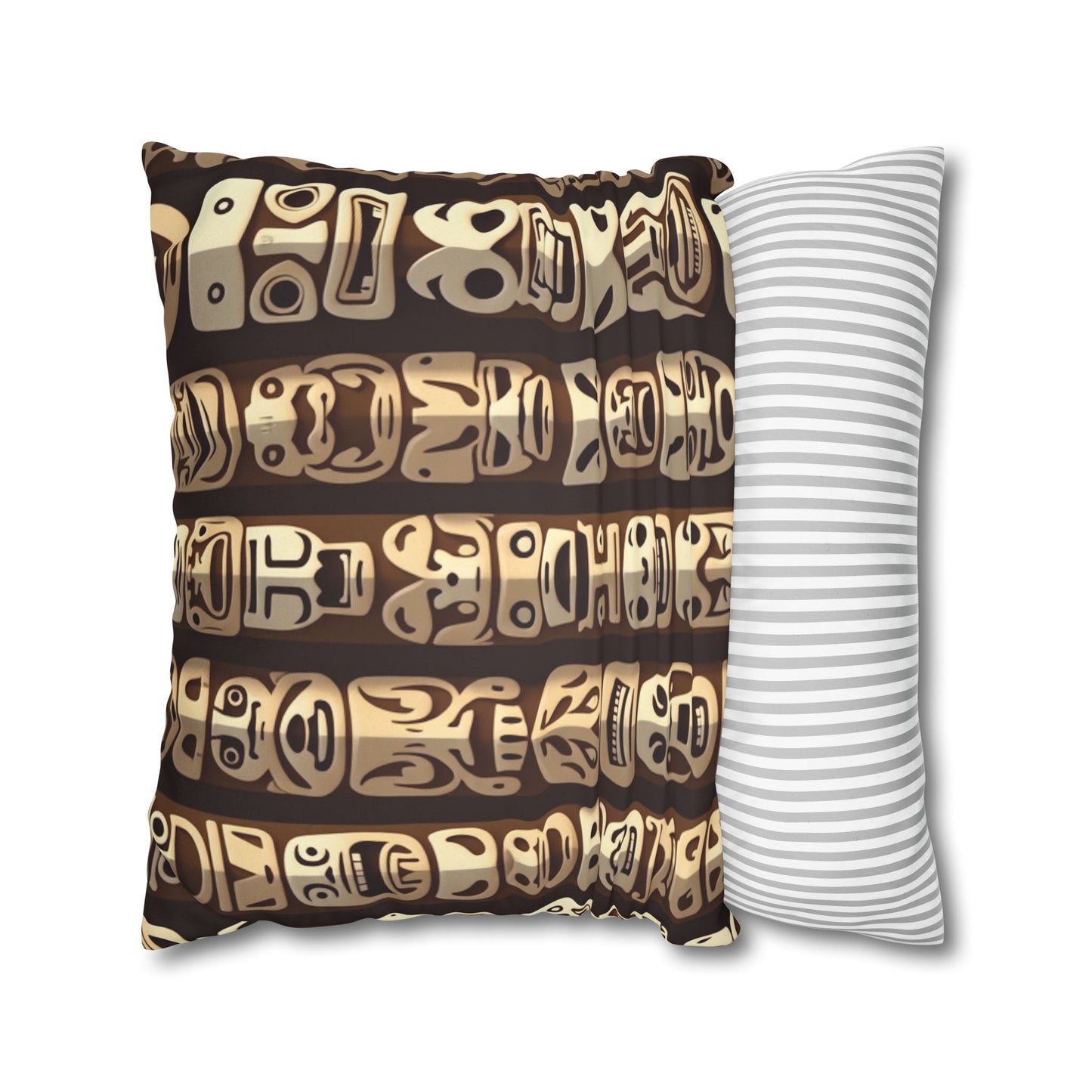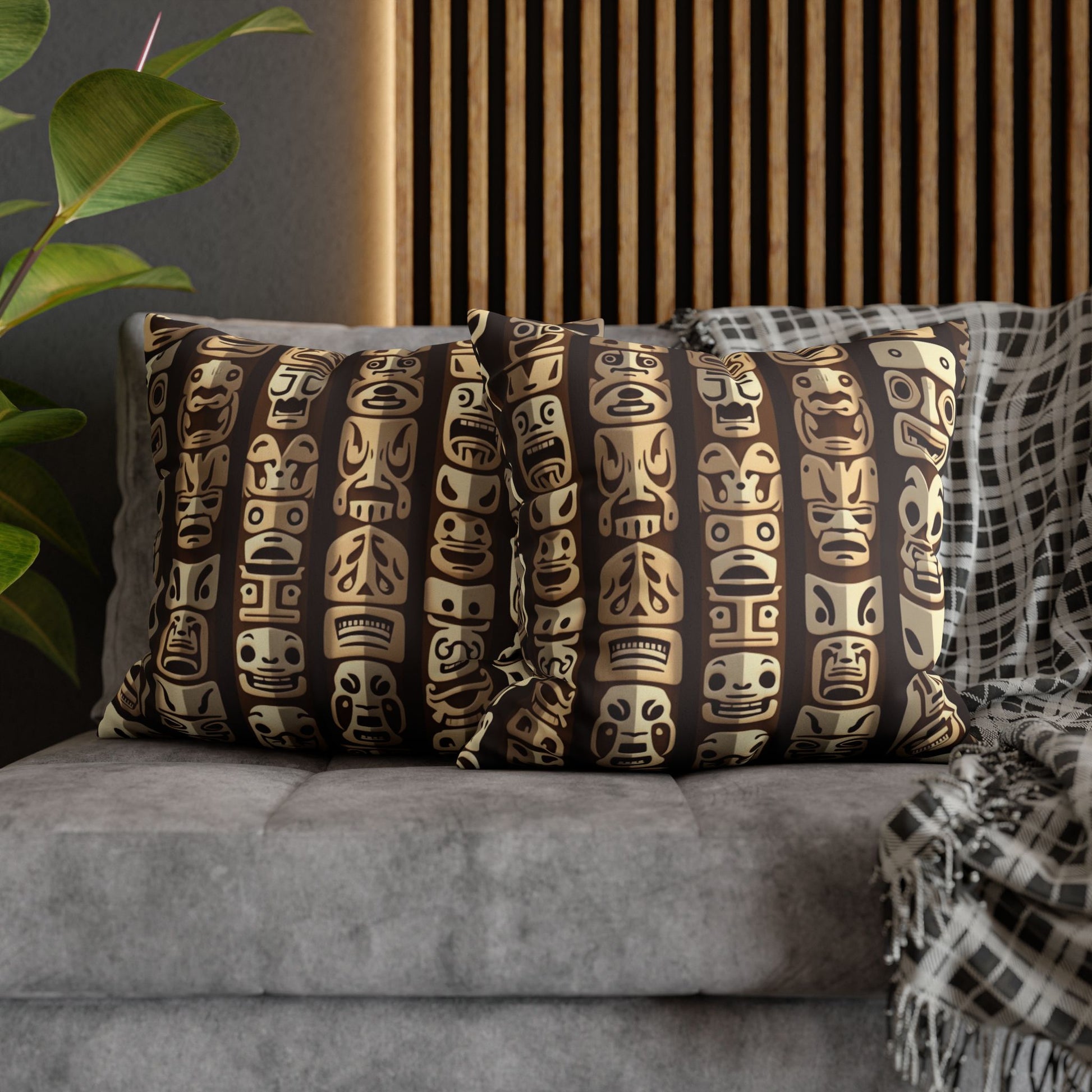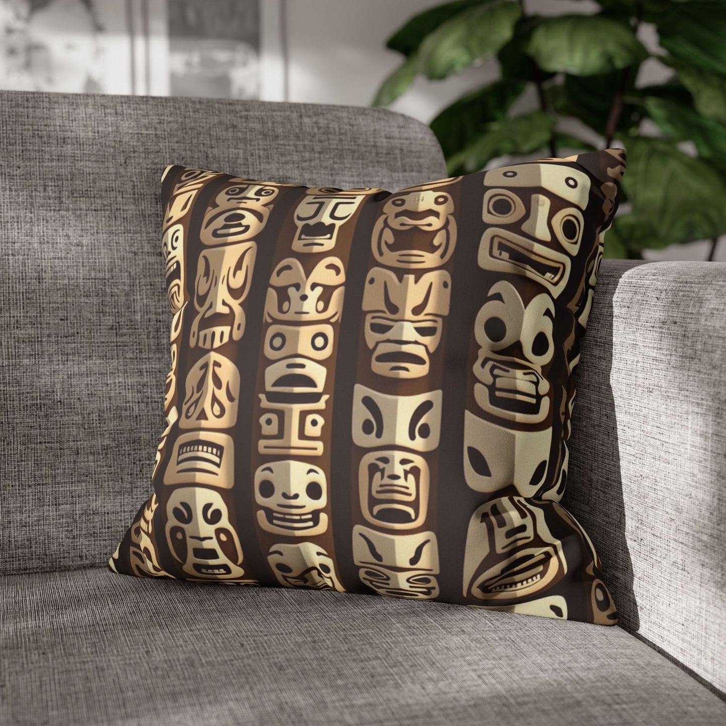 Faux Suede Square Pillowcase - Funny Tiki Totems