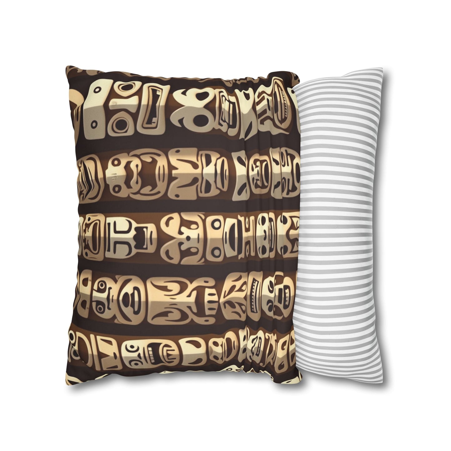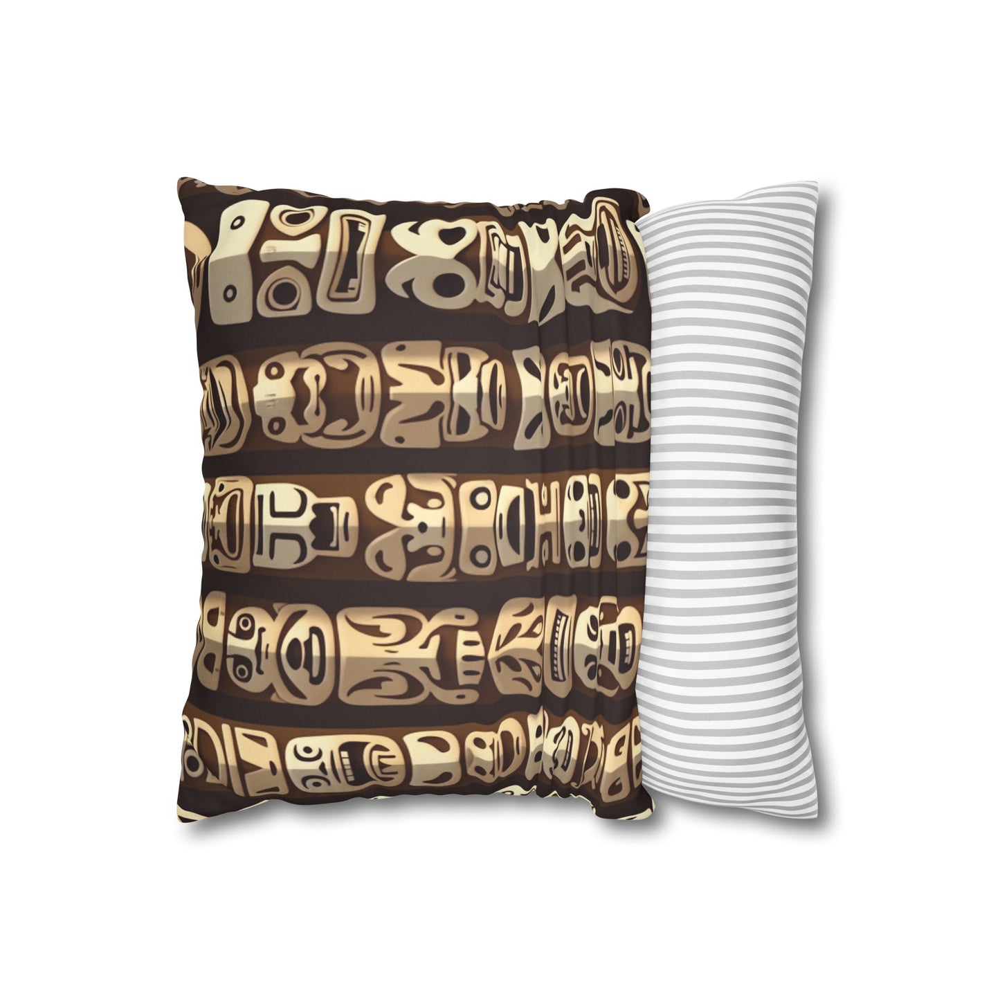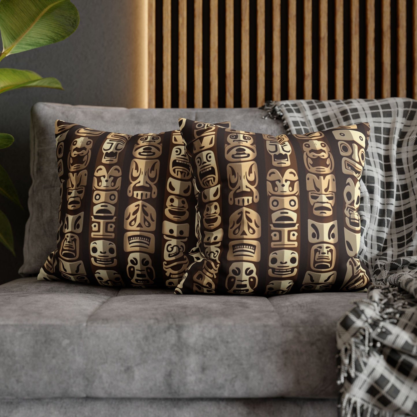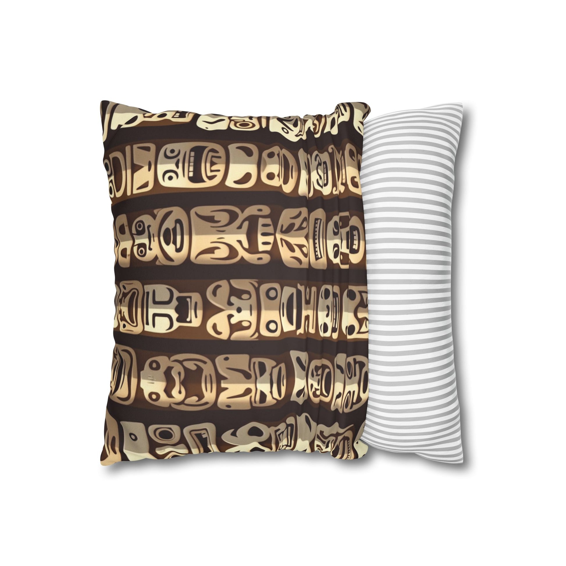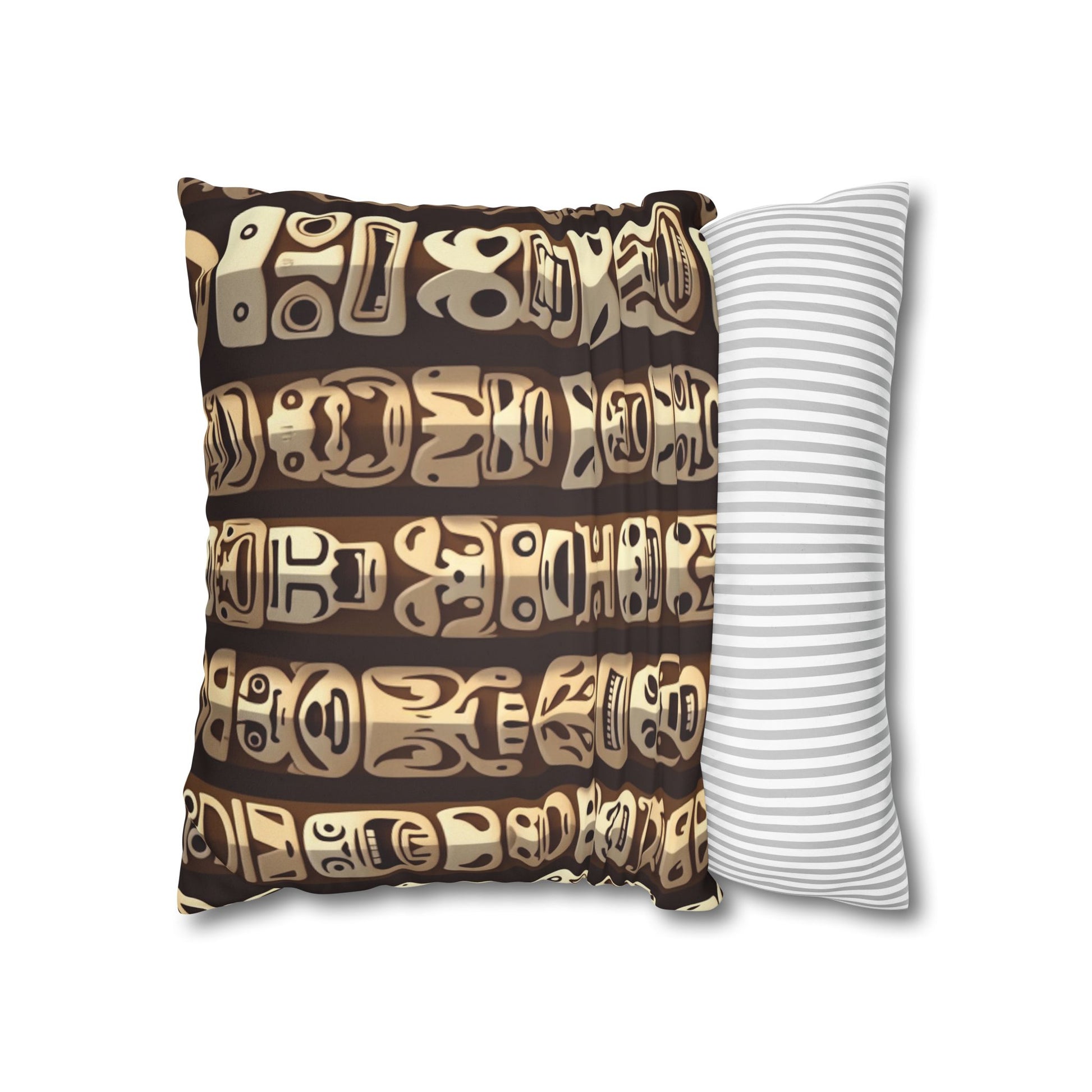 Faux Suede Square Pillowcase - Funny Tiki Totems