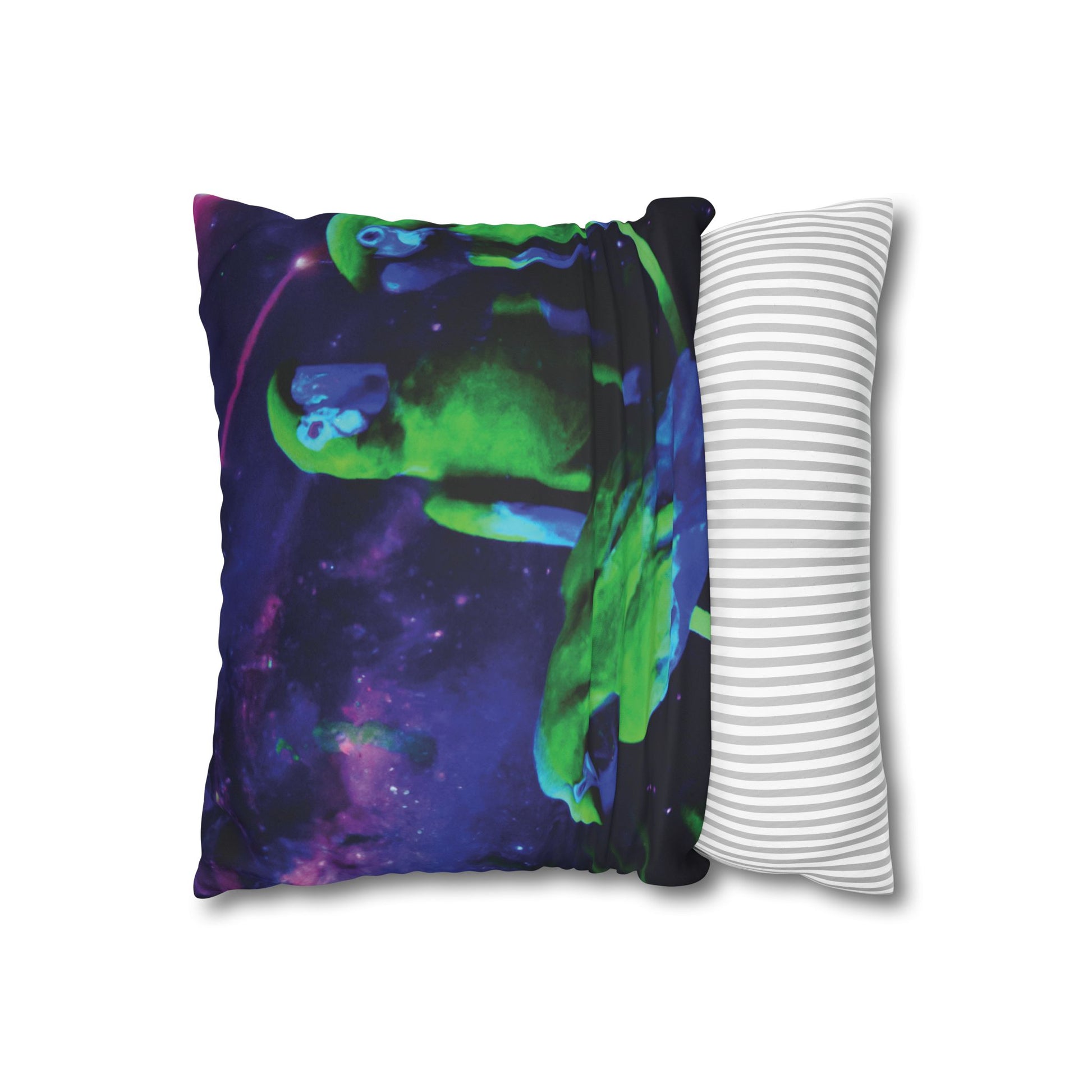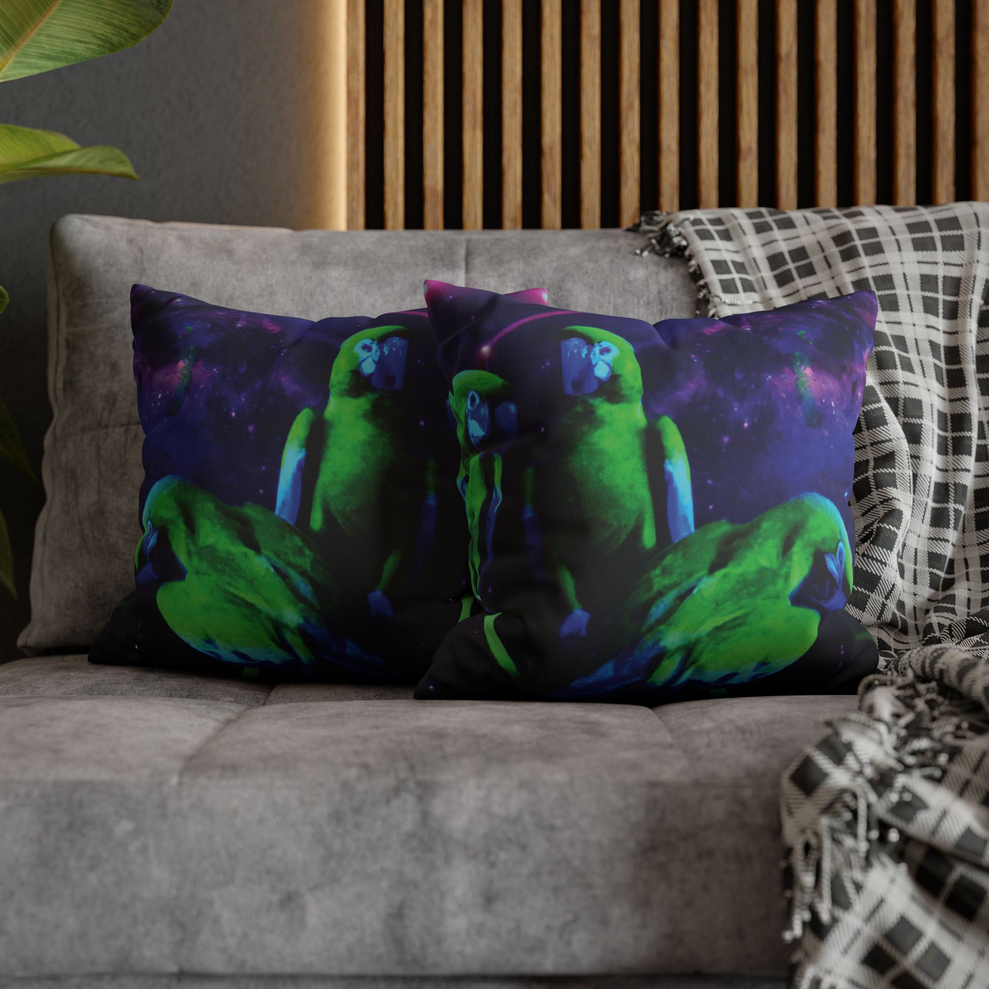Faux Suede Square Pillowcase - Neon Parrots at Night