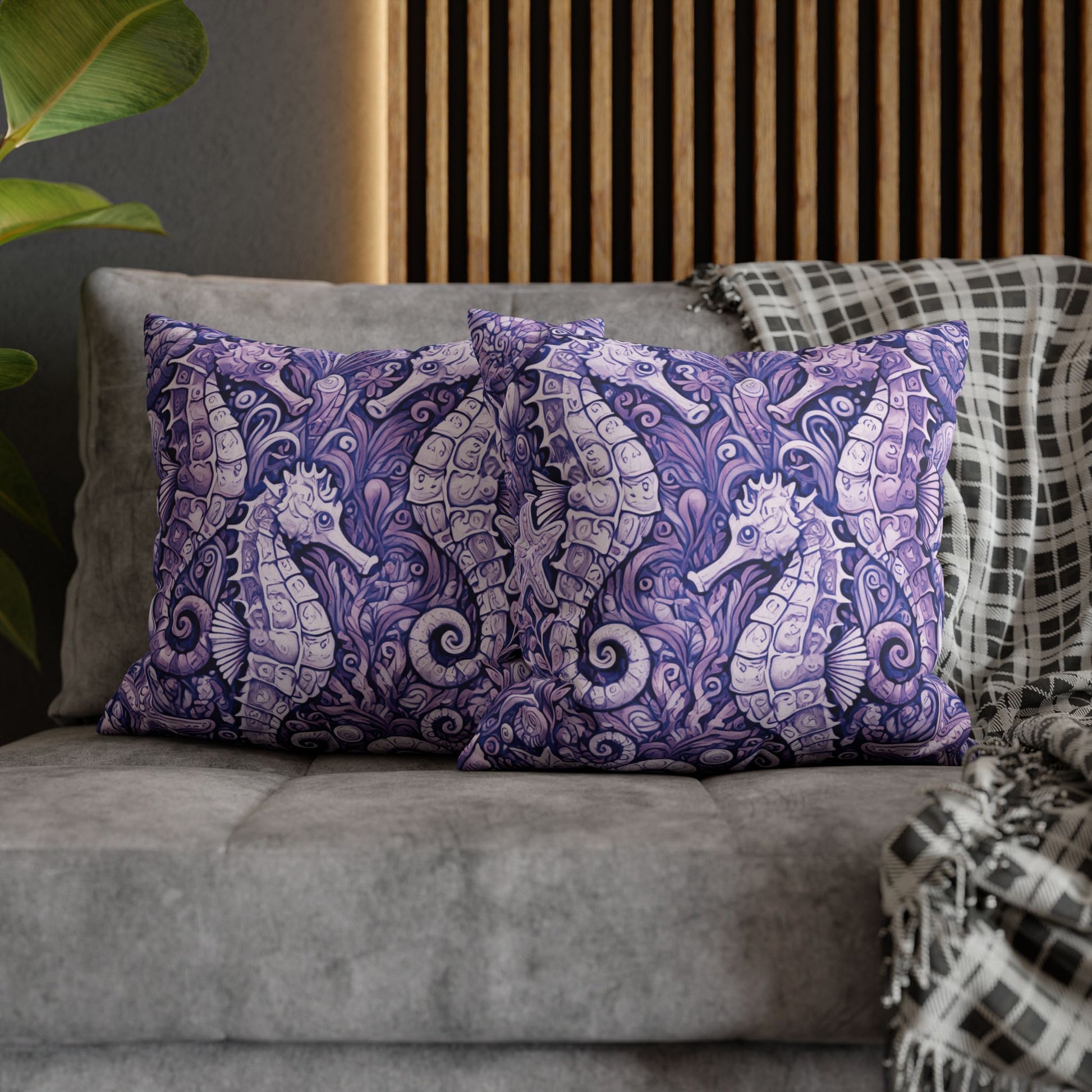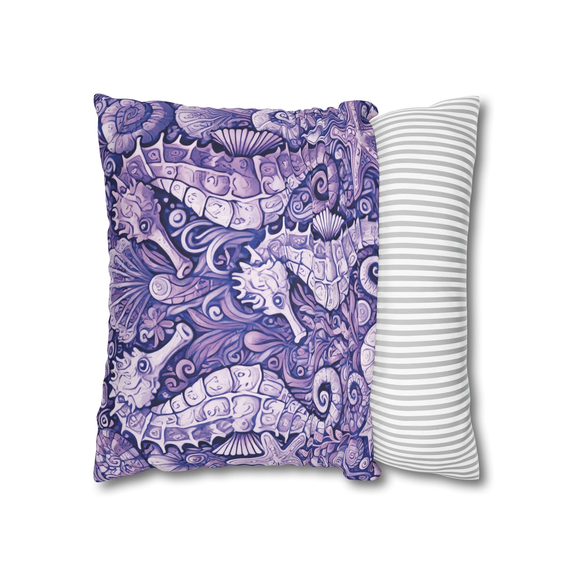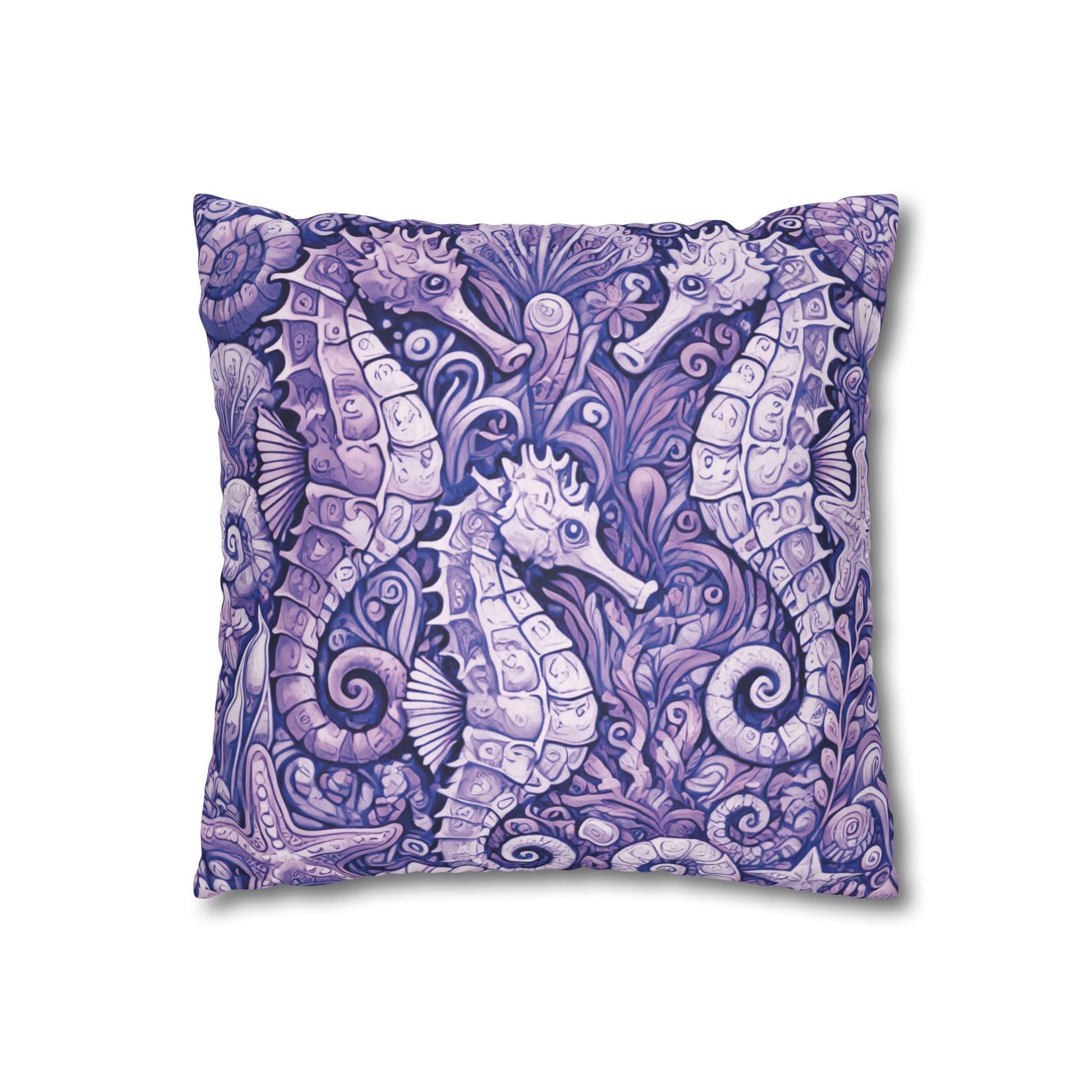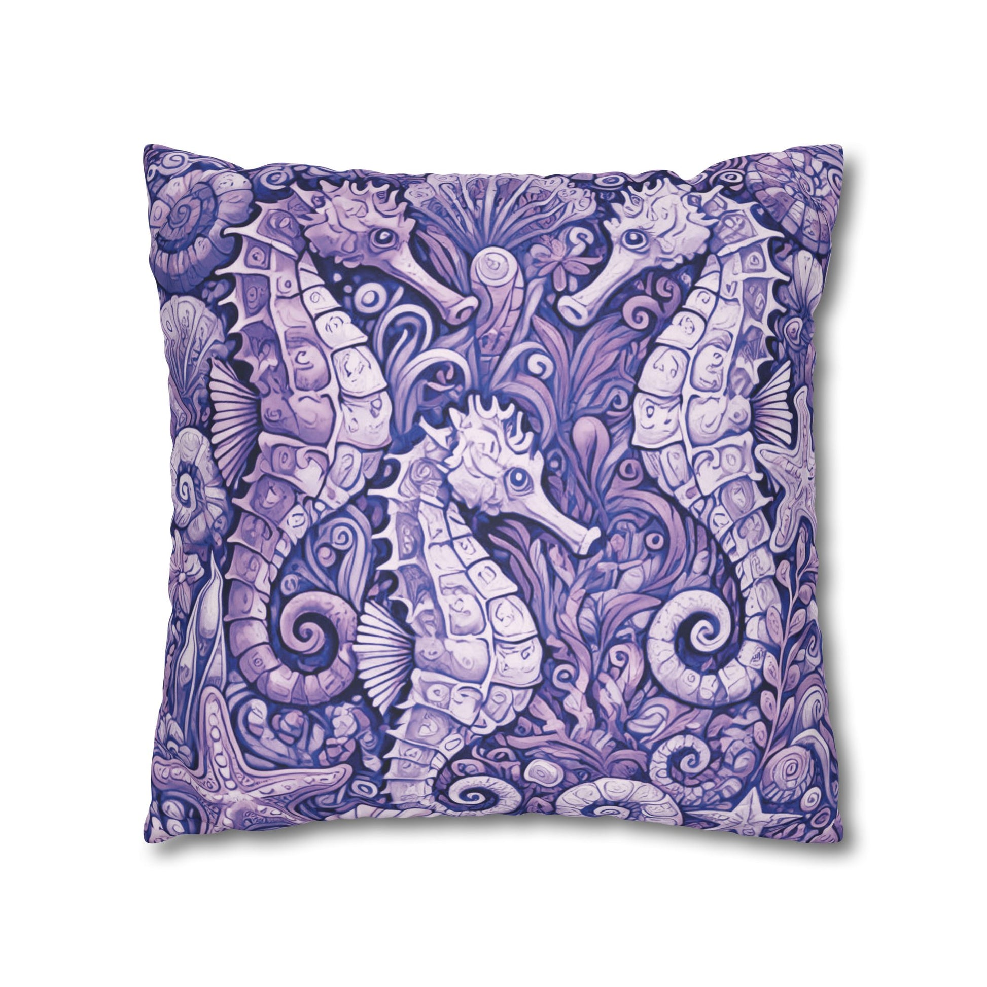 Faux Suede Square Pillowcase - Seahorse Trio, Amethyst