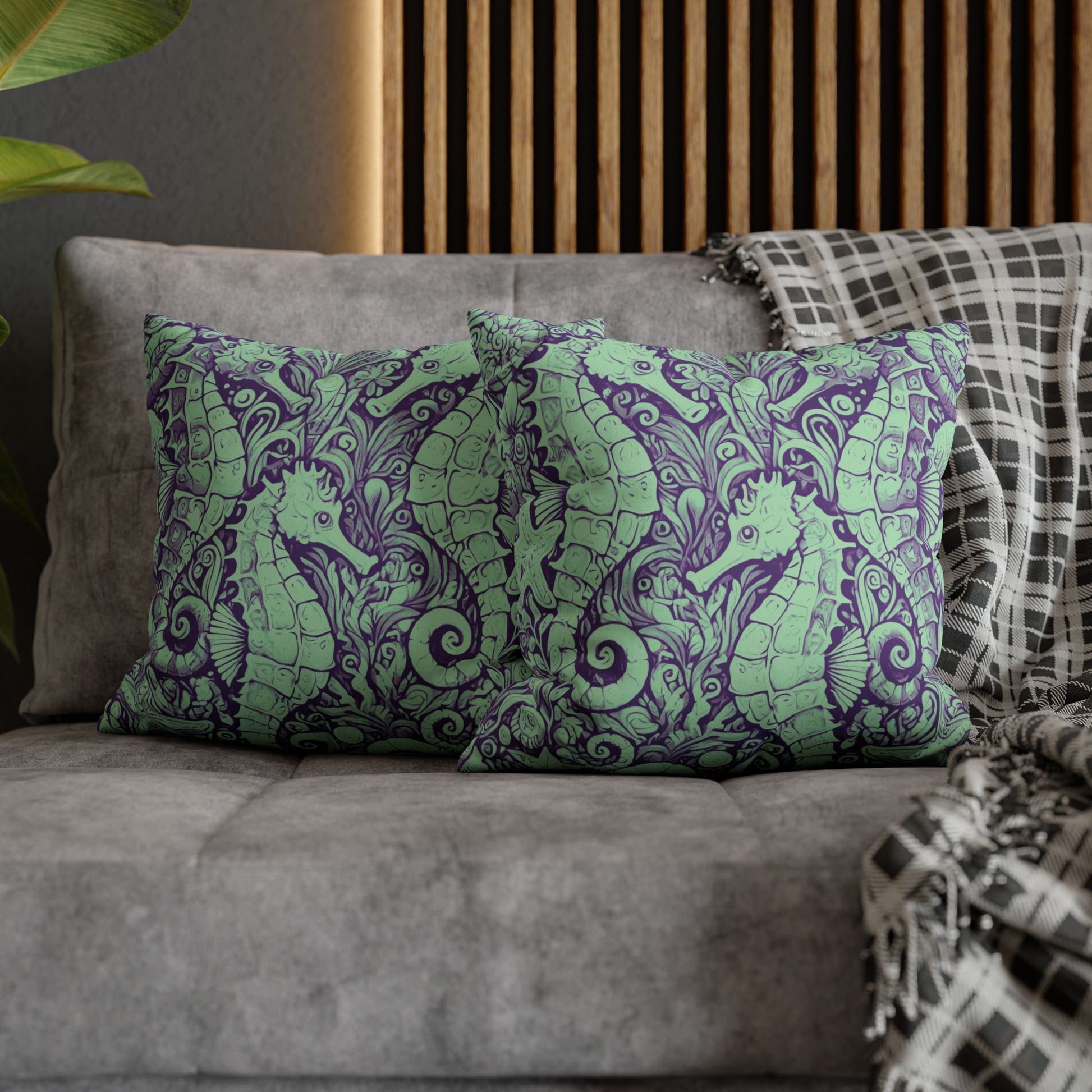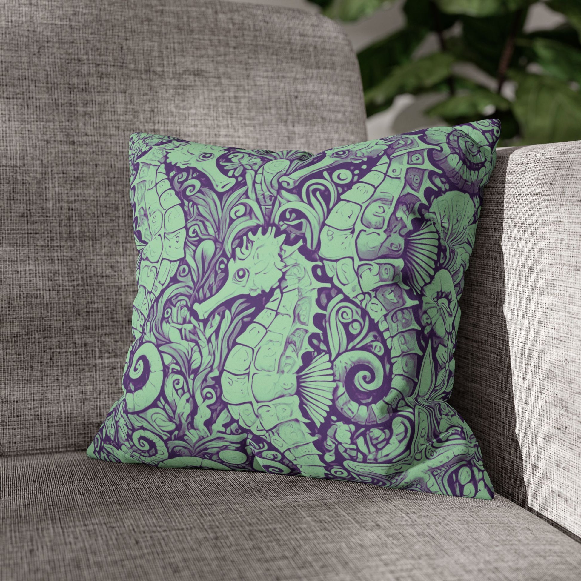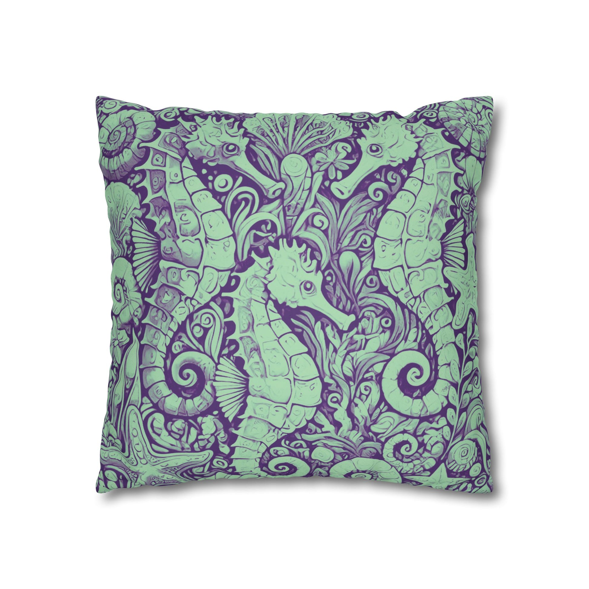 Faux Suede Square Pillowcase - Seahorse Trio, Minty