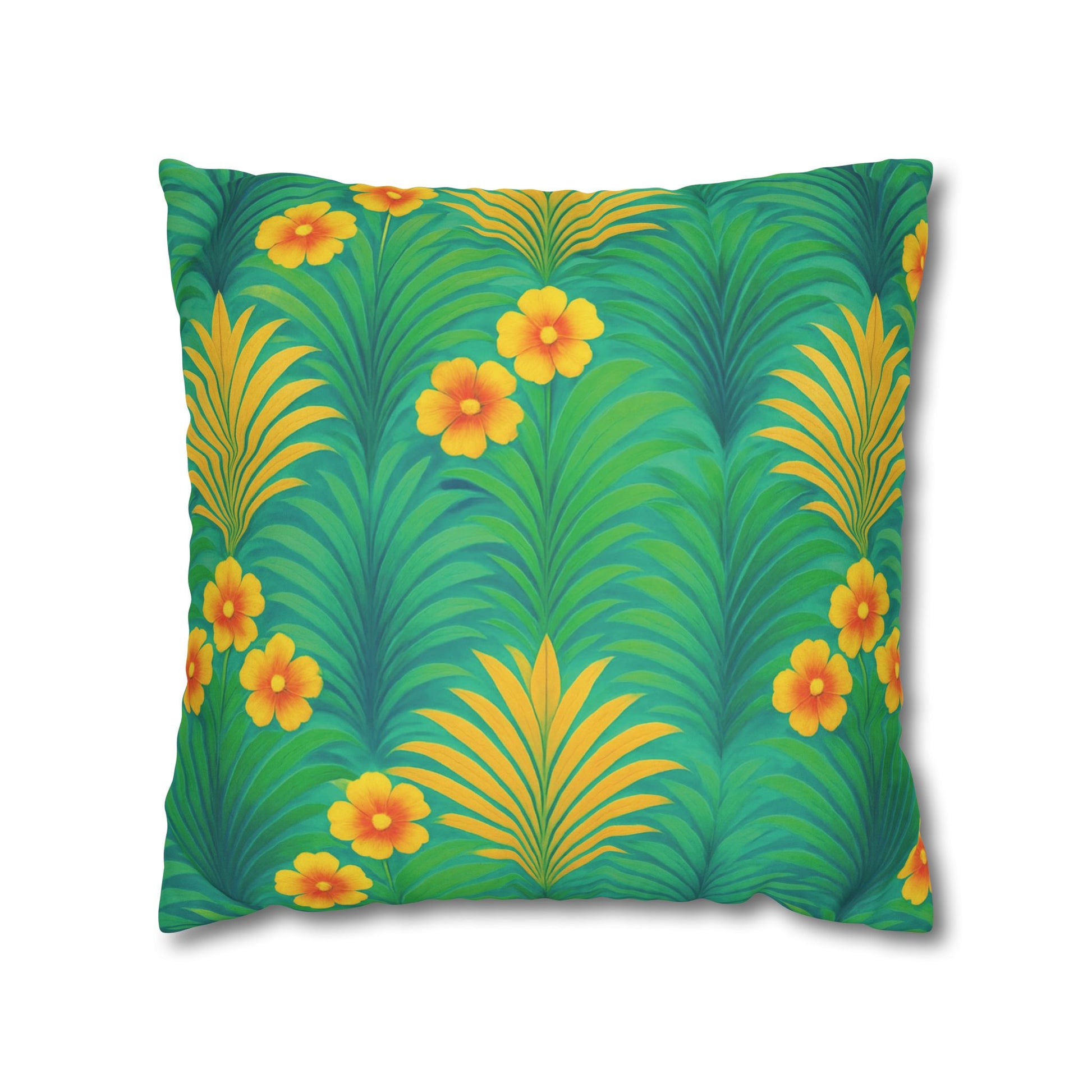 Faux Suede Square Pillowcase - Sunrise Palms/Green