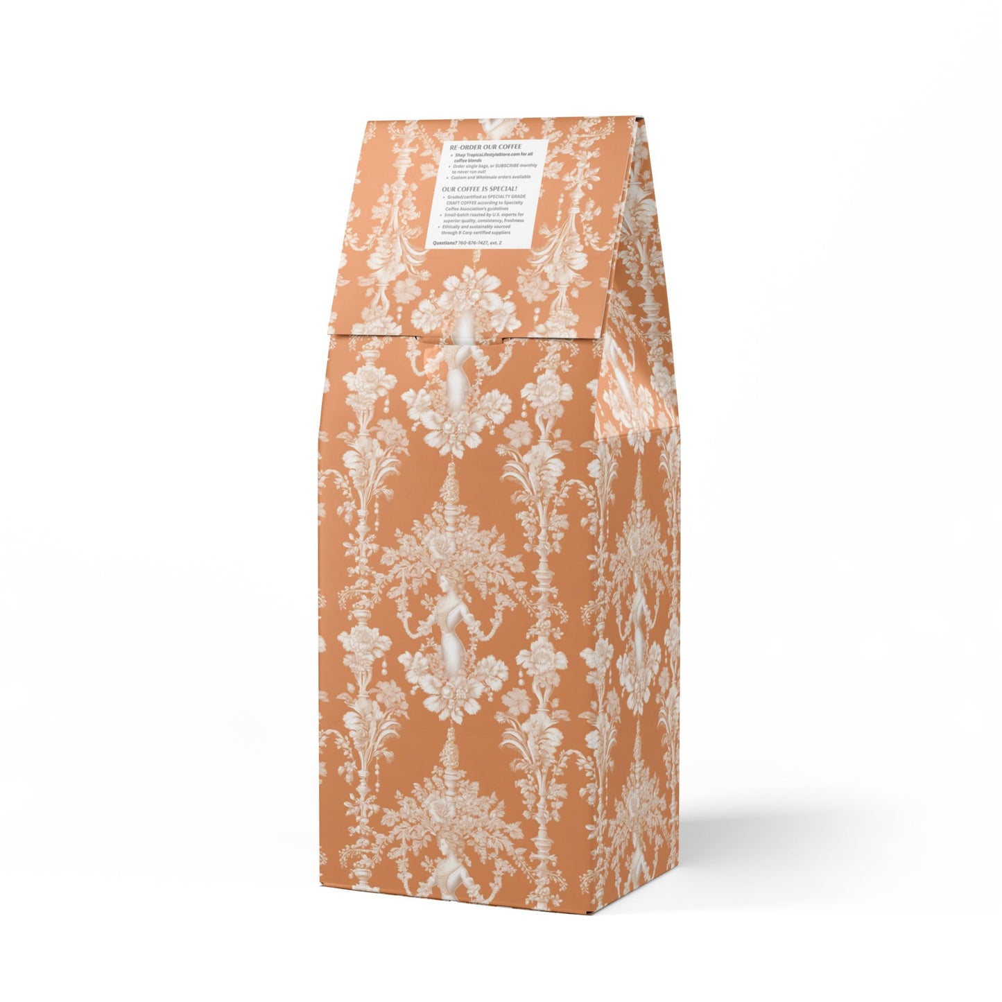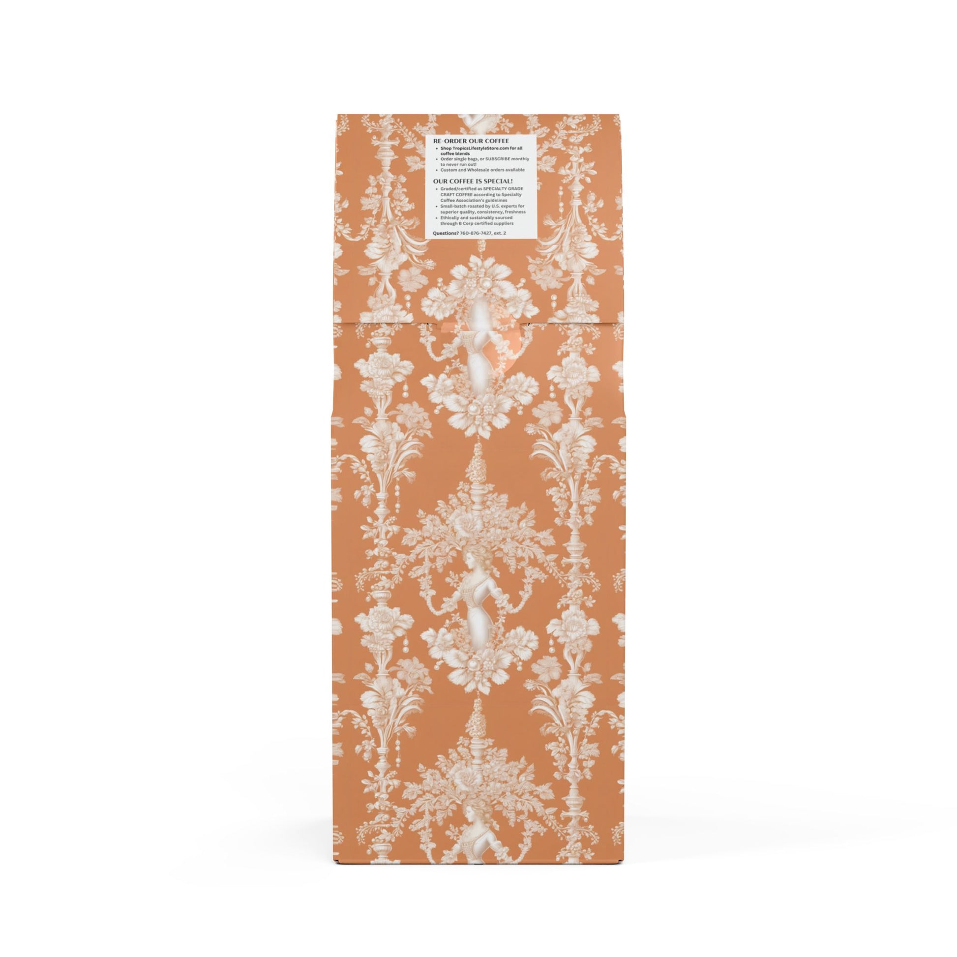 Cocoa Palms Blend™ (Medium-Dark Roast) Specialty Grade Craft Coffee / Pearl Lady Toile, Melon