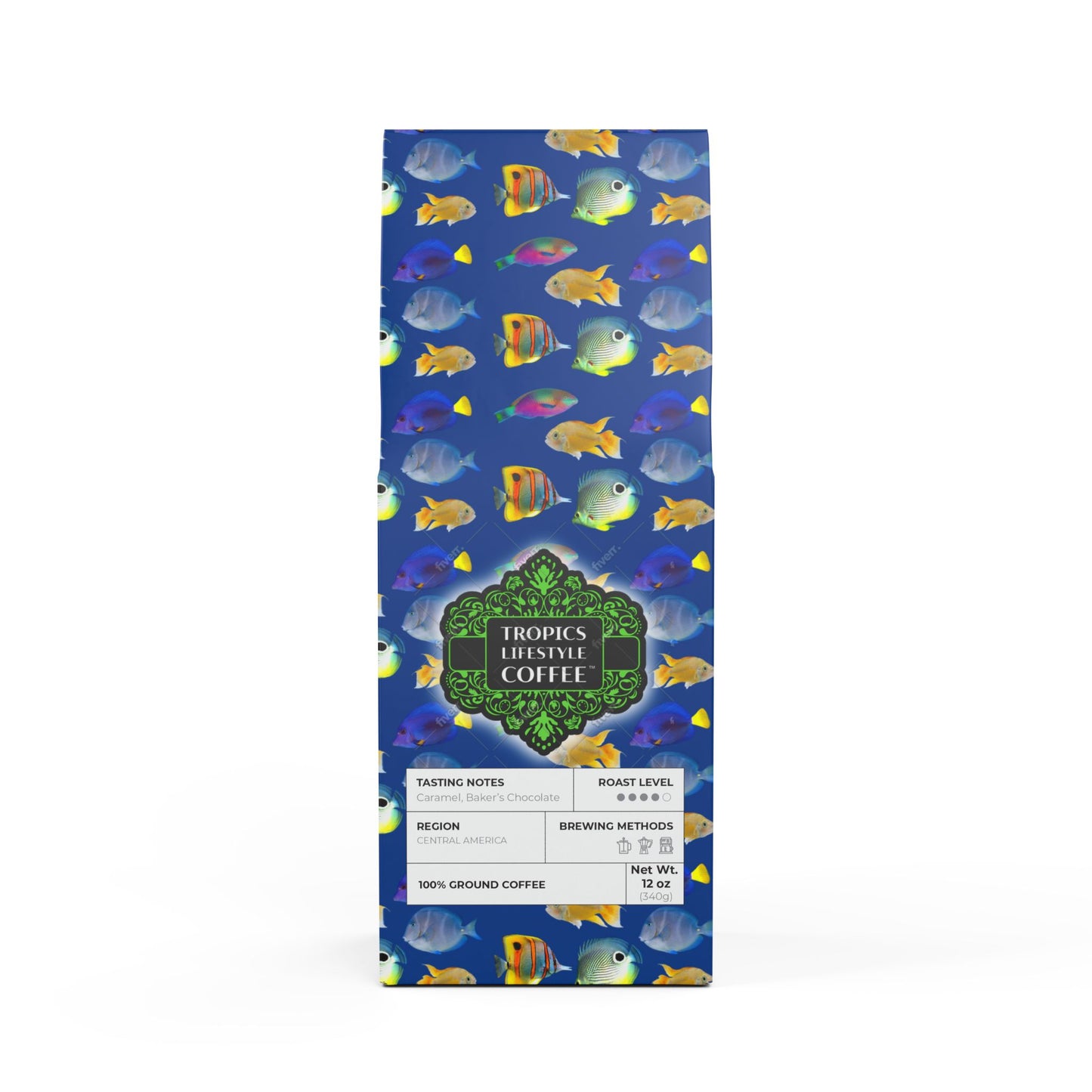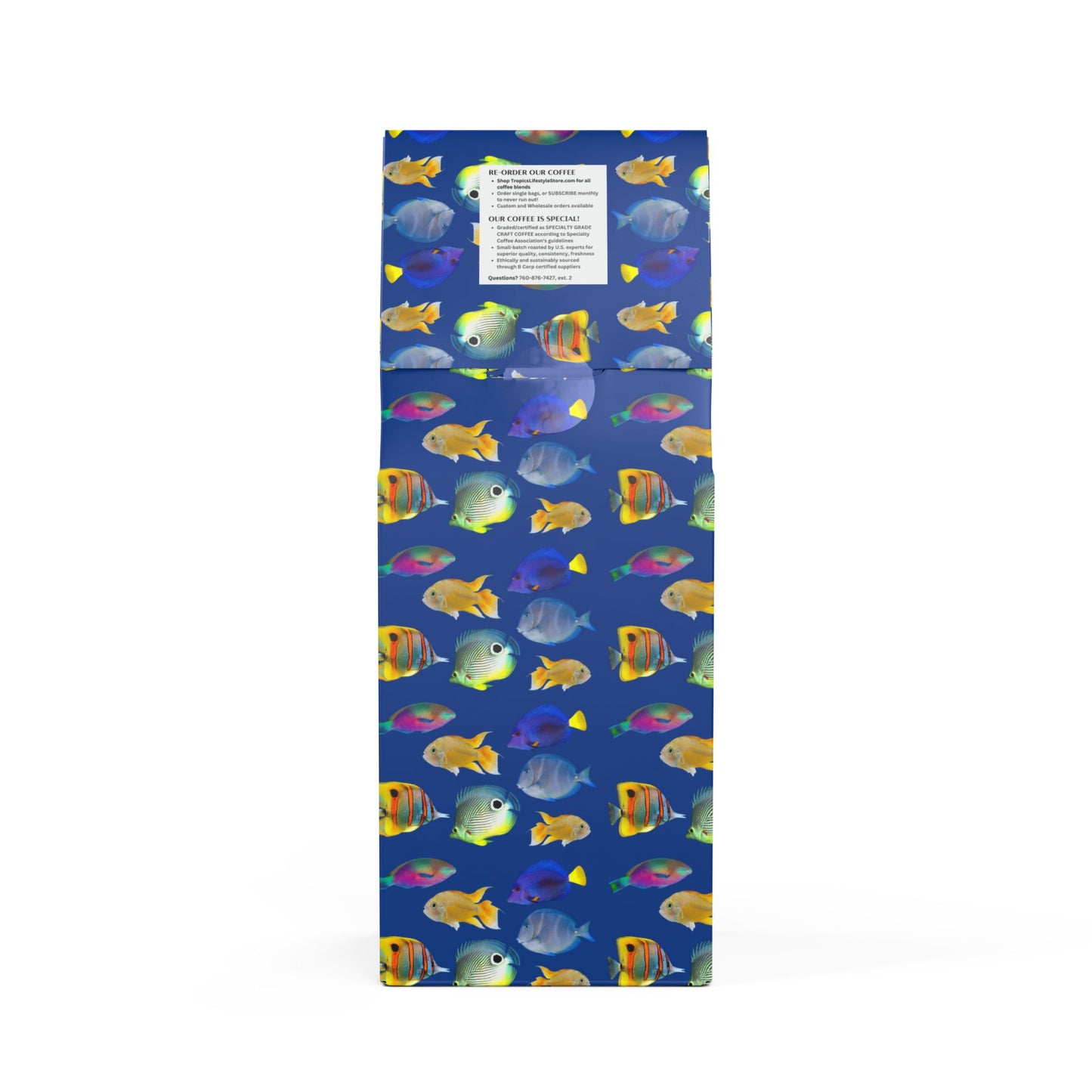 Cocoa Palms™ Blend (Medium-Dark Roast) Specialty Grade Craft Coffee / School of Fish, Dk Blue