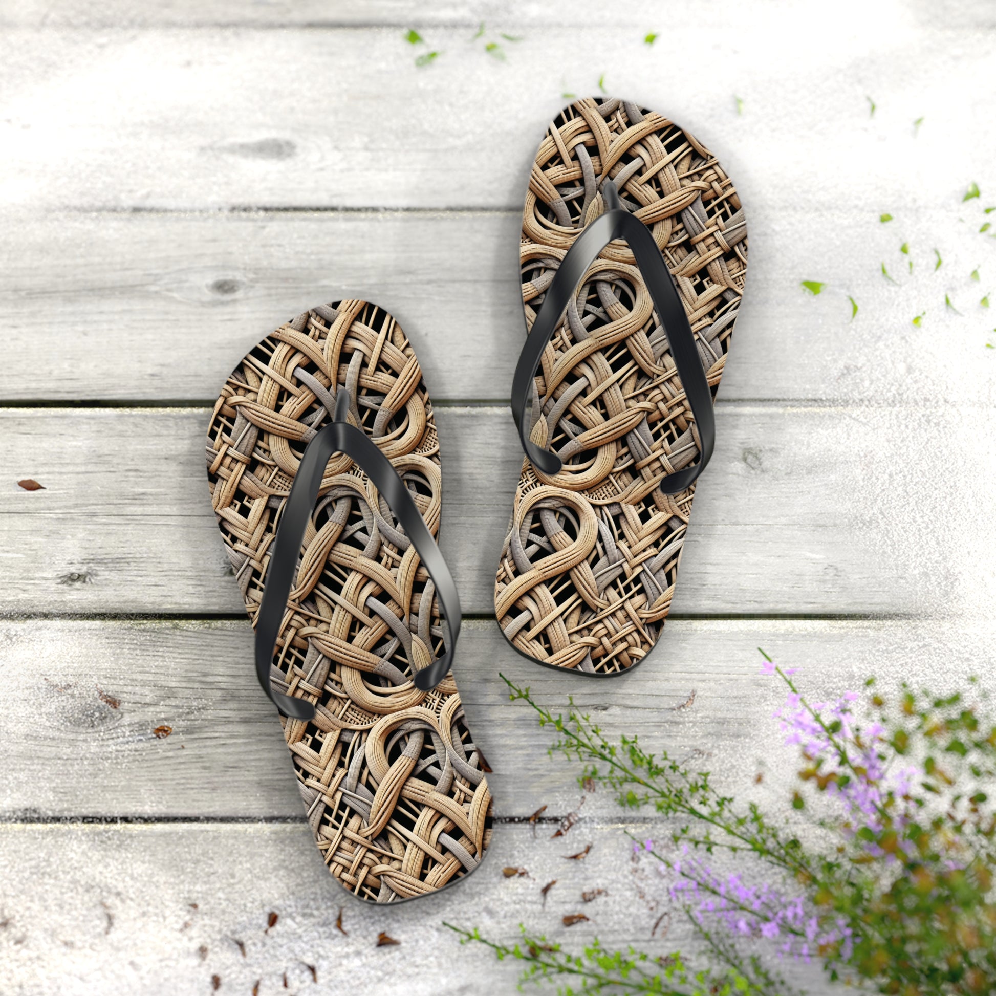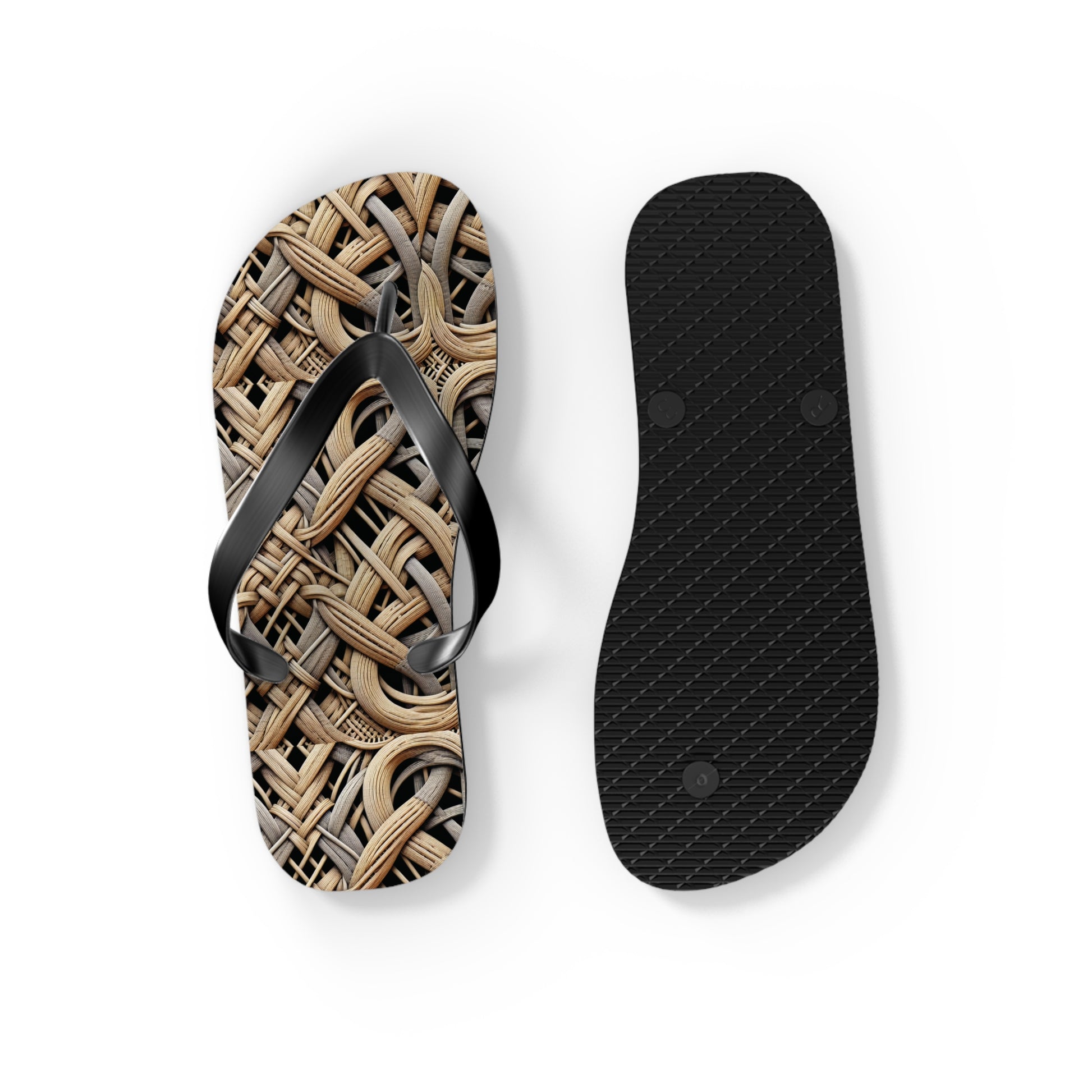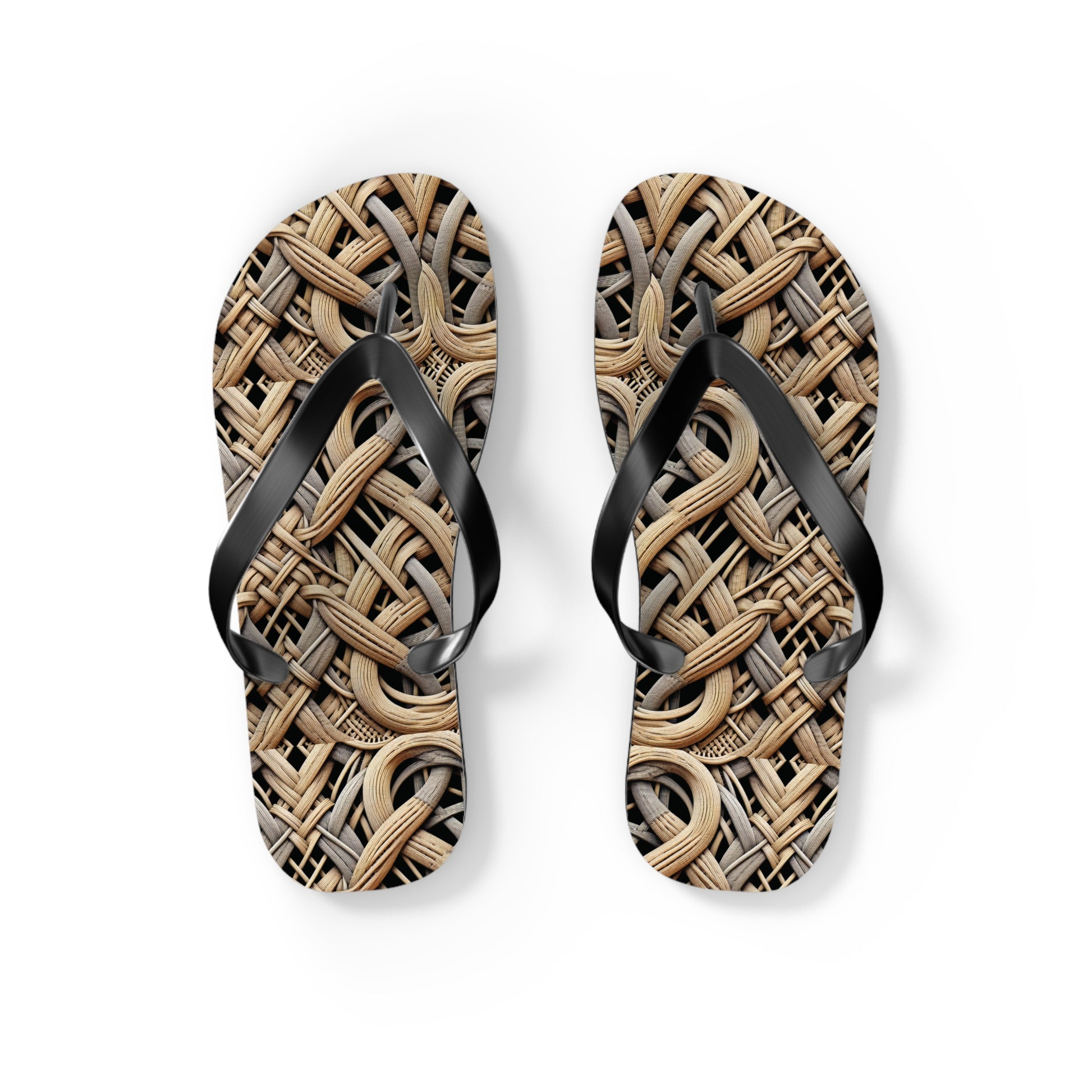 Happy beach wicker pattern takes you on a virtual tropical vacation every time you wear these flip flops!