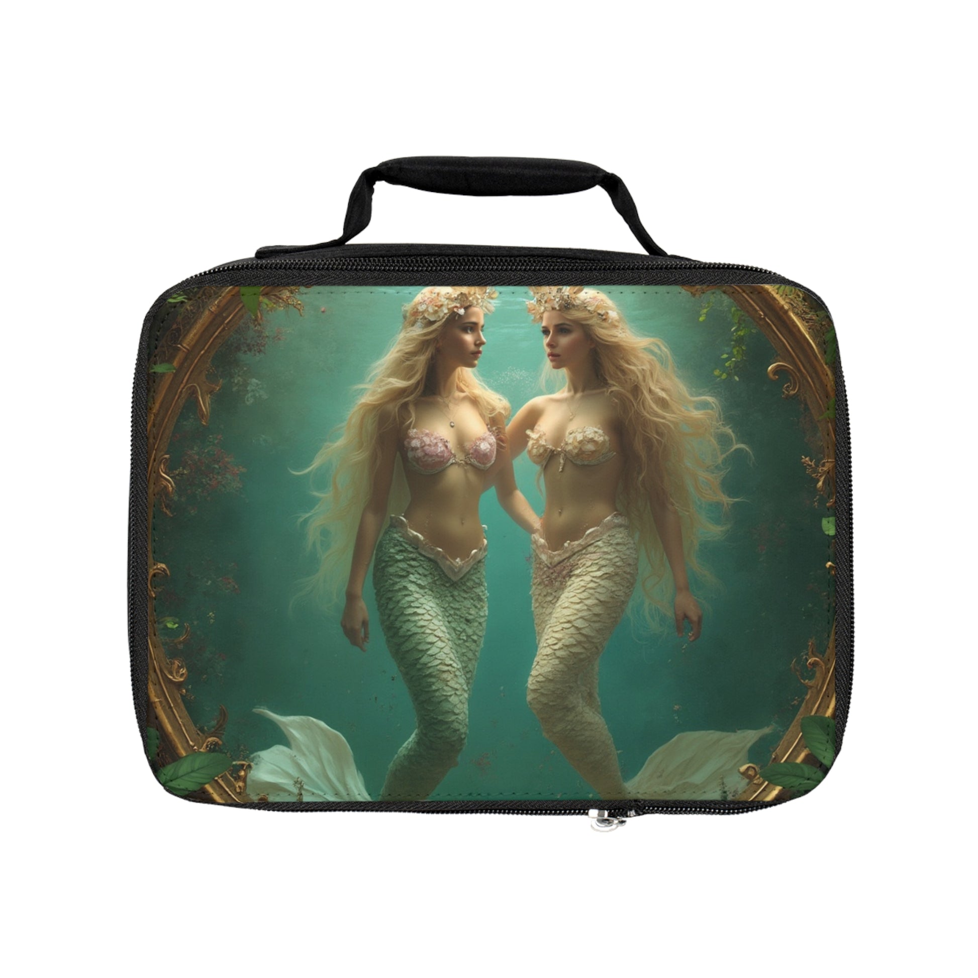 Framed Mermaid Duo Lunch Bag - Eco-Friendly Insulated Tote, Adult and Child Lunchbox / Perfect for Picnics, Beach Outings