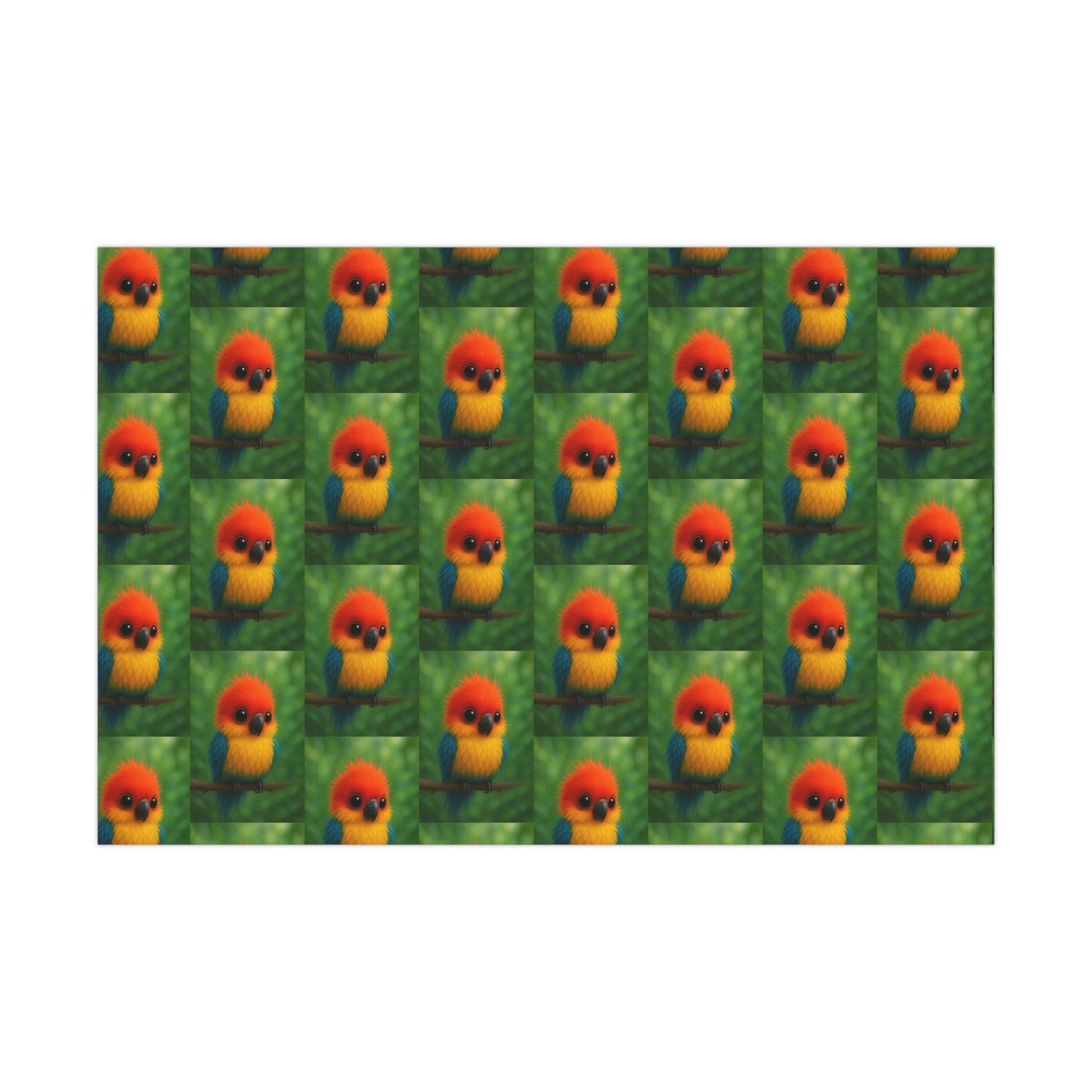 Make any gift bring an even wider smile to the receiver with this customized gift wrap paper. Available in two paper finishes (satin, matte), this wrap lets you choose what best fits your audience's needs. Each sheet is printed using GreenGuard UL Certified inks and the blank paper is made in the USA under strict quality control. Features our adorable Baby Parrot design.
