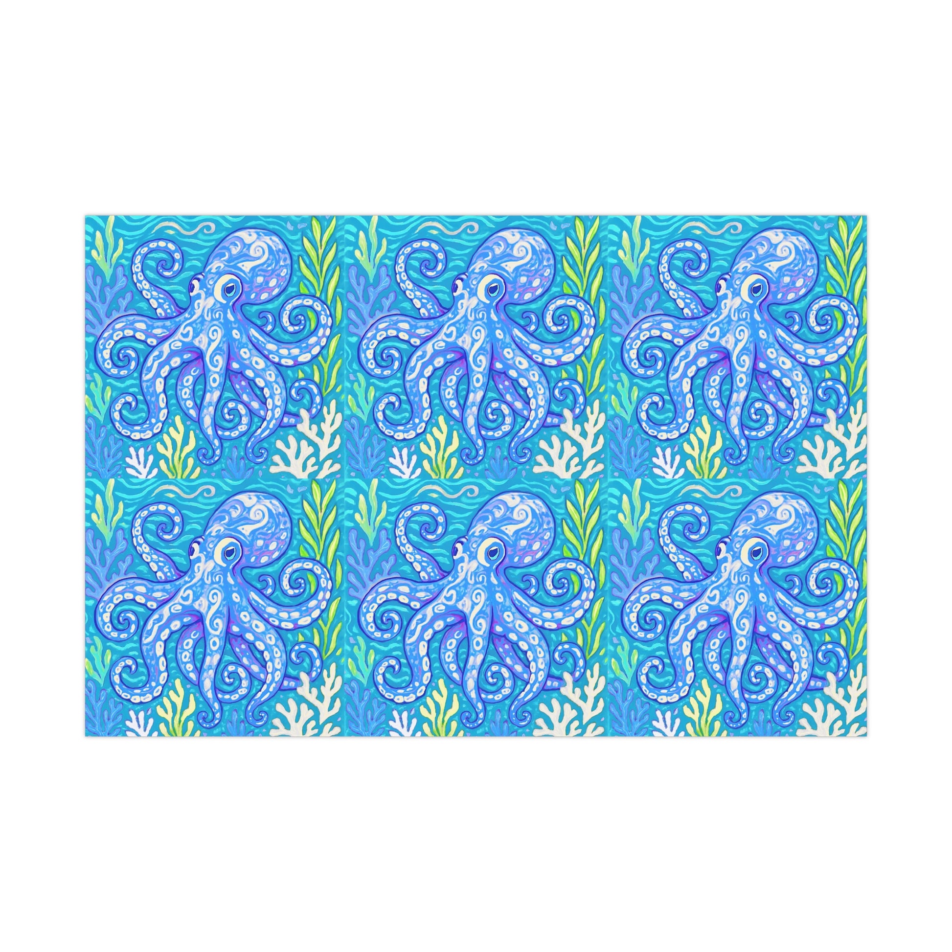 Wrapping Paper - Tropical Gift Wrap for All Occasions / 3 Sizes, 2 Finishes / Octopus Kraken Joe, Blue