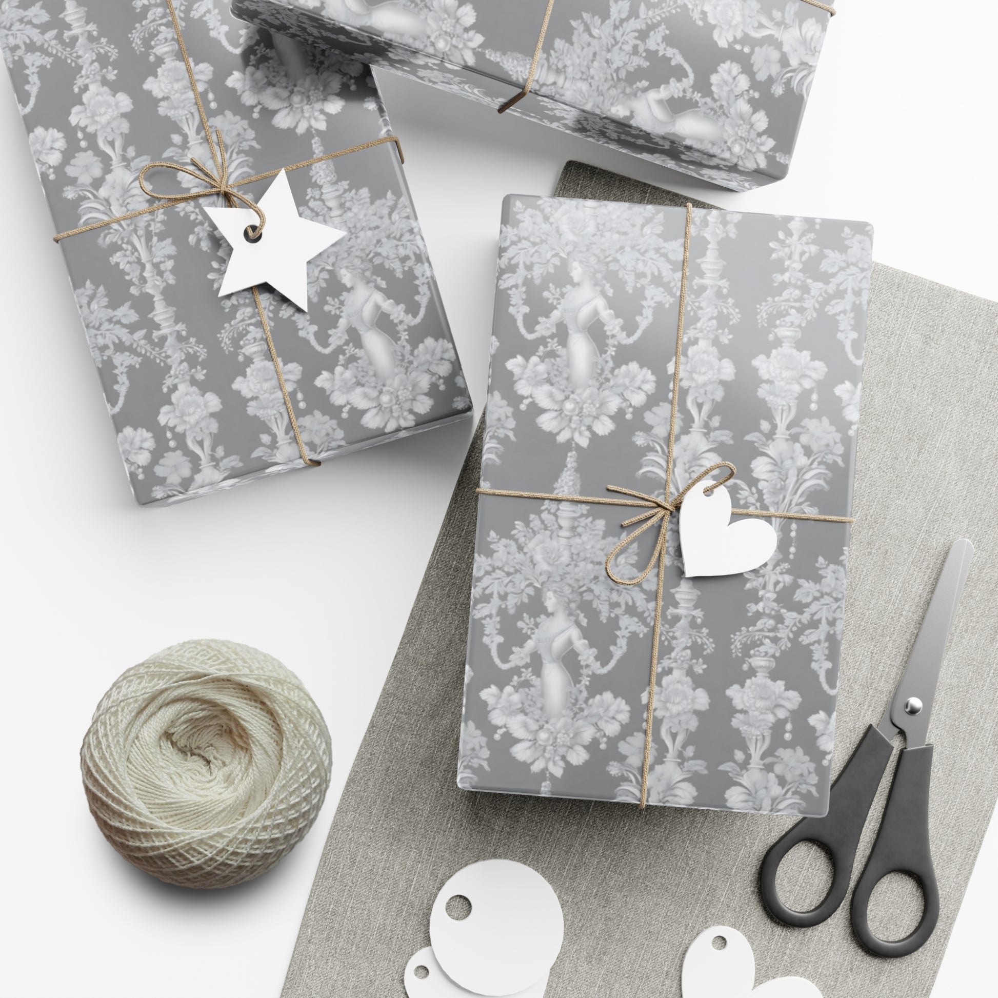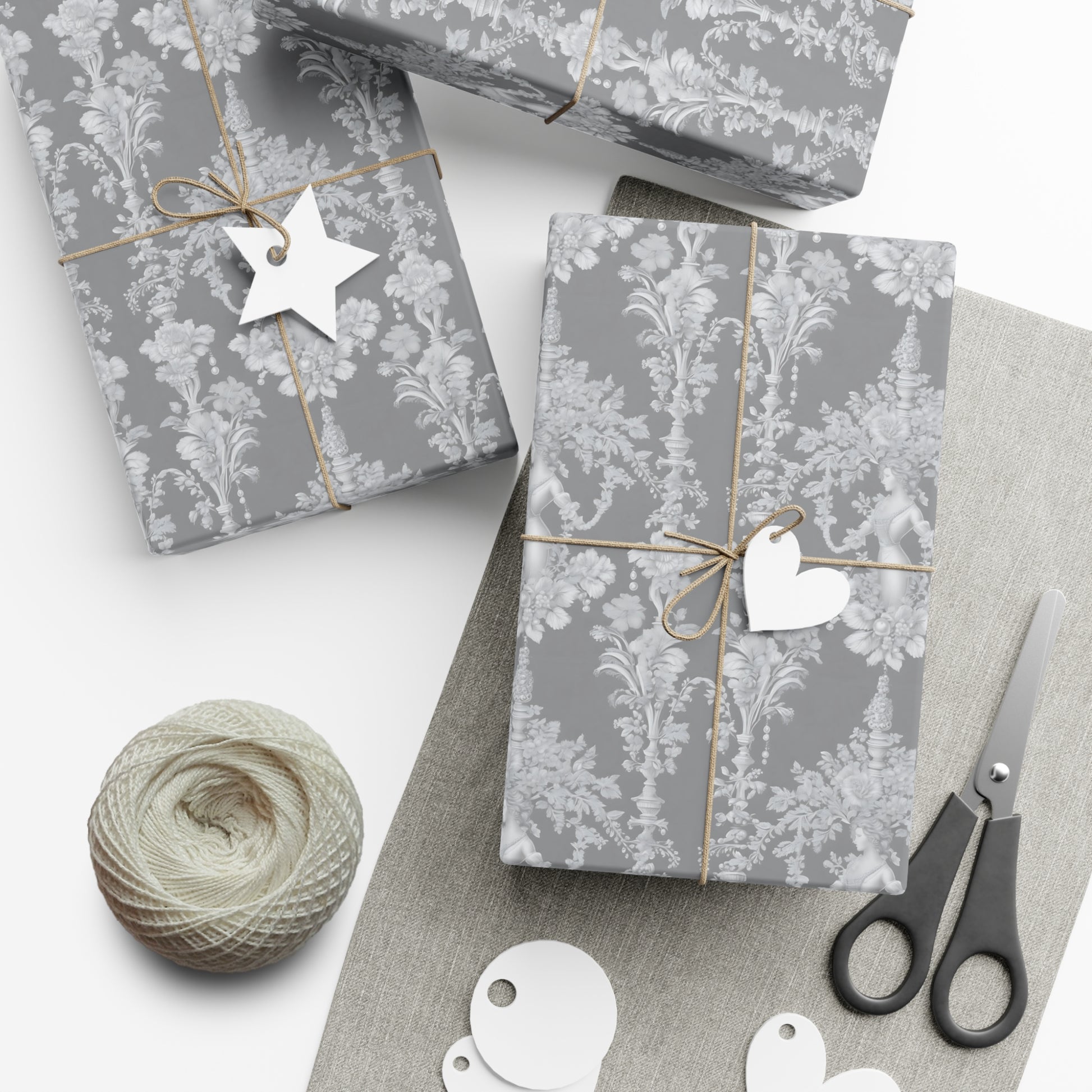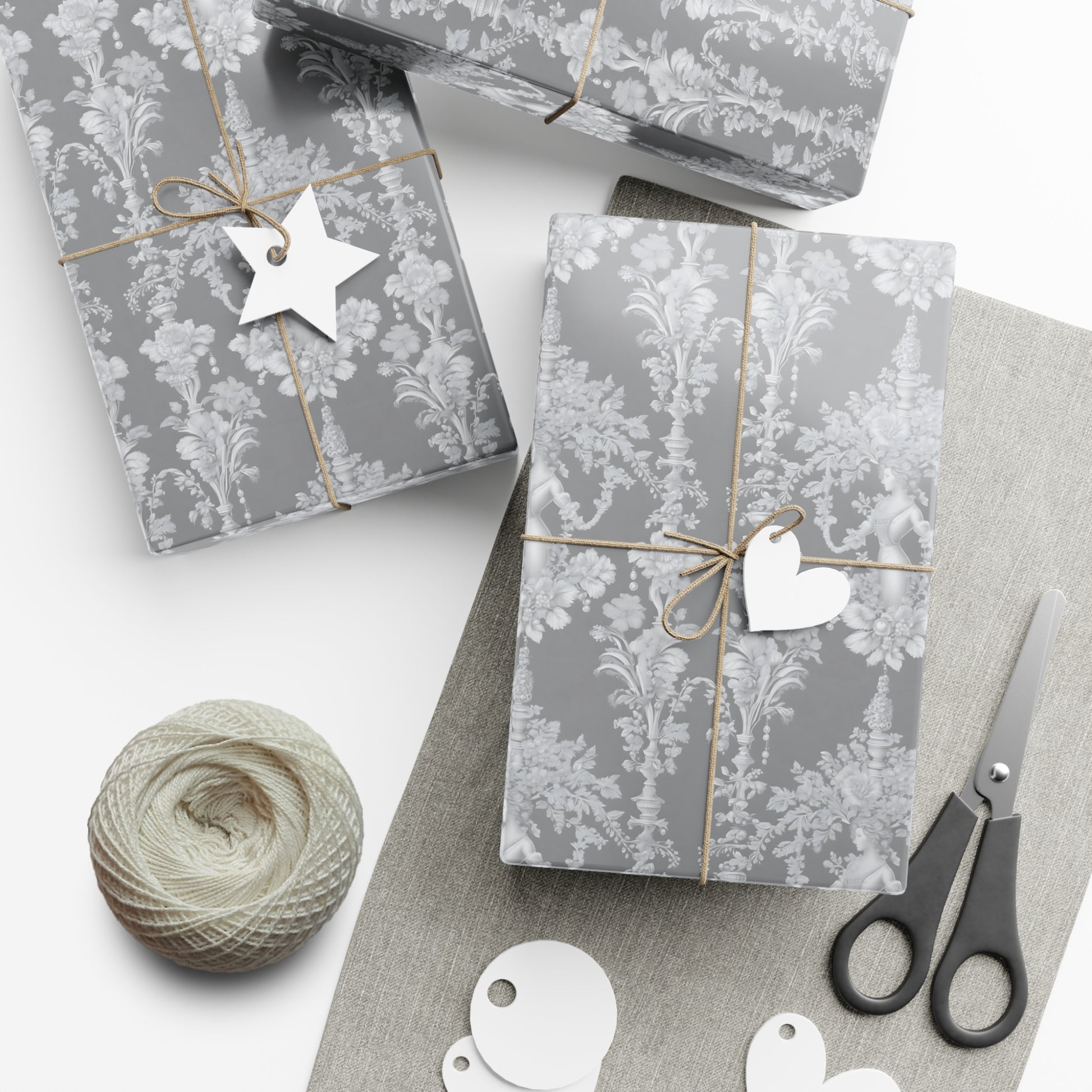 Wrapping Paper - Tropical Gift Wrap for All Occasions / 3 Sizes, 2 Finishes / Pearl Lady Toile, Slate