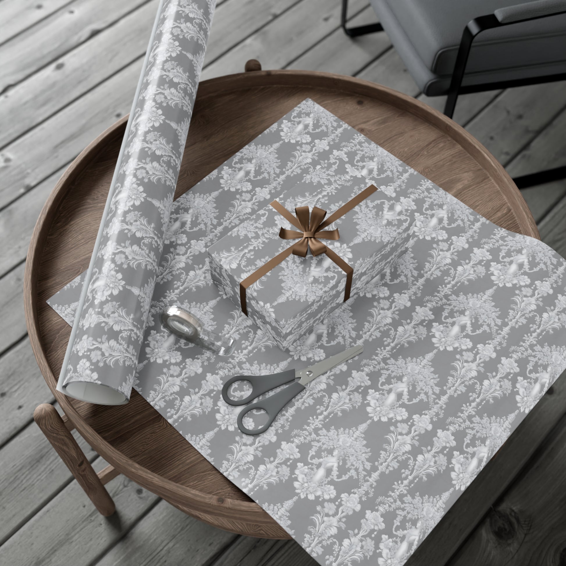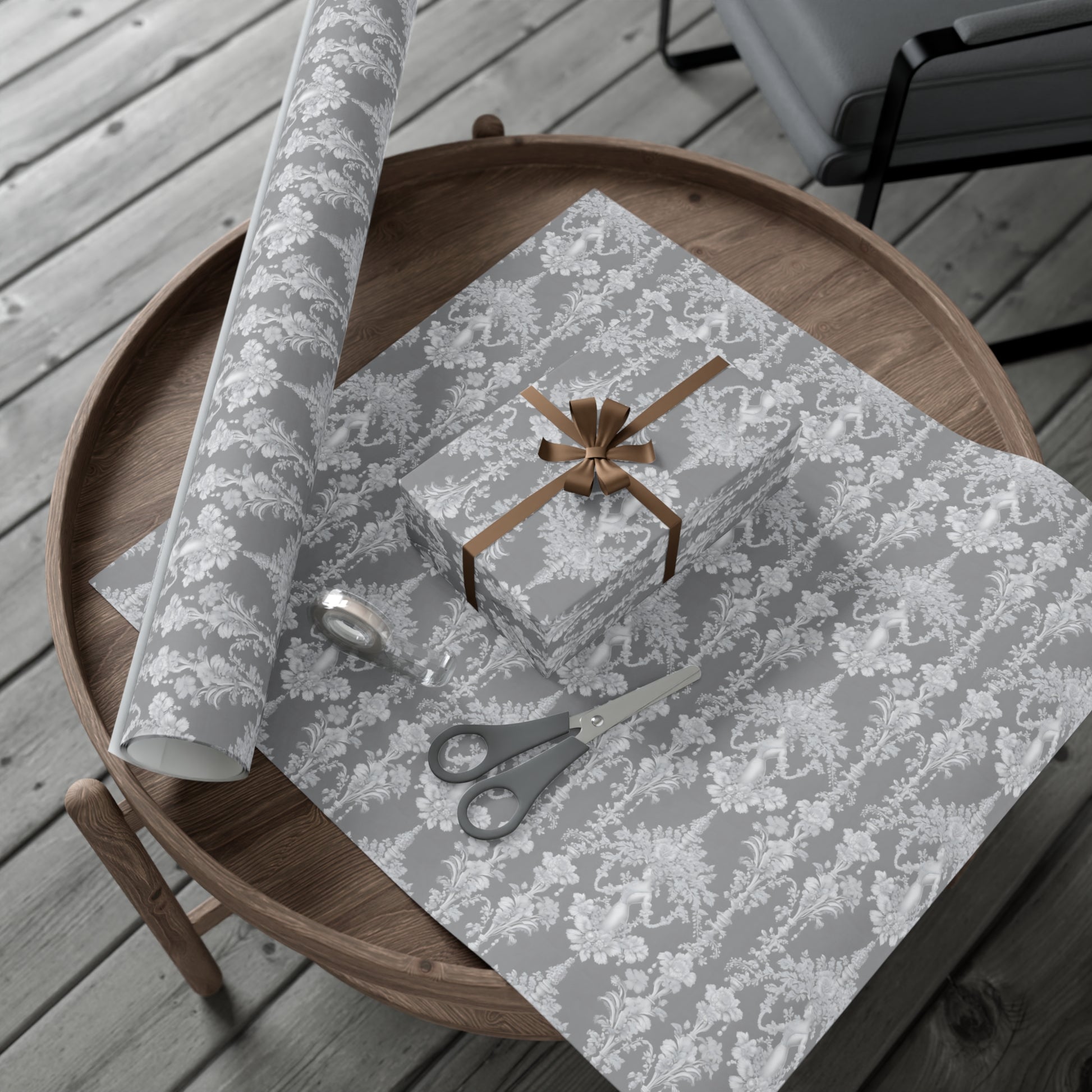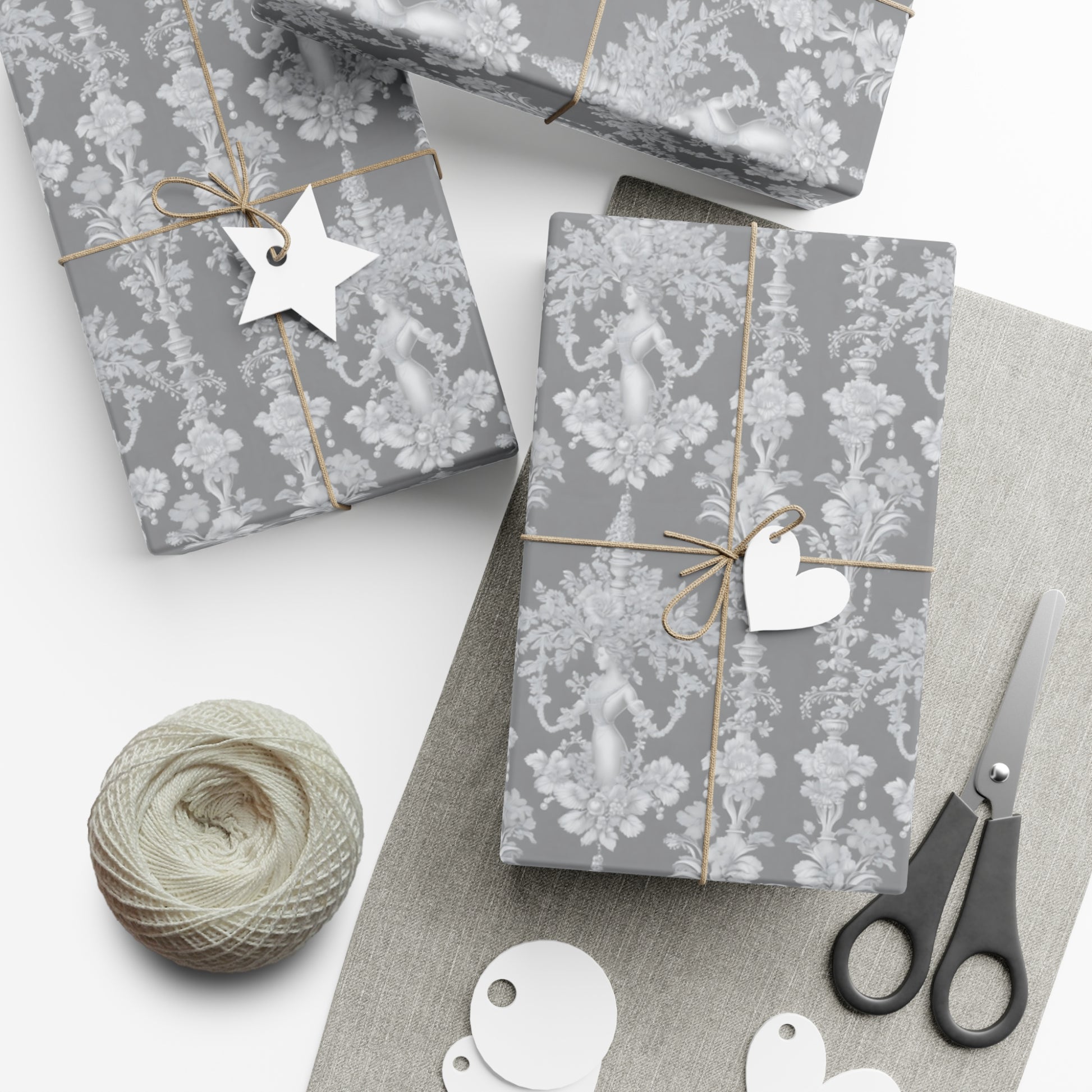 Wrapping Paper - Tropical Gift Wrap for All Occasions / 3 Sizes, 2 Finishes / Pearl Lady Toile, Slate