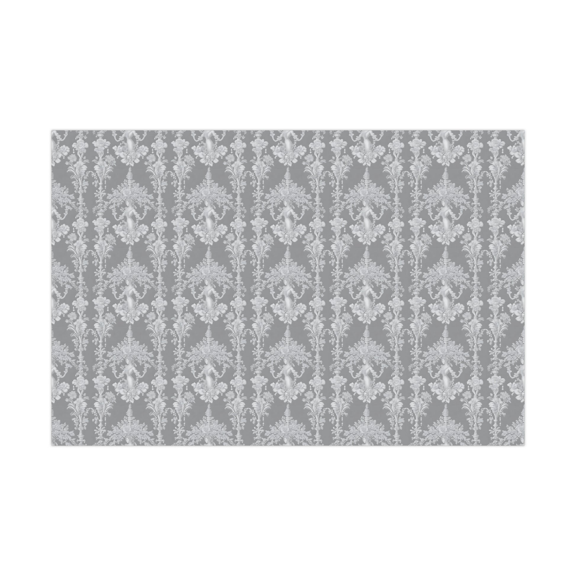 Make any gift bring an even wider smile to the receiver with this customized gift wrap paper. Part of our toile series, it features our original Pearl Ladly Toile repeat pattern. Images are of a beautiful woman styllized as a lustrous pearl, surrounded by more lovely and classial toile elements. Quiet unusual functional art! Available in two paper finishes (satin, matte), this wrap lets you choose what best fits your audience's needs. Each sheet is printed using GreenGuard UL Certified inks and the blank paper is made in the USA under strict quality control. Slate
