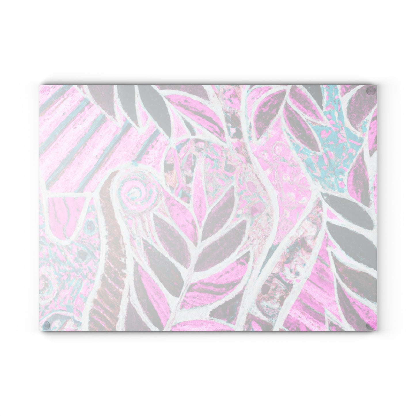 Glass Cutting Board, 2 sizes - Amazon Whimsy, Pink