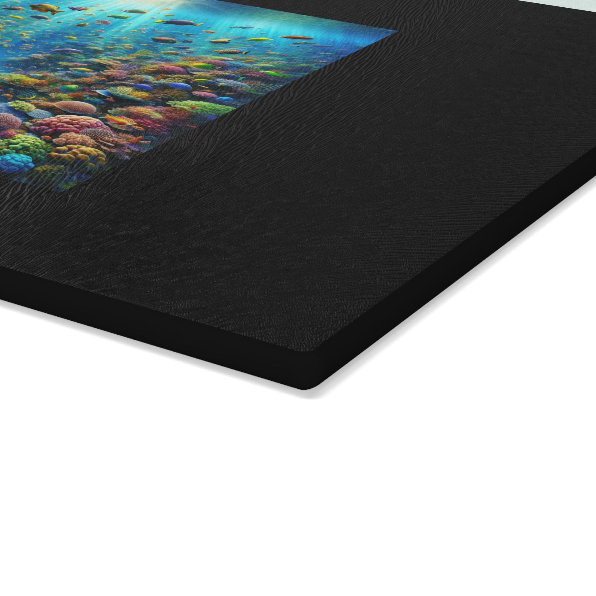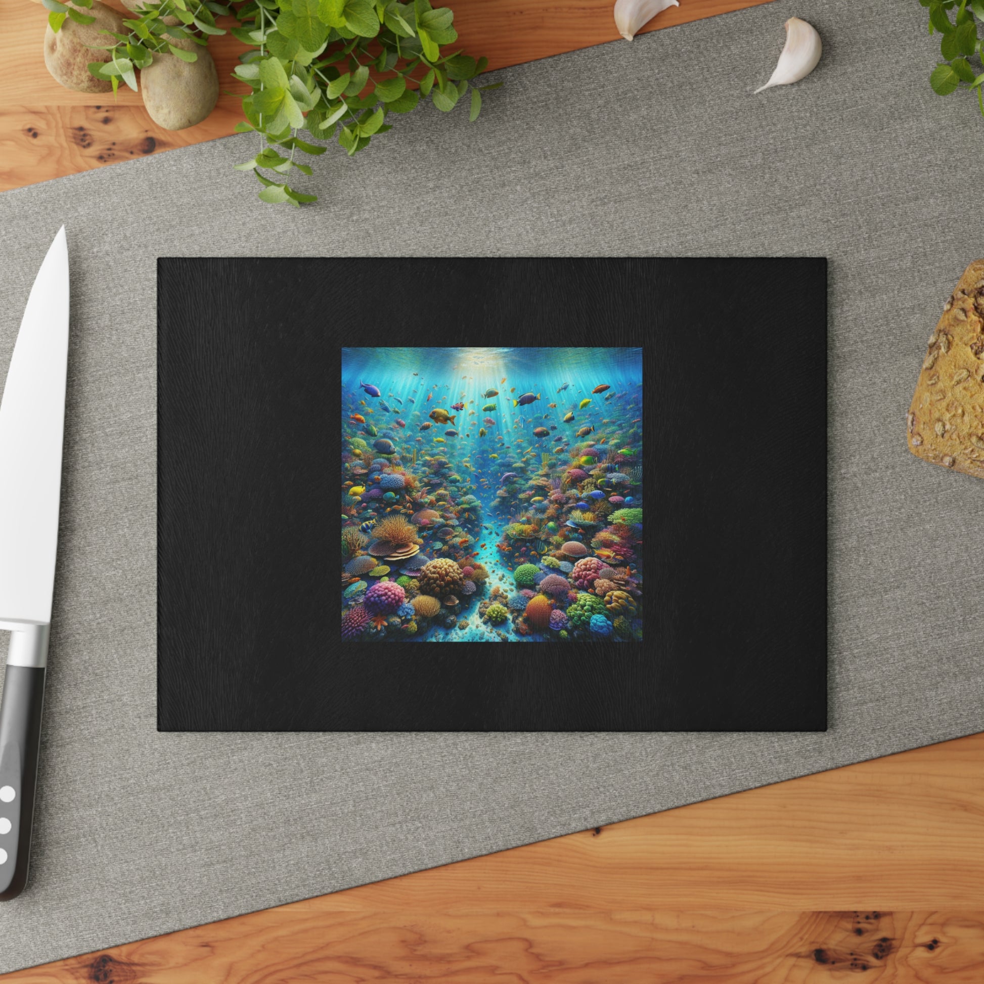 Glass Cutting Board, 2 sizes - Busy Coral Reef/Black