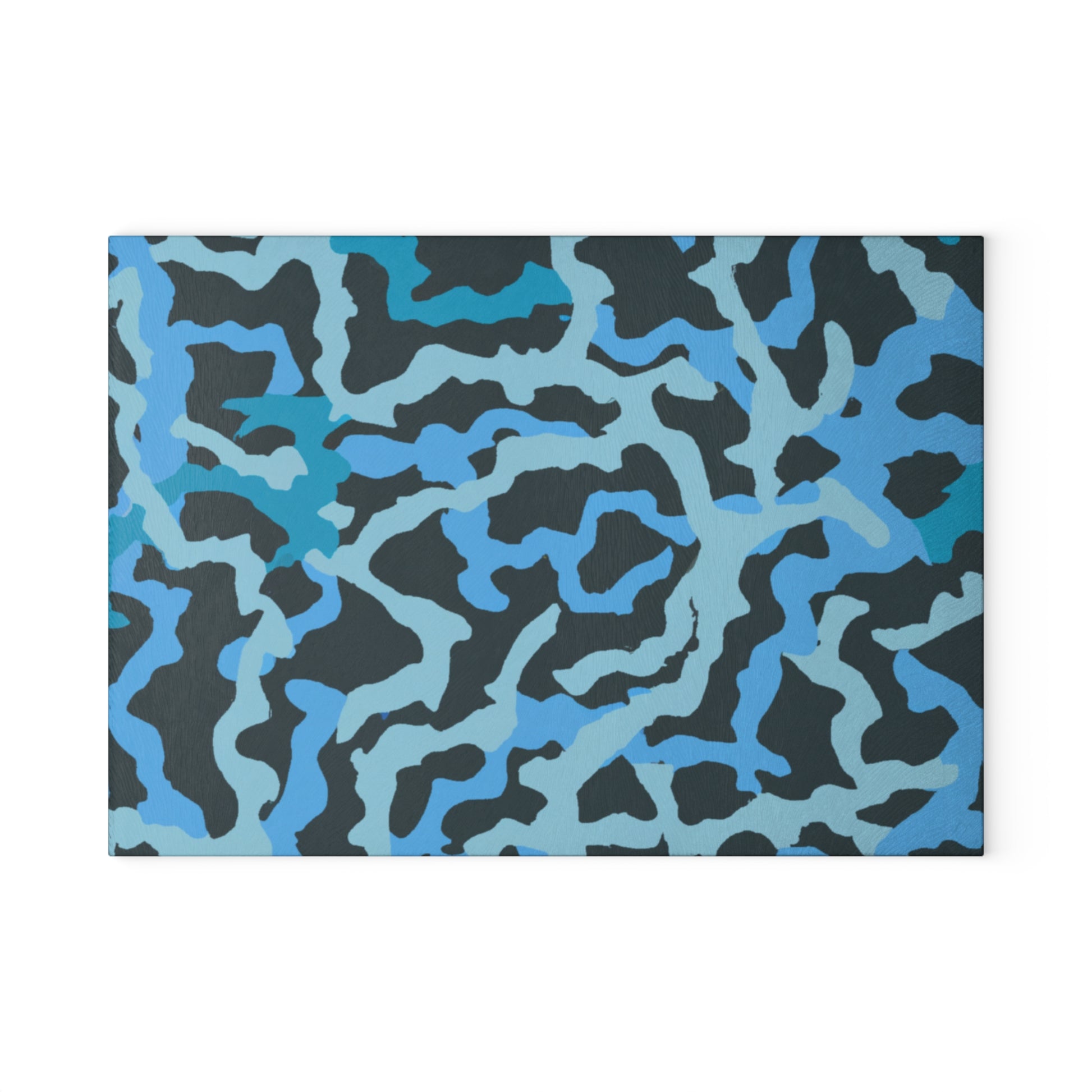 Glass Cutting Board, 2 sizes - Coral Threads/Blue