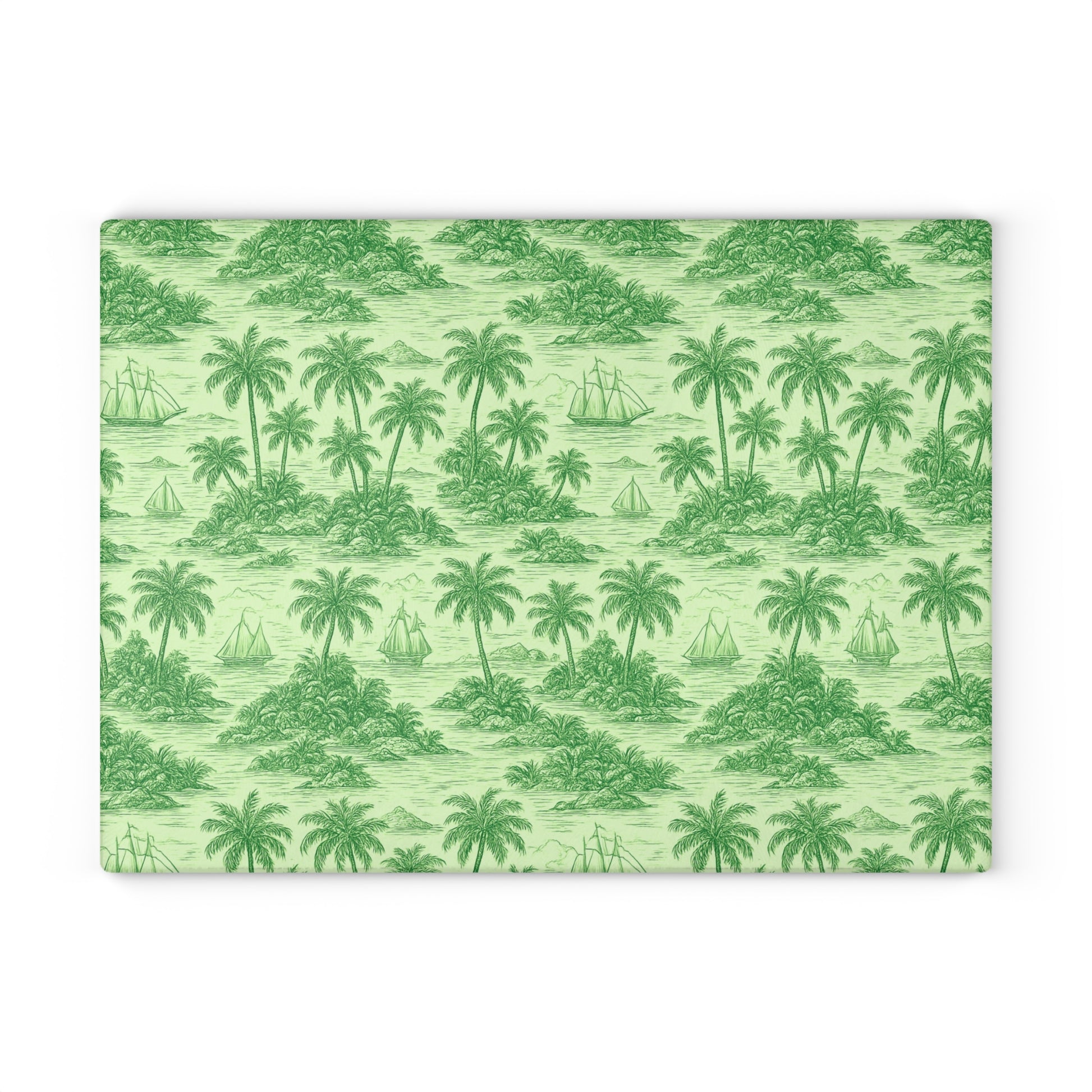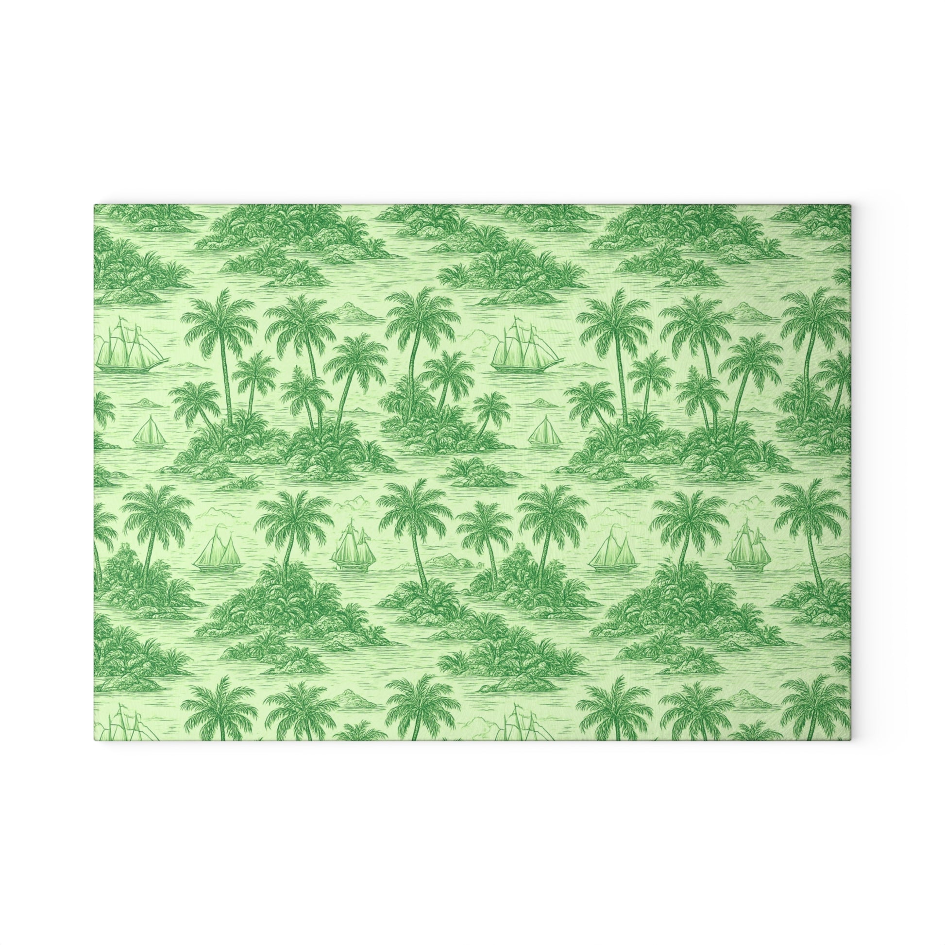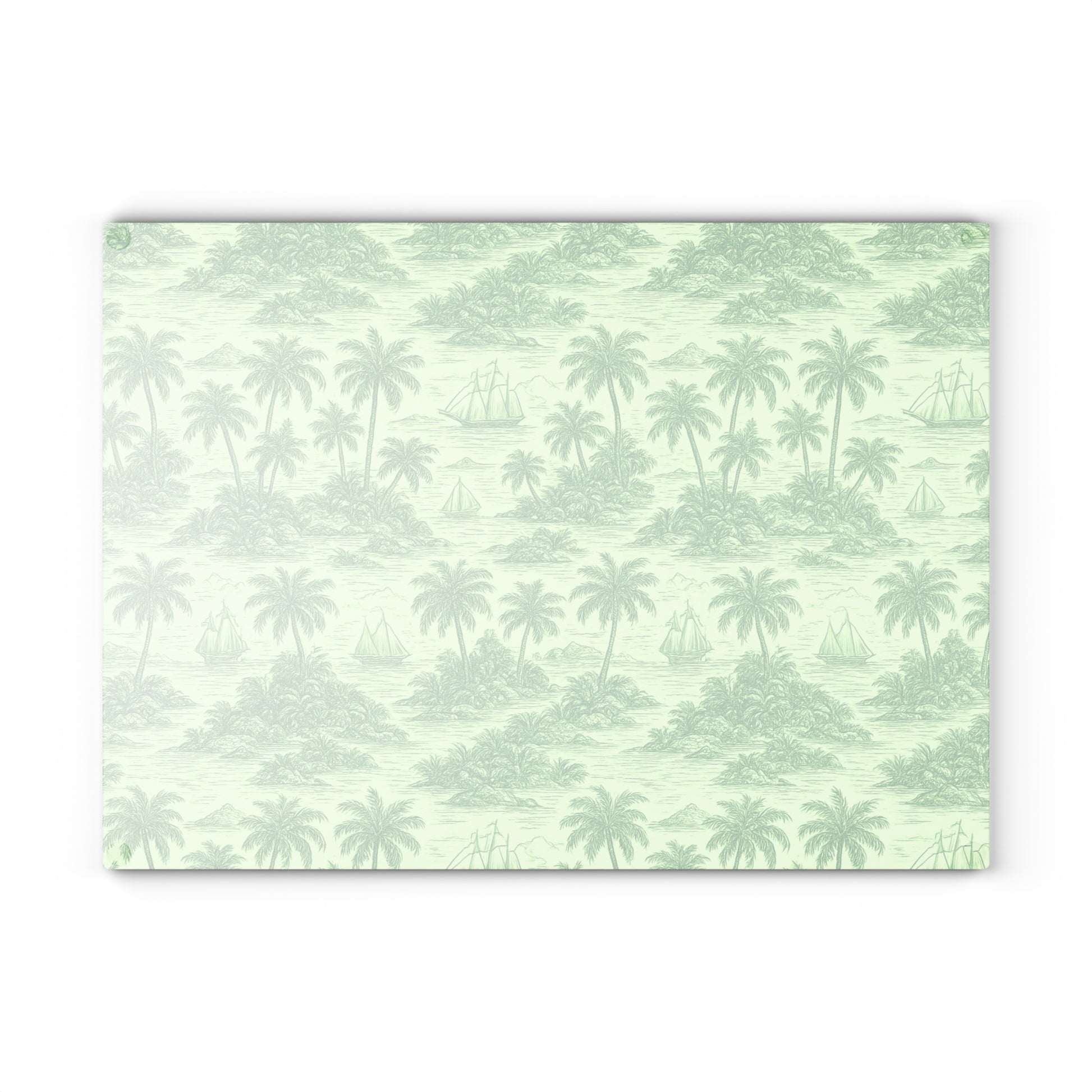 Glass Cutting Board, 2 sizes - Faraway Toile/Green