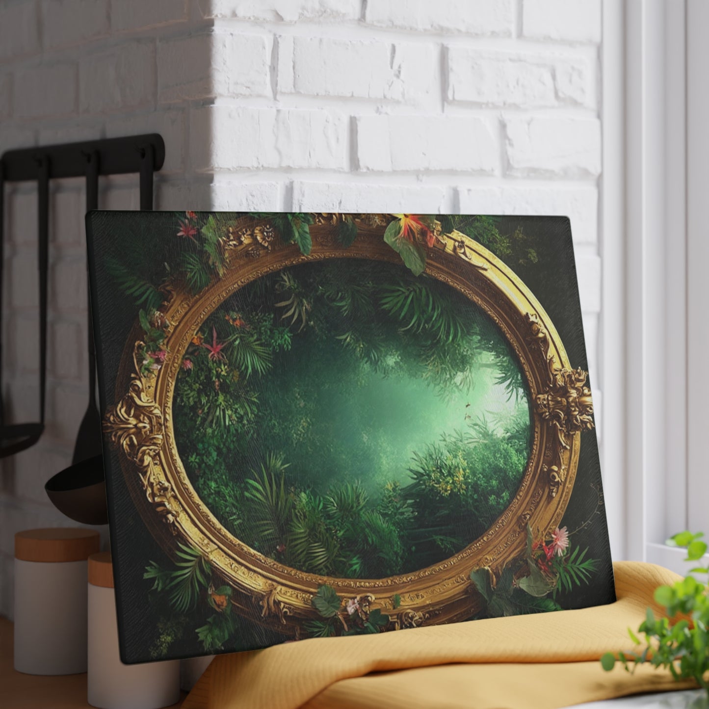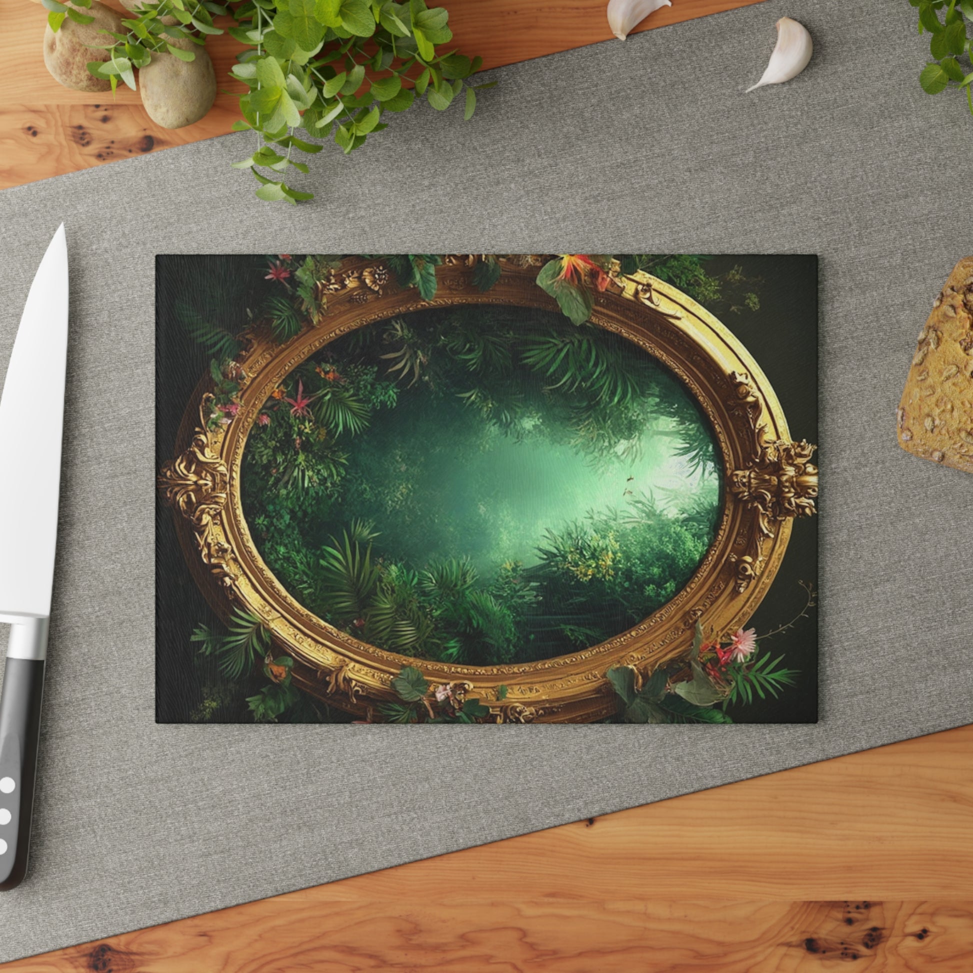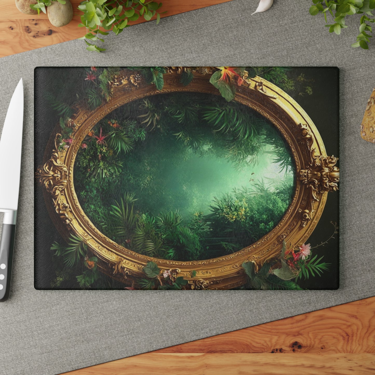 Glass Cutting Board, 2 sizes - Golden Portal to Paradise