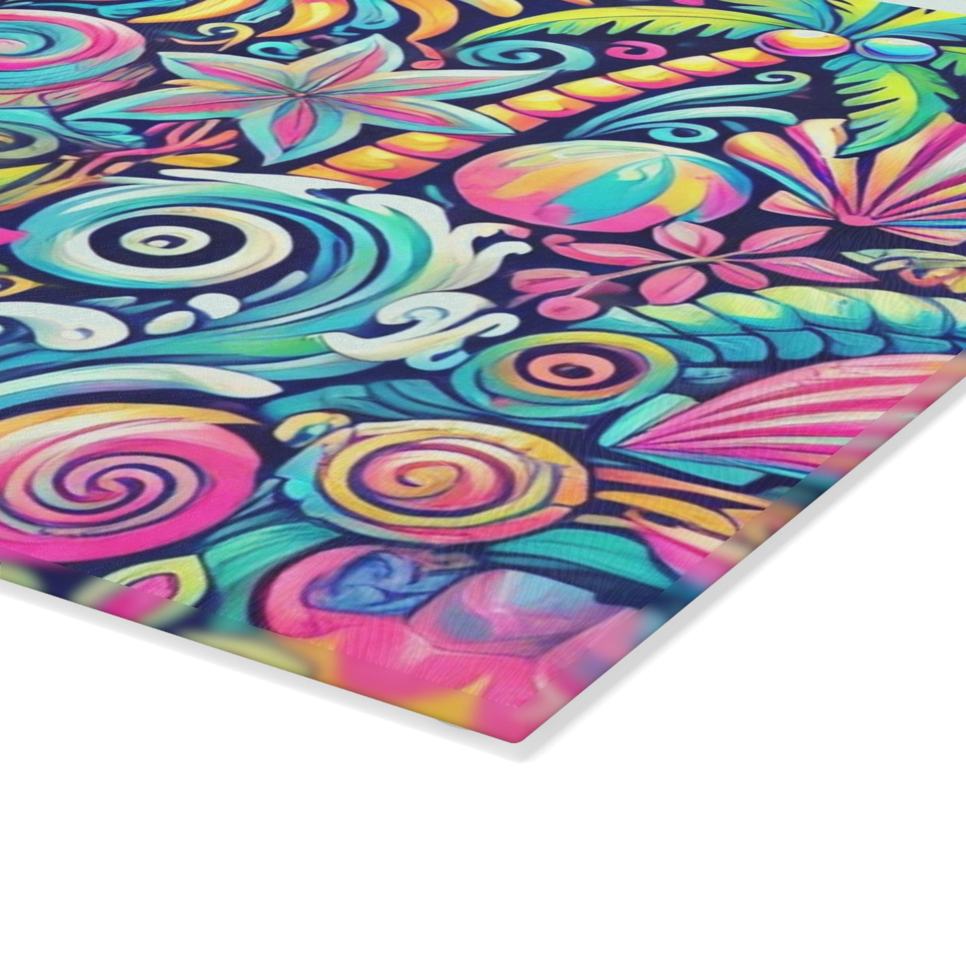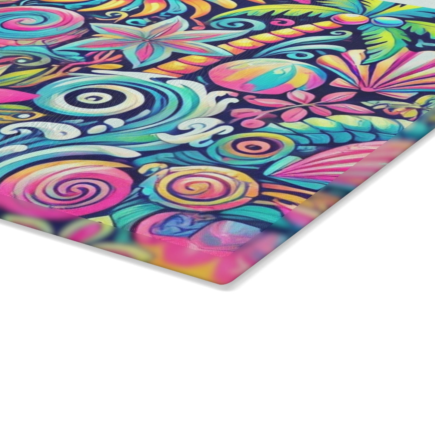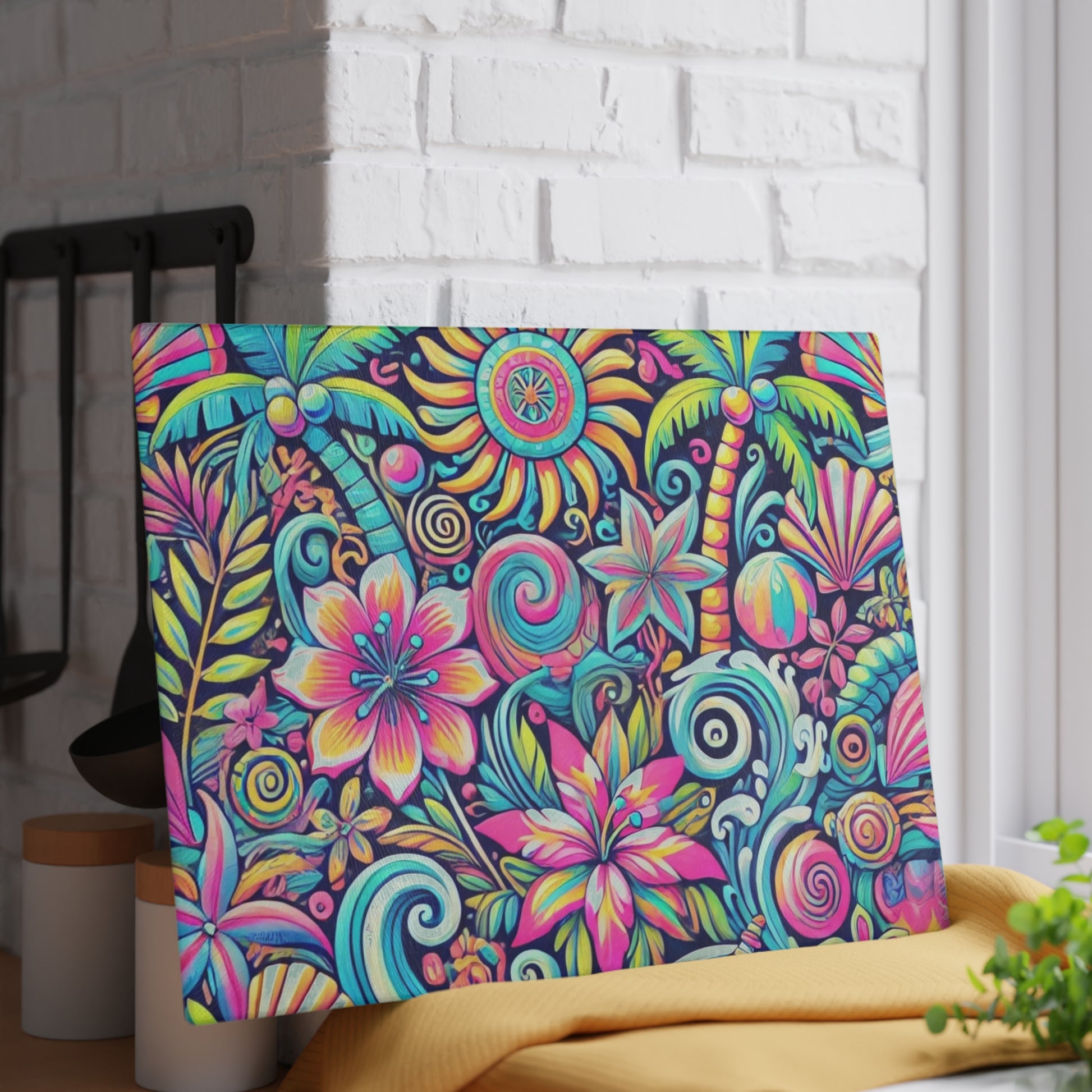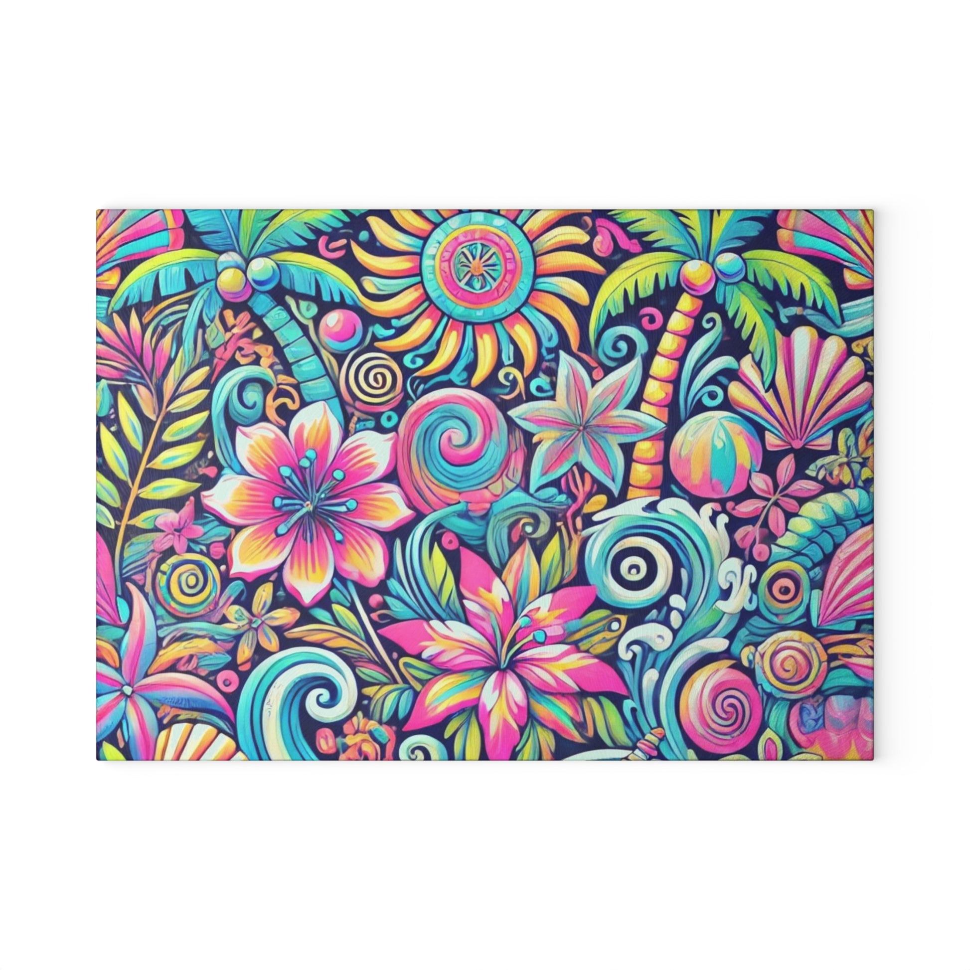 Bring a touch of character into any kitchen with this custom glass cutting board. Its tampered glass material is robust and helps prepare many a tasty meal. The textured surface makes it an ideal chopping, slicing and dicing area. Available in two sizes: 8" x 11" and 11" x 15". Features our exclusive design evoking tropical vibes.