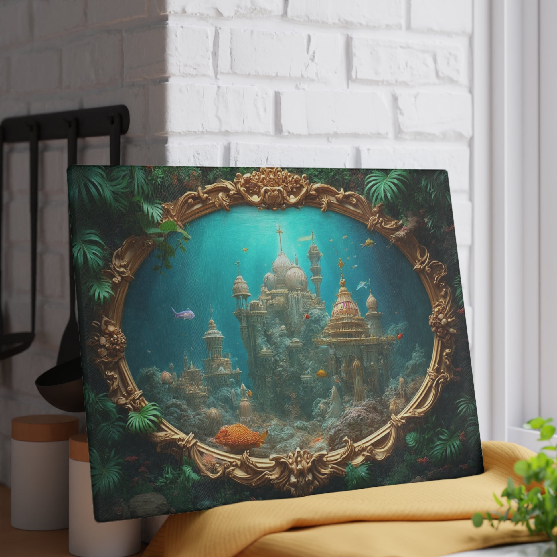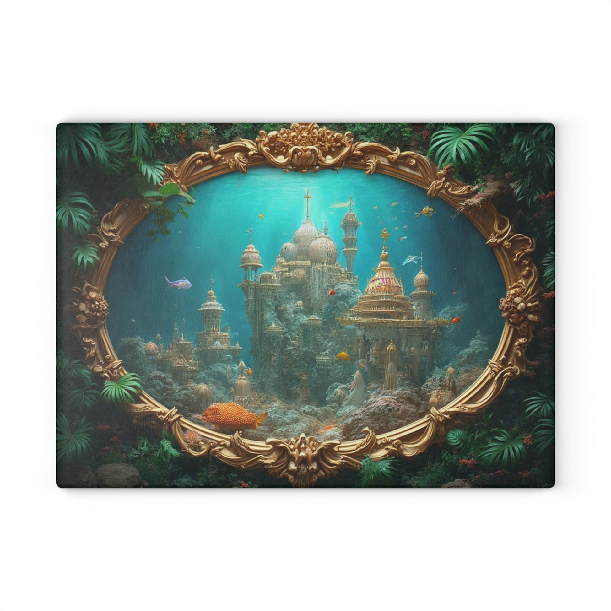 Glass Cutting Board, 2 sizes - Mermaid Palace, Aegean Sea