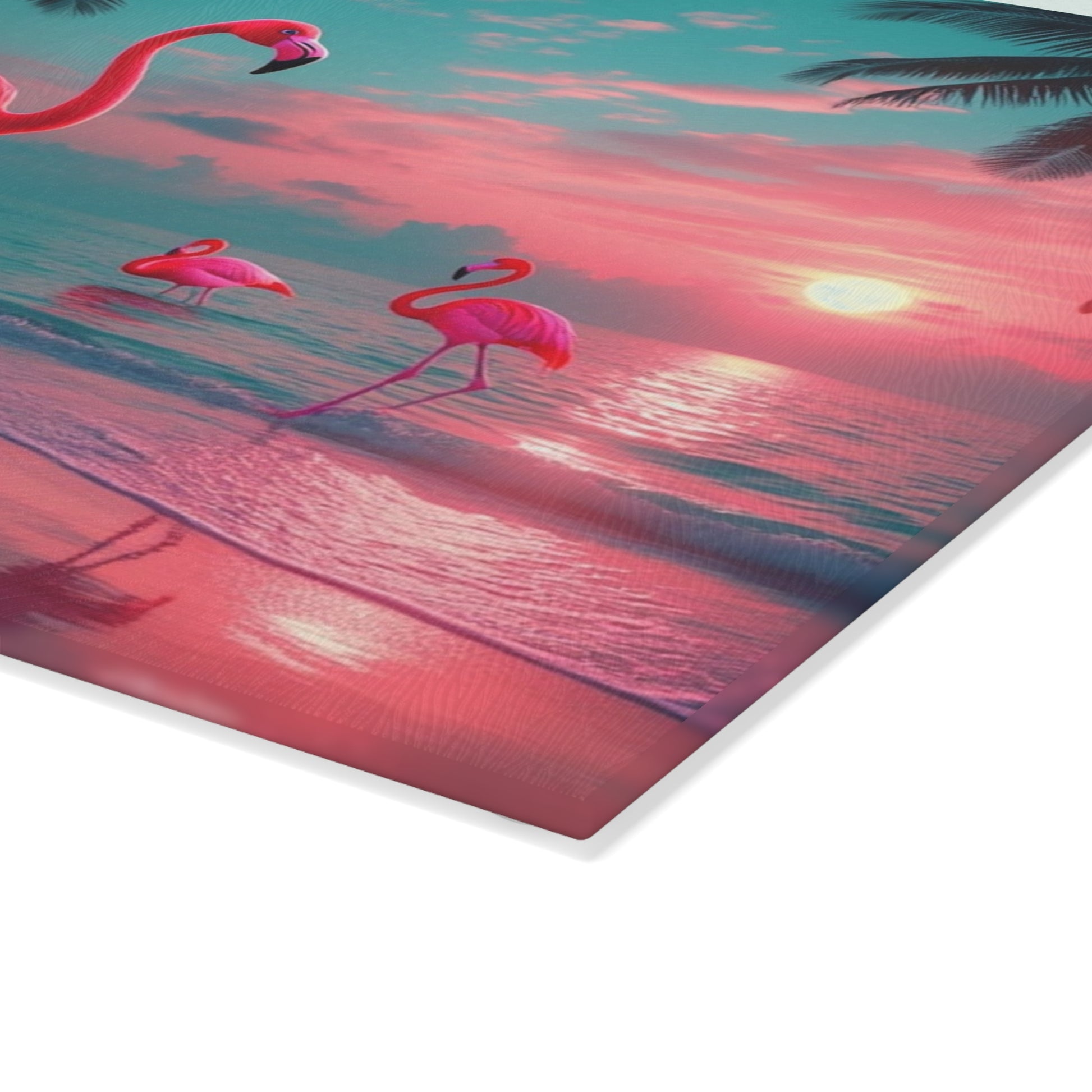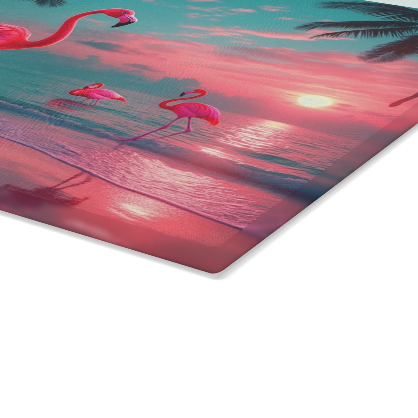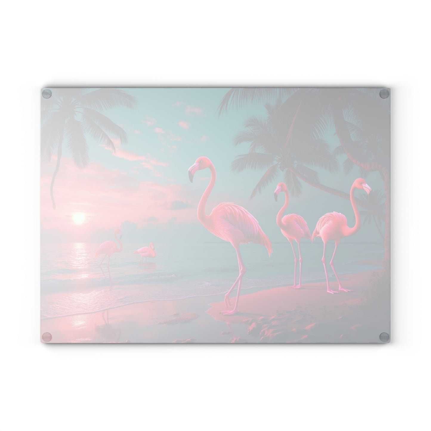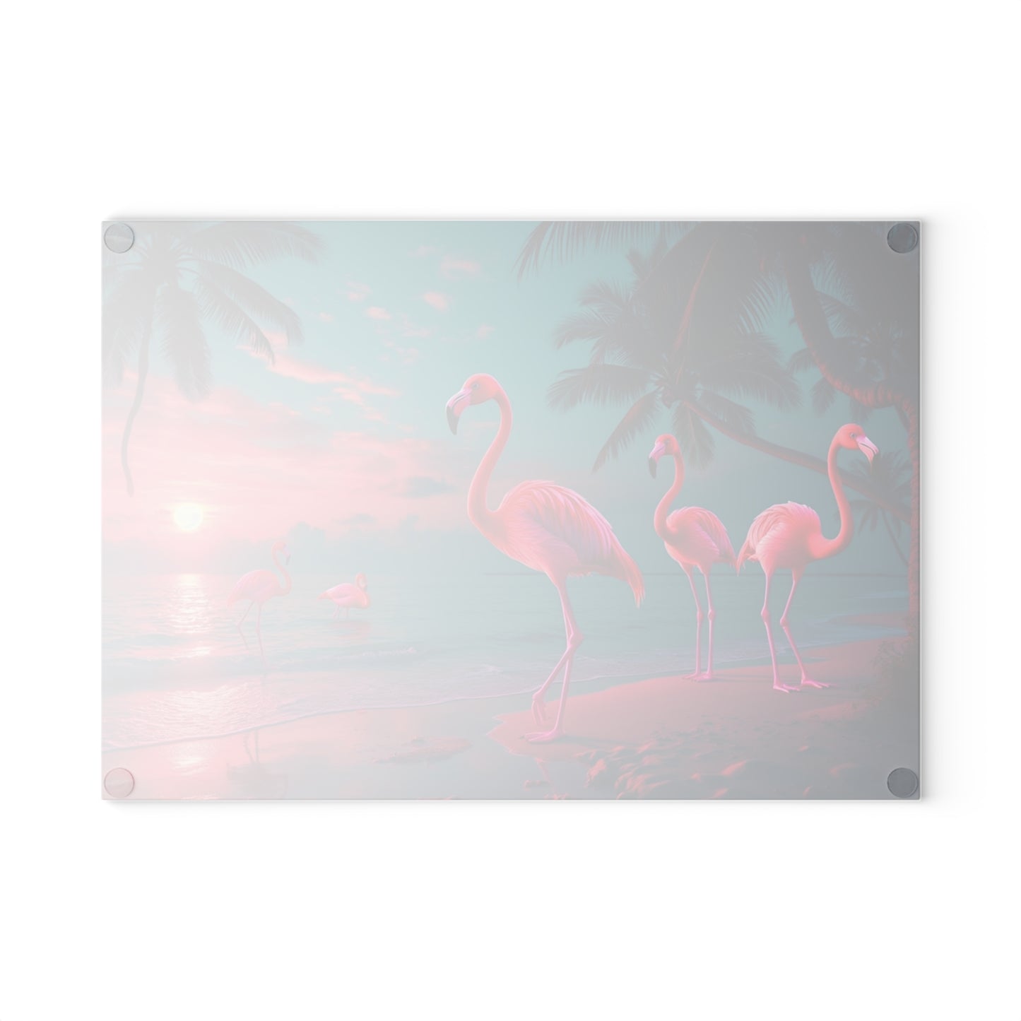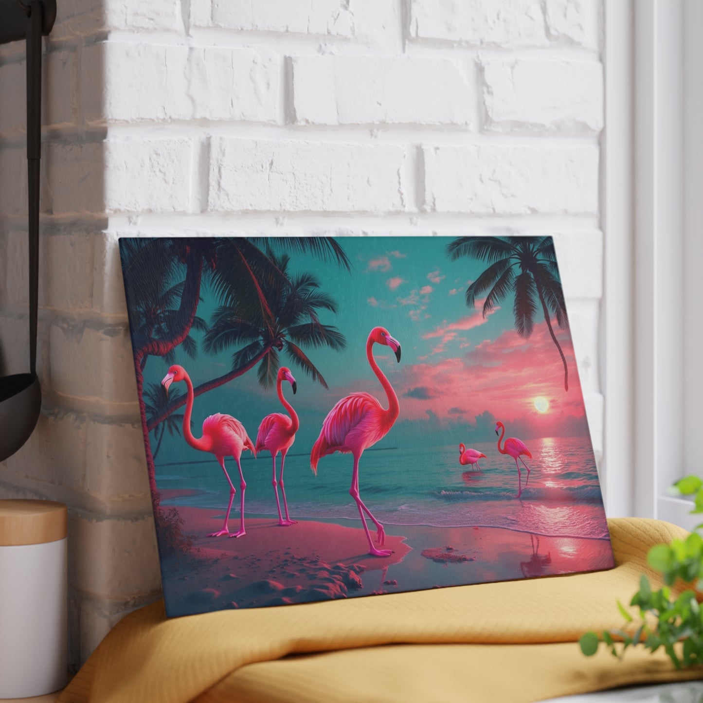 Glass Cutting Board, 2 sizes - Neon Flamingos at Night
