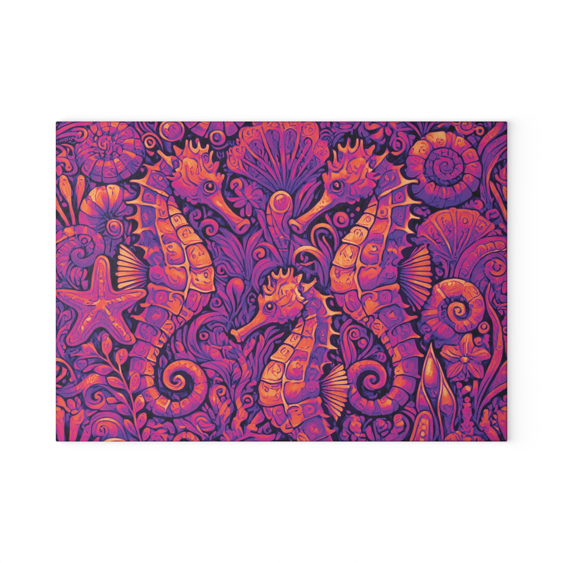 Glass Cutting Board, 2 sizes - Seahorses Heatwave