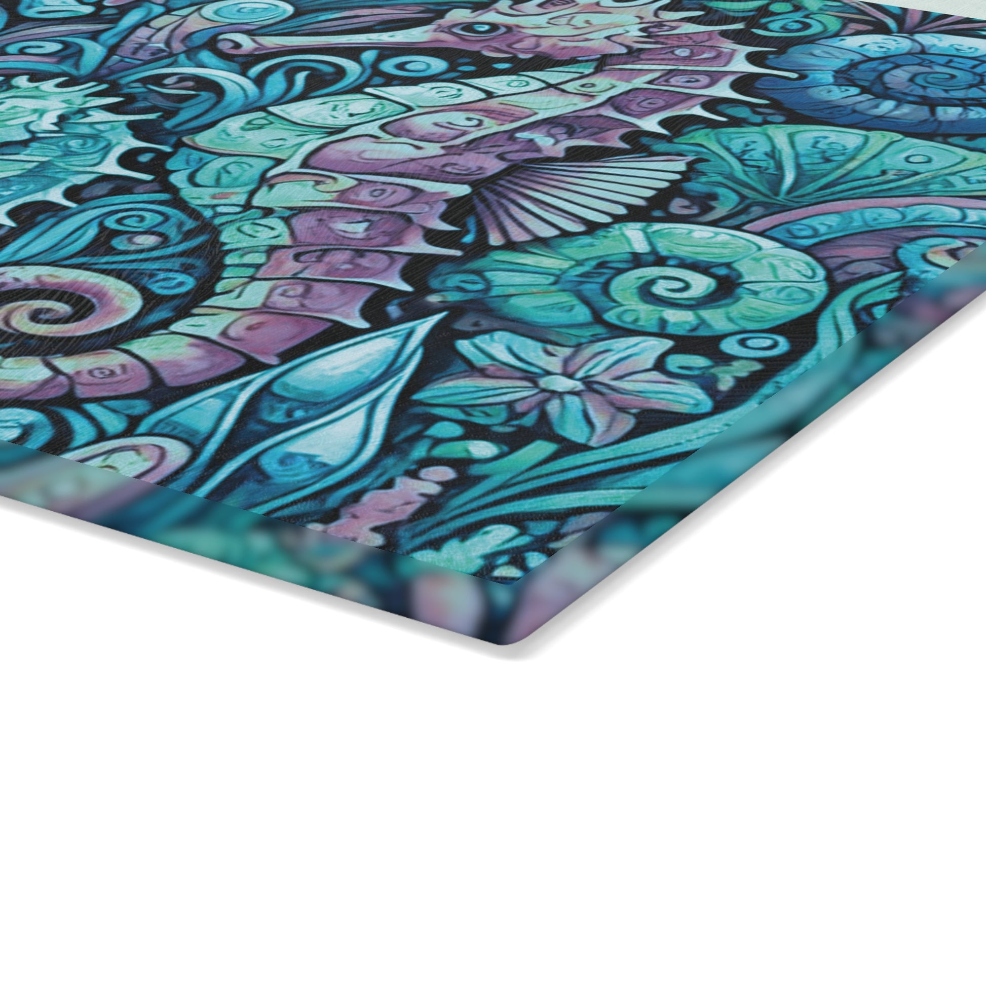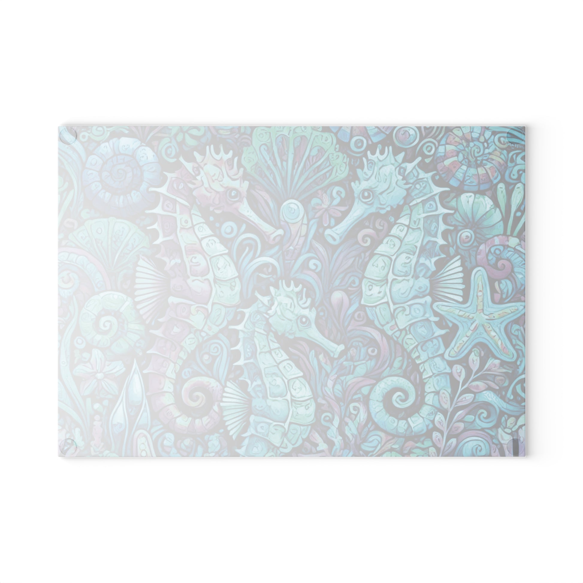 Glass Cutting Board, 2 sizes - Seahorses/Turquoise