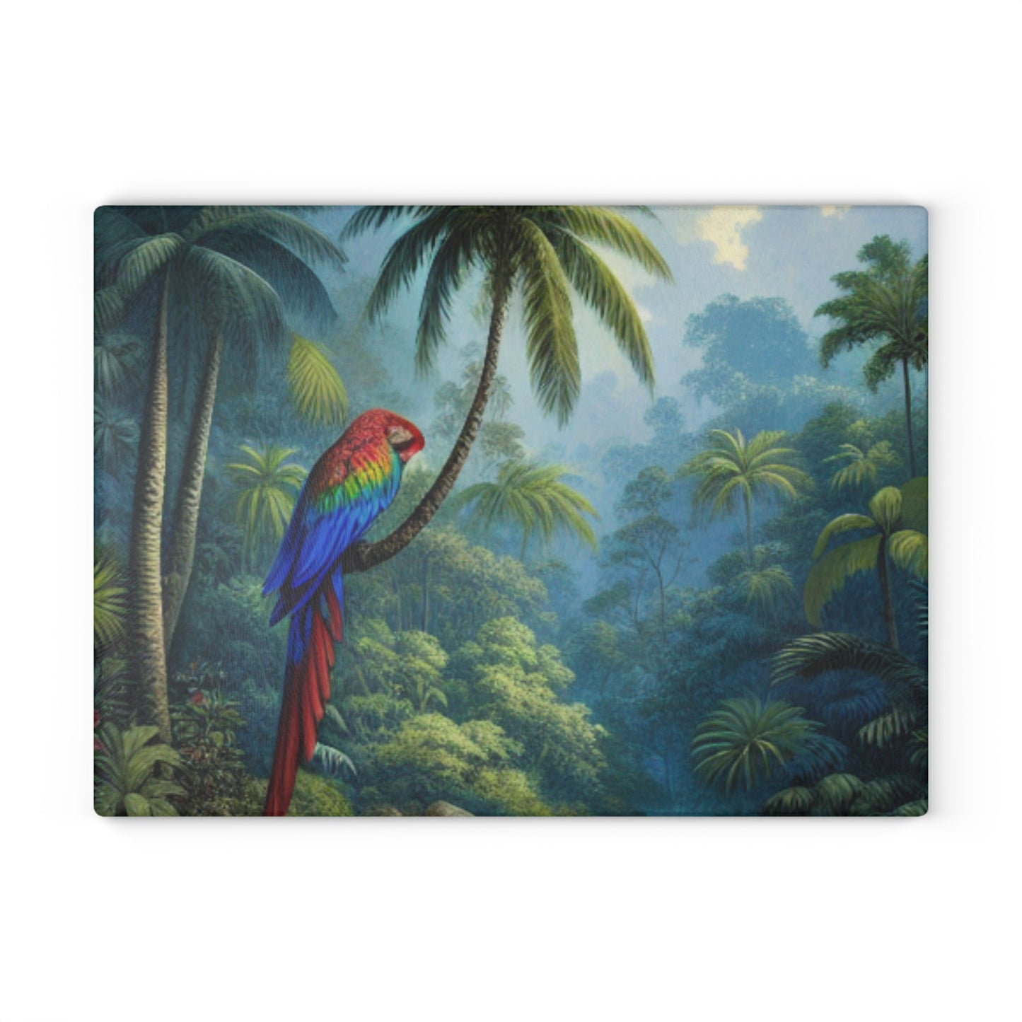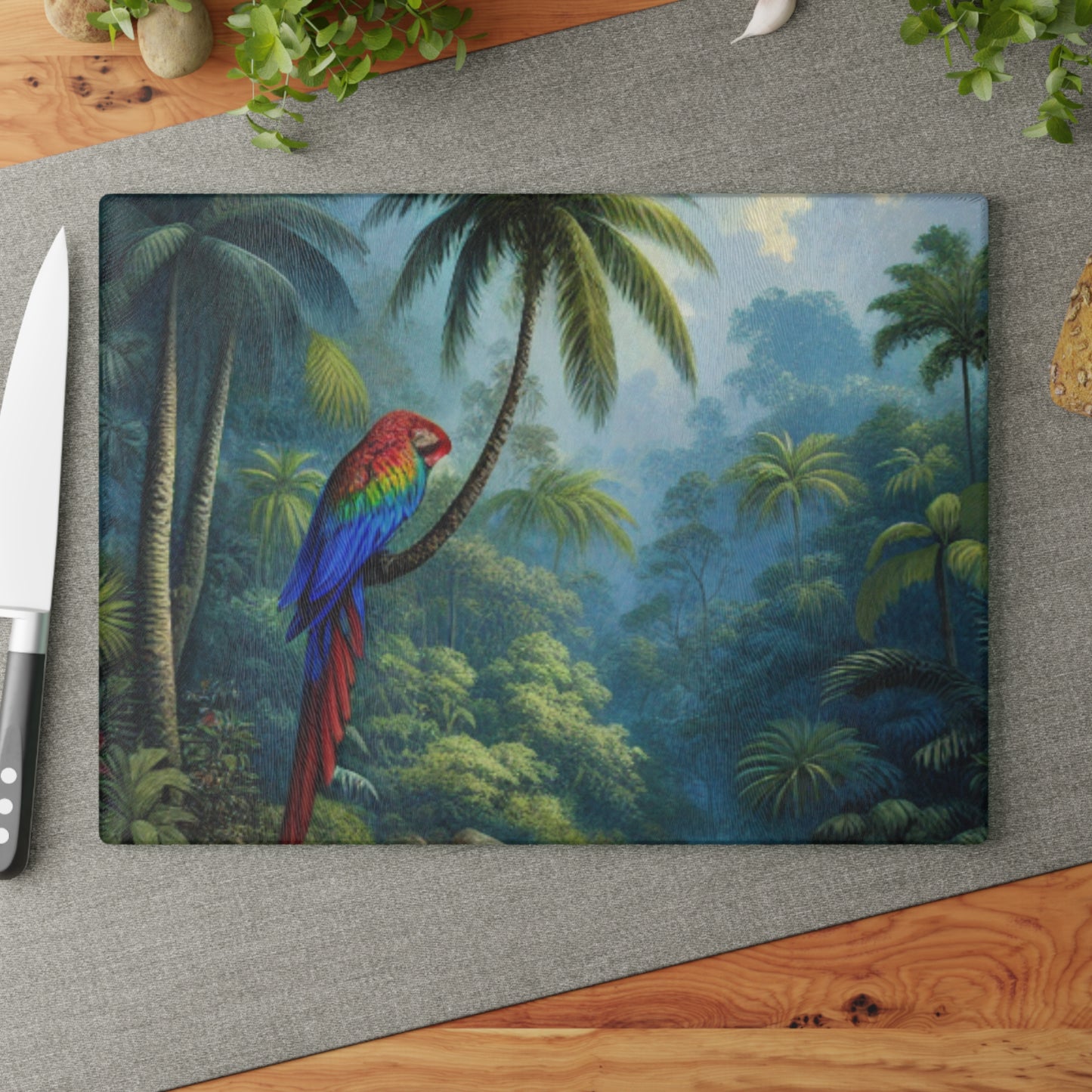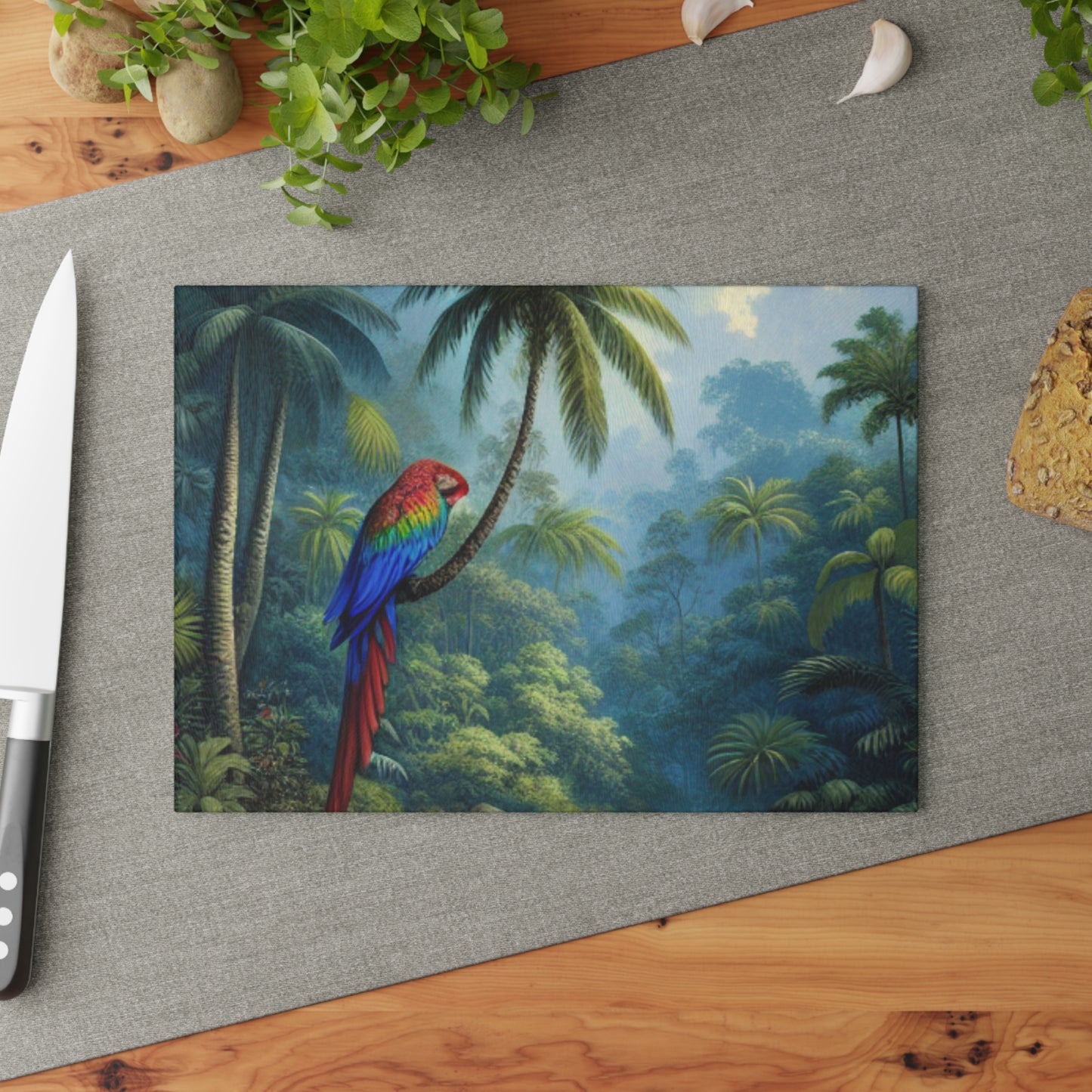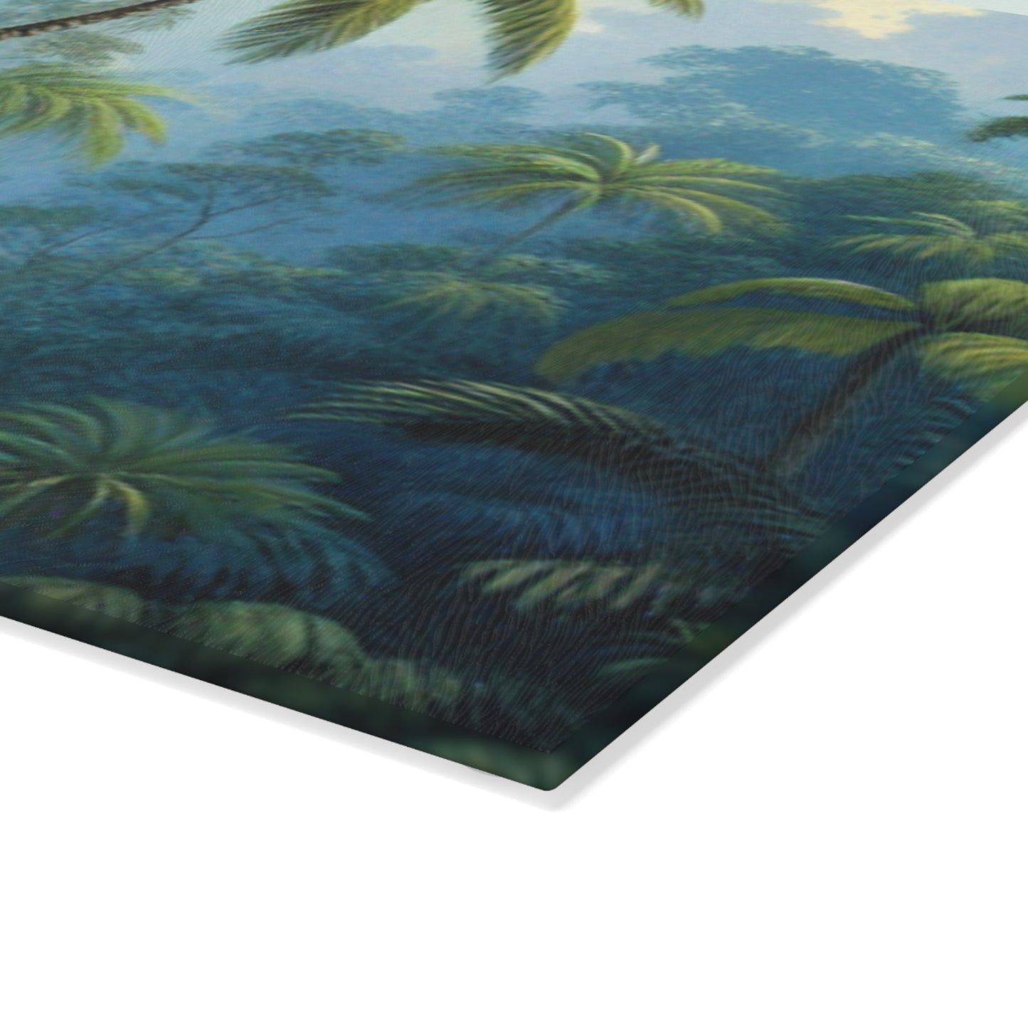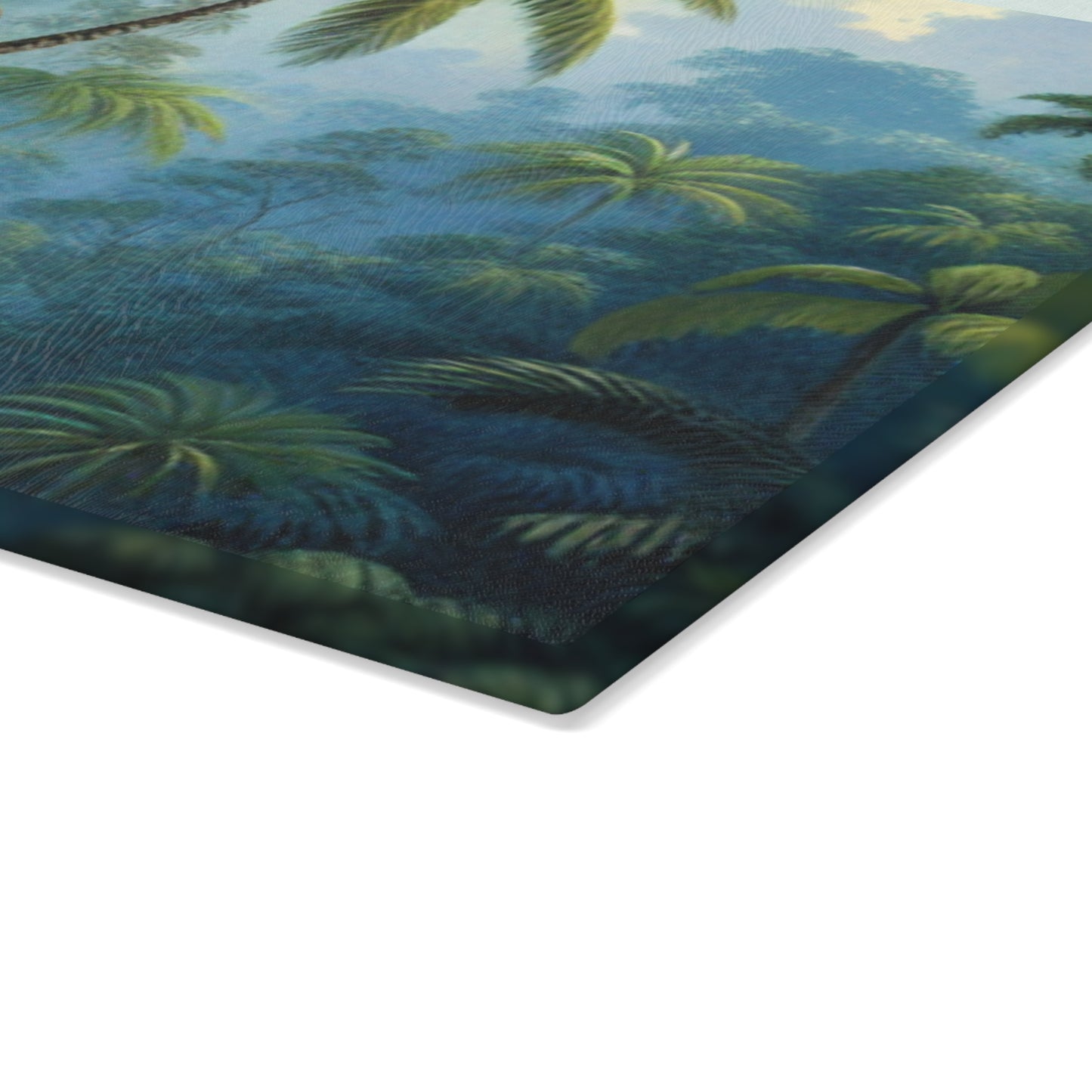 Bring a touch of character into any kitchen with this custom glass cutting board. Its tampered glass material is robust and helps prepare many a tasty meal. The textured surface makes it an ideal chopping, slicing and dicing area. Available in two sizes: 8" x 11" and 11" x 15". Features our exclusive design evoking tropical vibes.