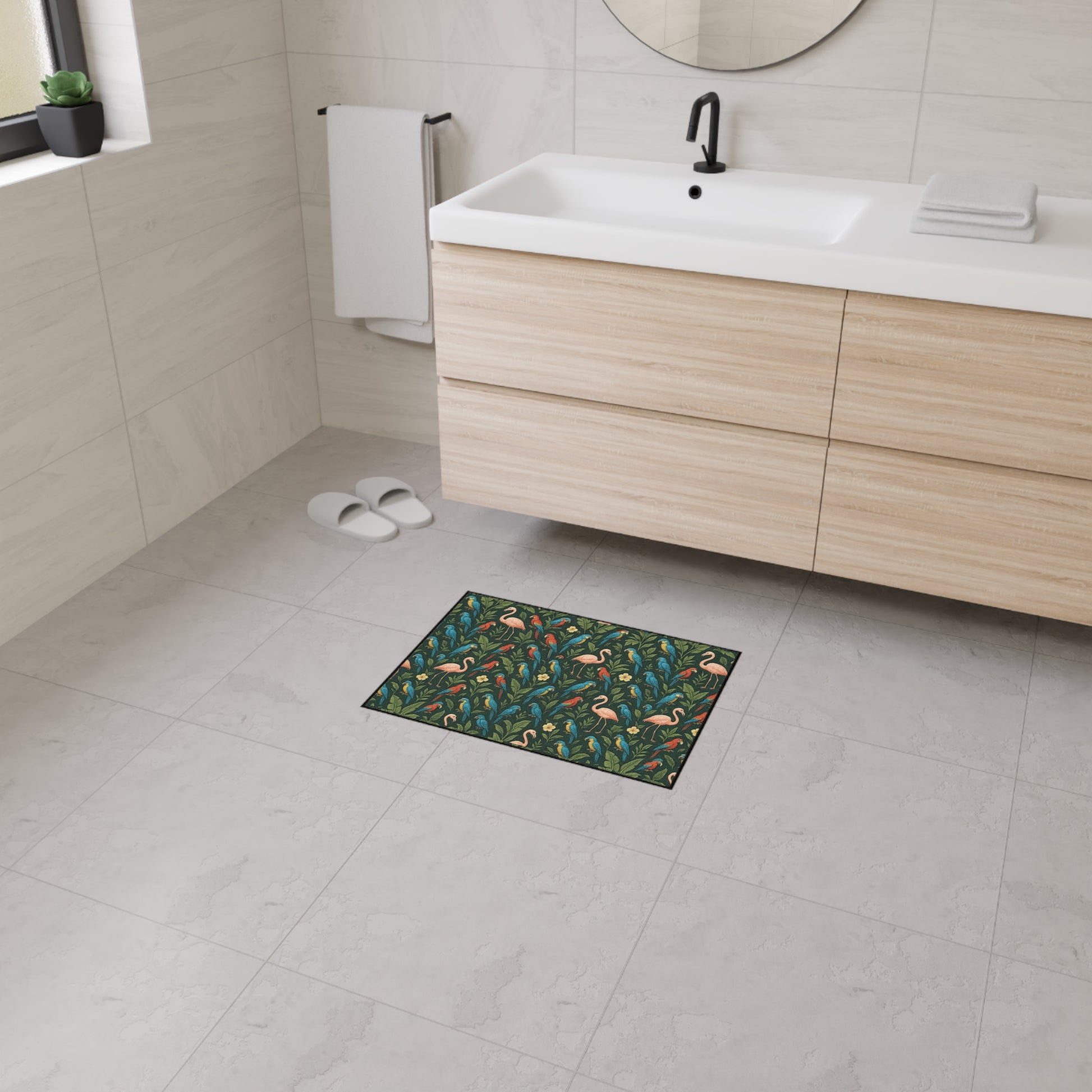 Heavy Duty Floor Mat, 5 Sizes – Tropical Area Rug for Home Décor / Flamingos and Parrots